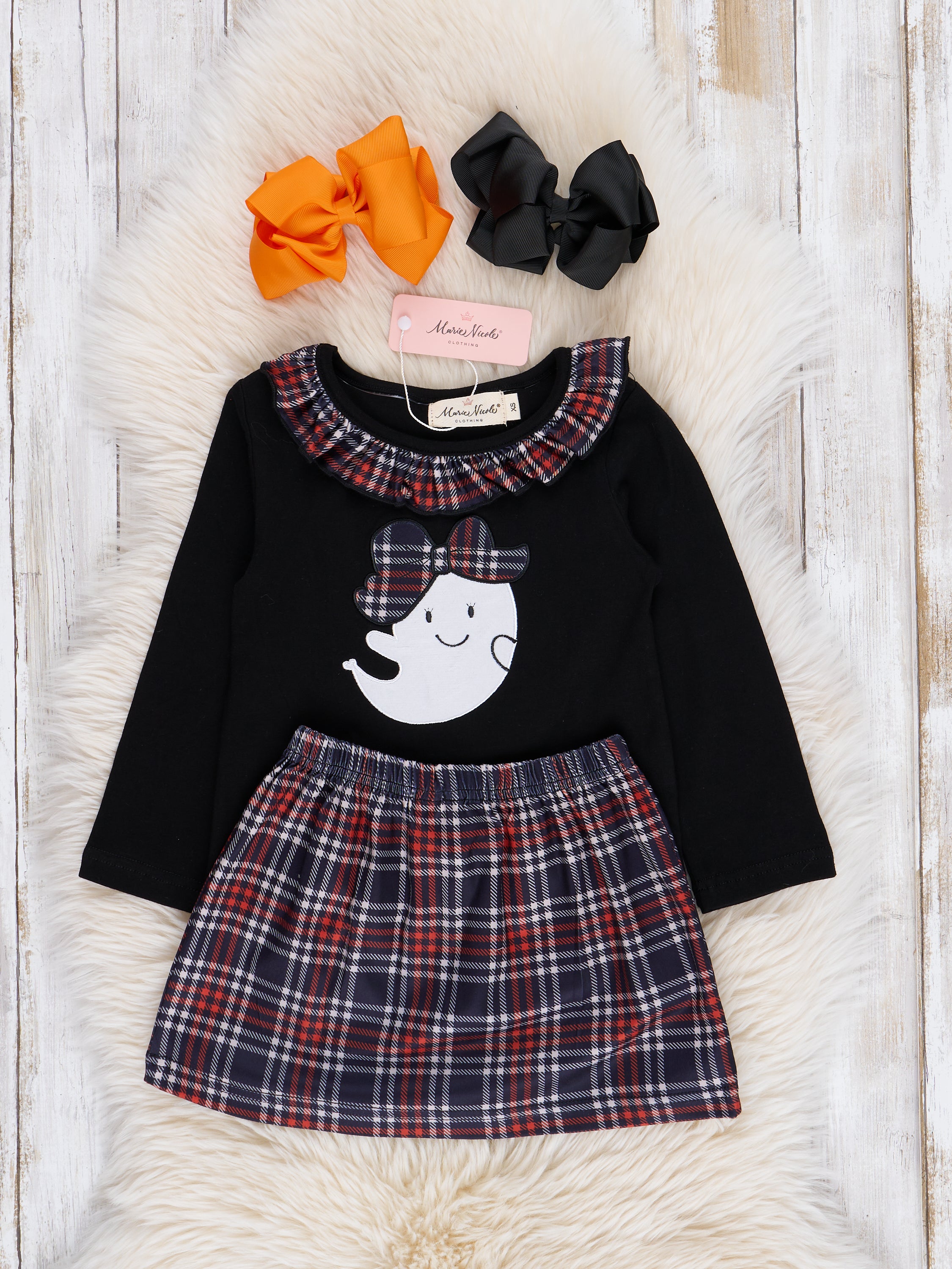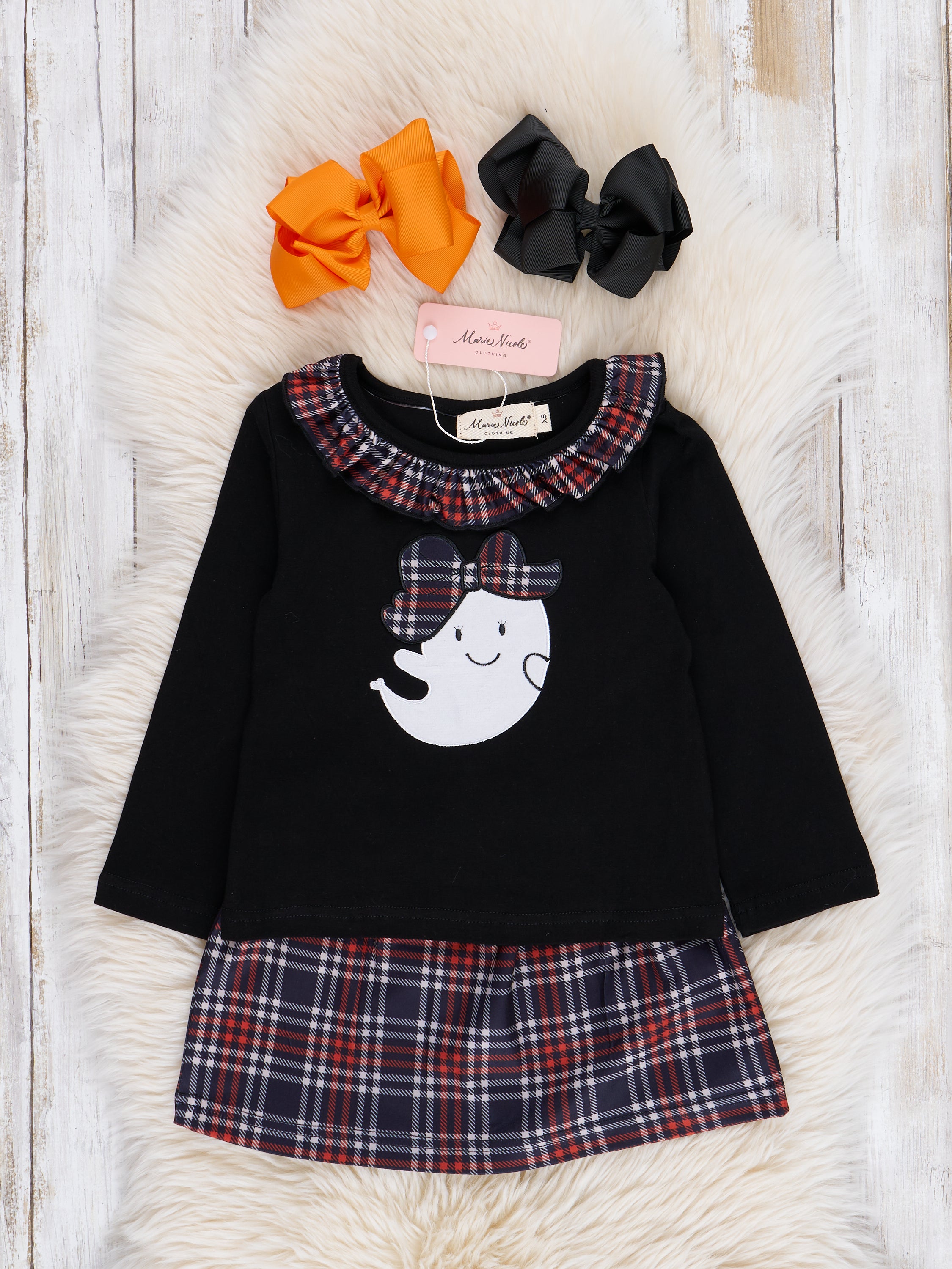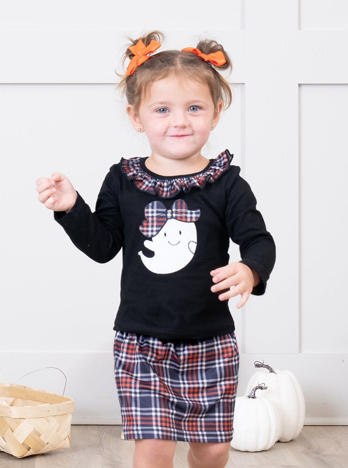 Embroidered Halloween Plaid Ruffle Outfit