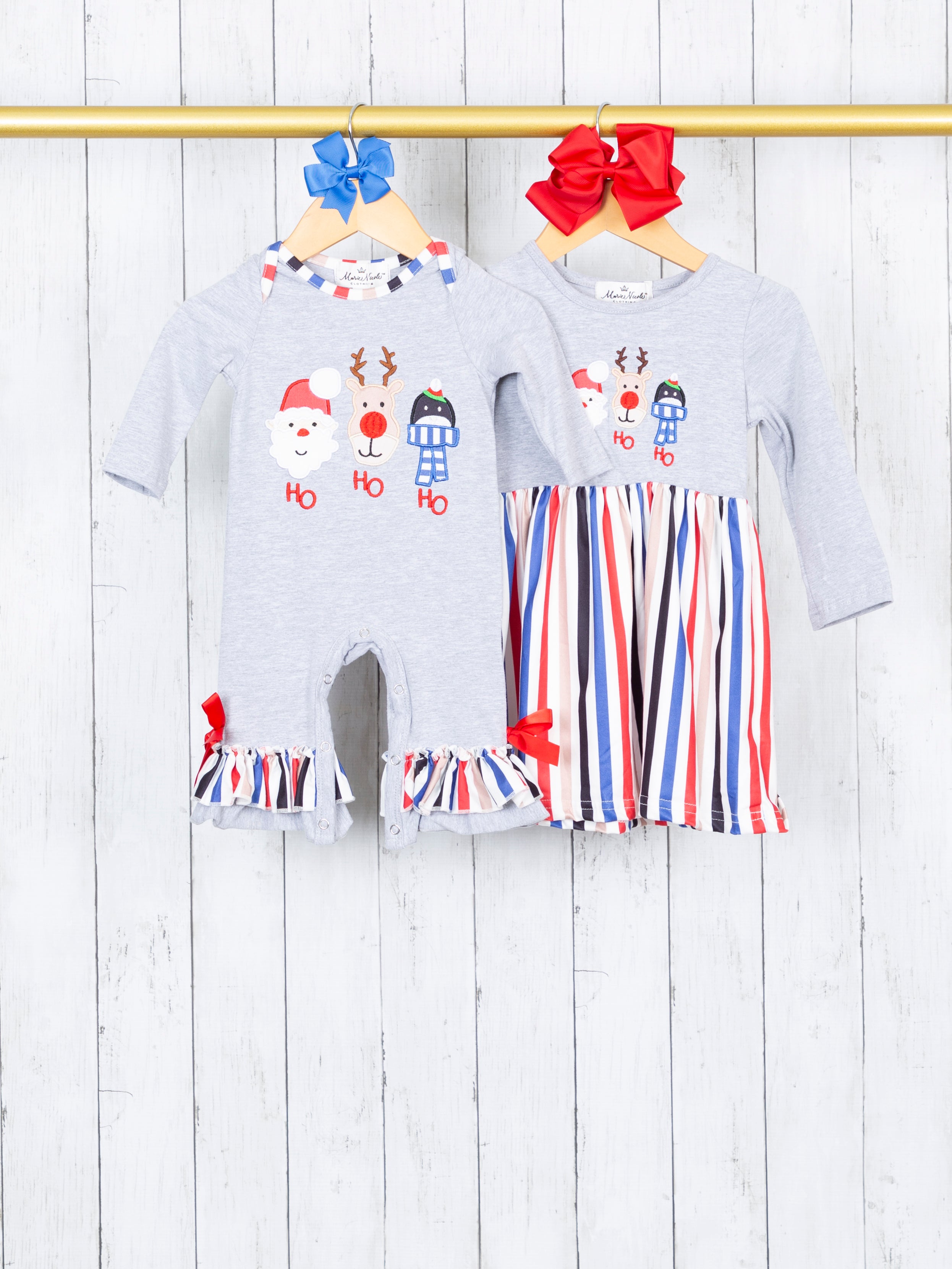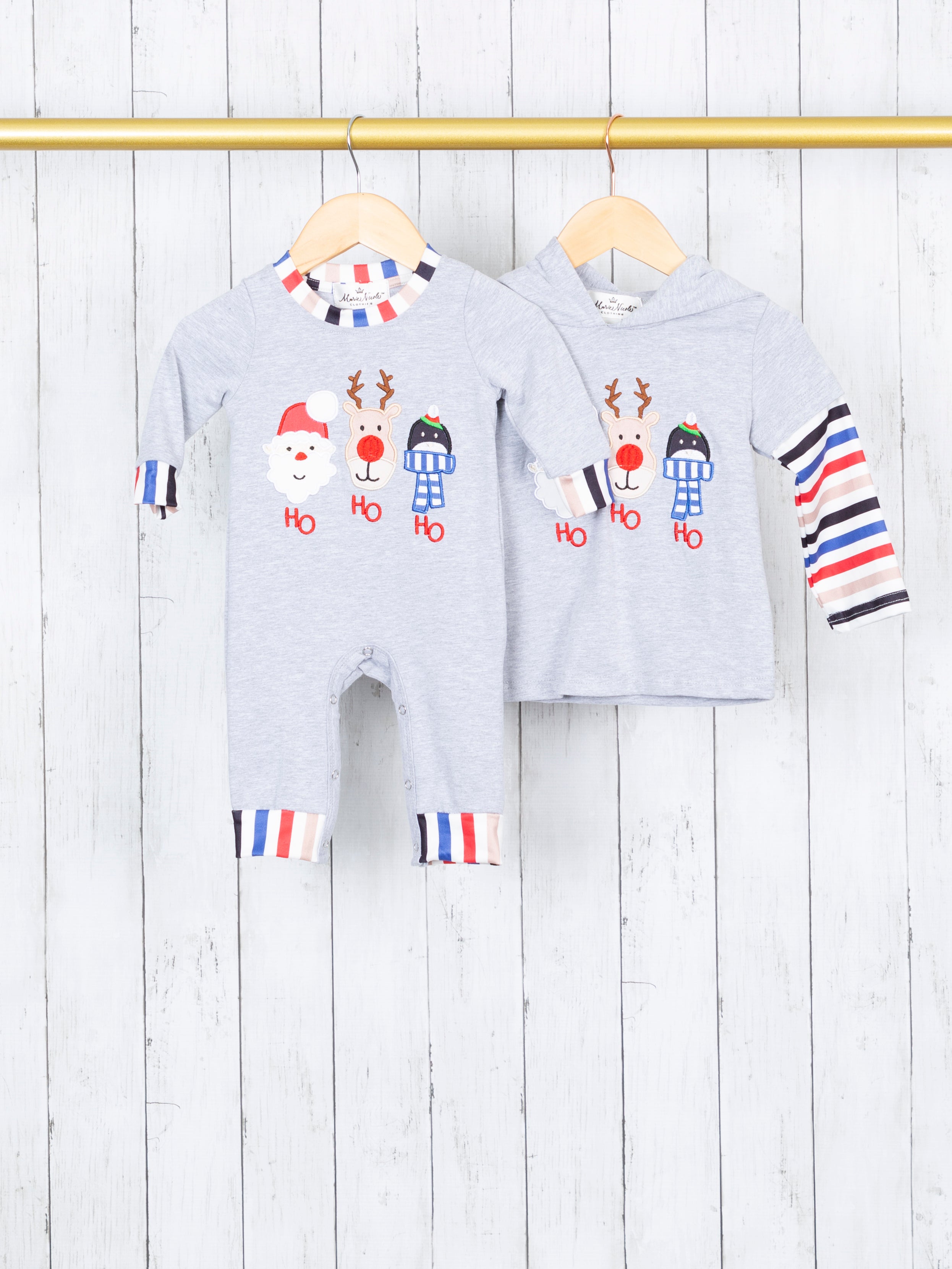 Home › "HO HO HO" Striped Sibling Set