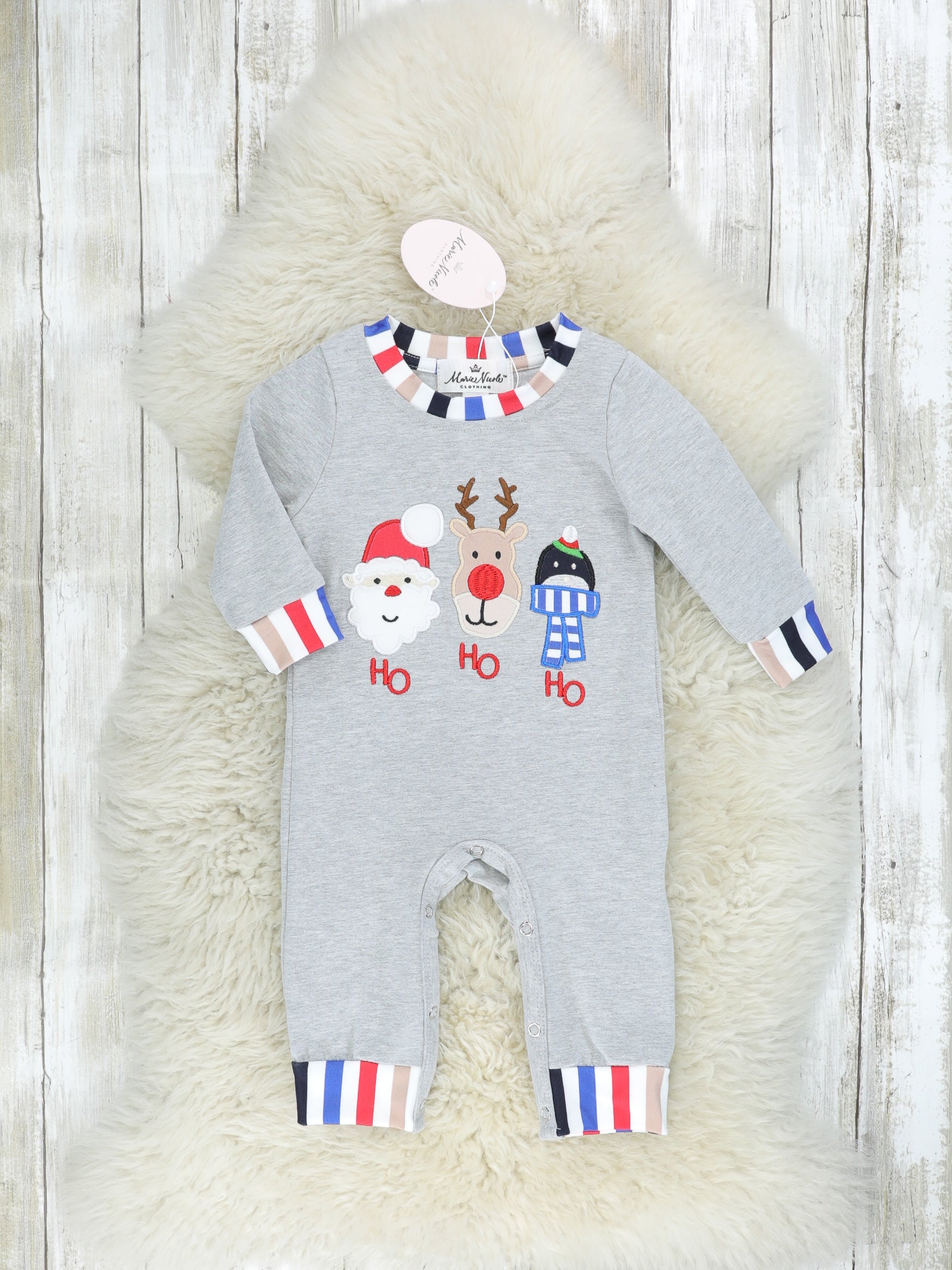 "HO HO HO" Striped Romper