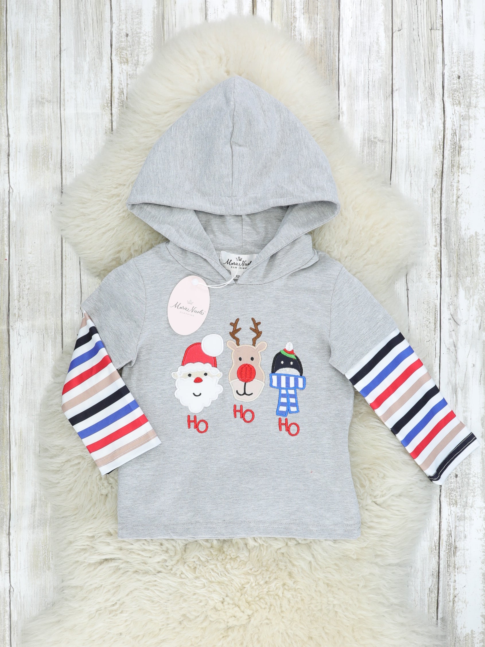 "HO HO HO" Striped Hoodie