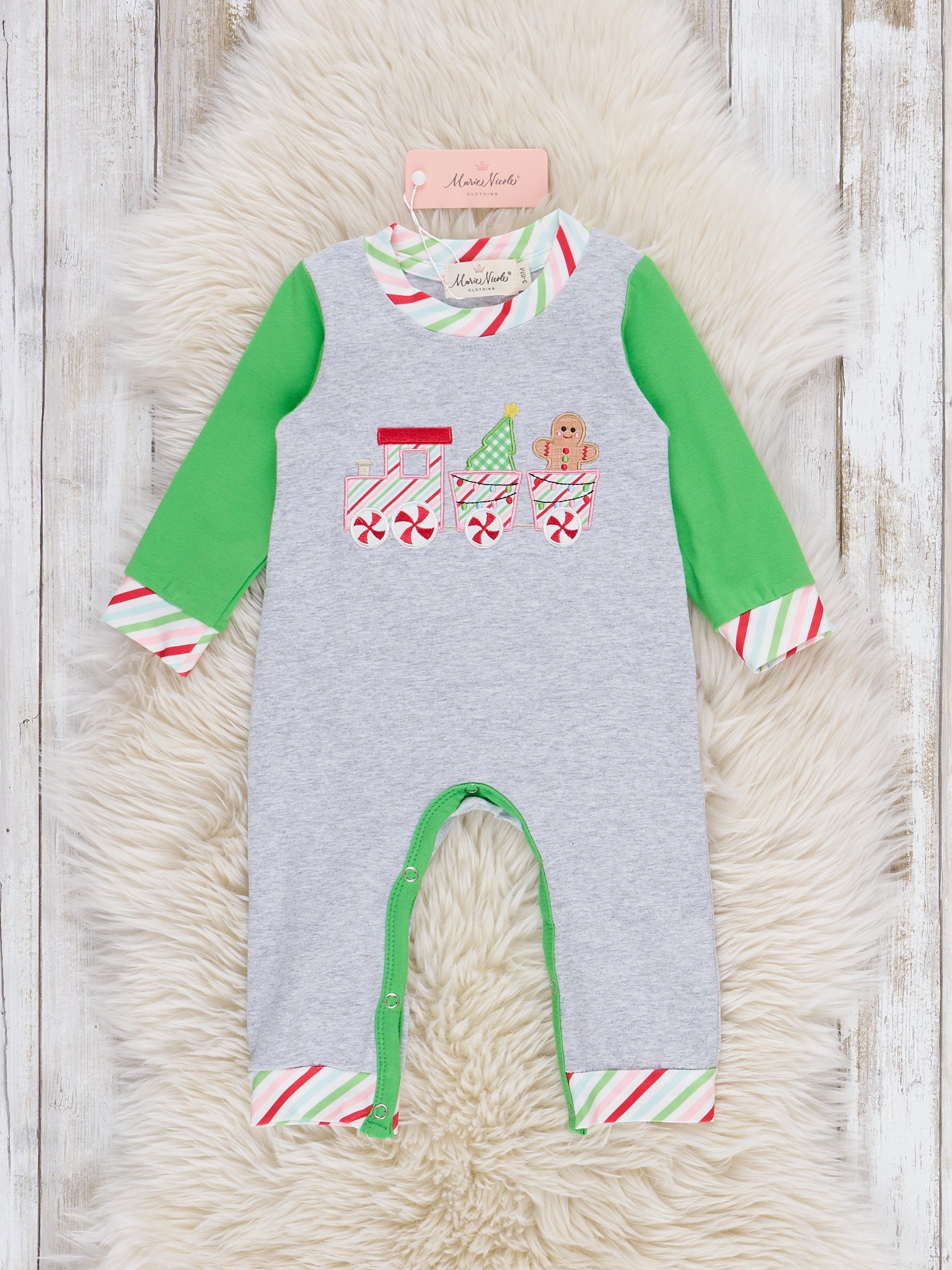 This charming Peppermint Trim Romper from Marie Nicole Clothing is perfect for celebrating the festive season in style. Featuring delightful holiday-themed embroidery and cheerful trim details, this romper offers both comfort and whimsy for little ones. Designed for easy movement and convenient dressing, it’s an ideal outfit choice for family gatherings, seasonal photos, or cozy winter days.