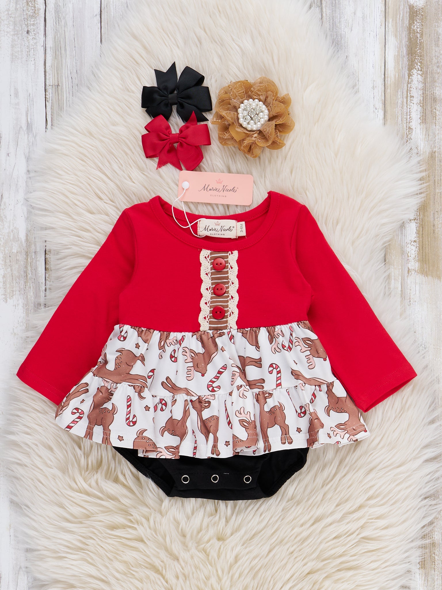 Big Red Nose Rudolph Ruffle Embroidered Bubble