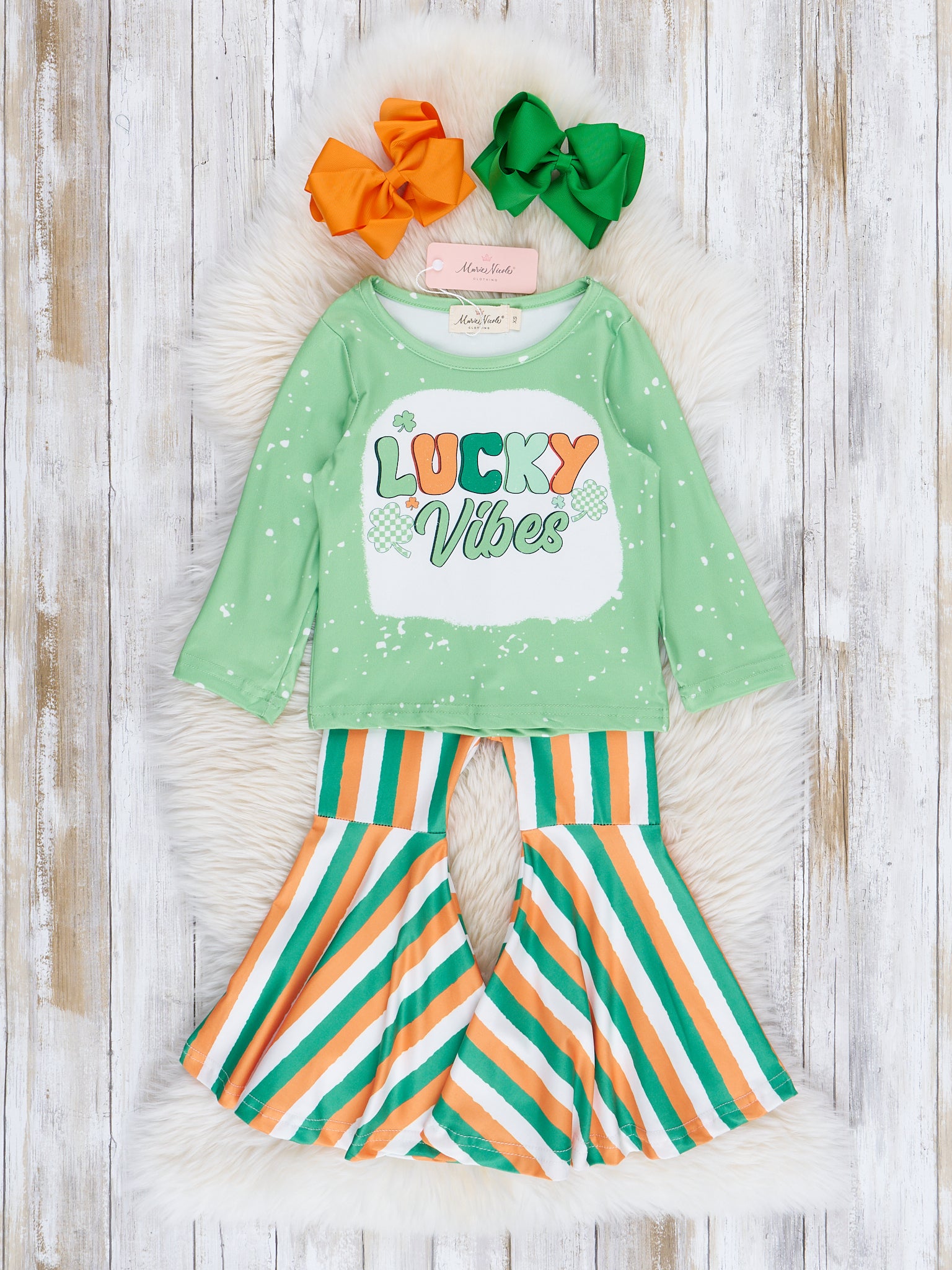 Green Lucky Vibes Striped Bell Bottom Outfit