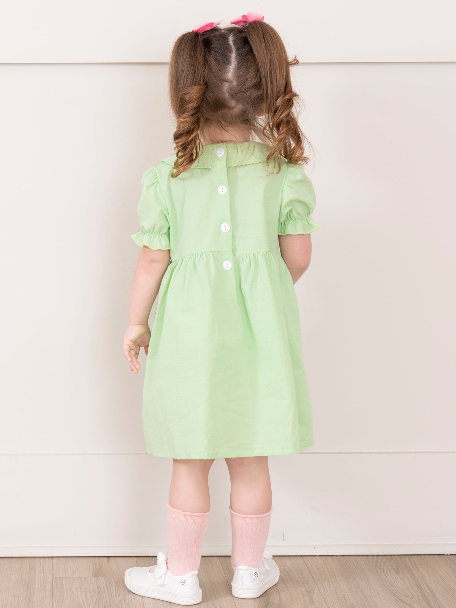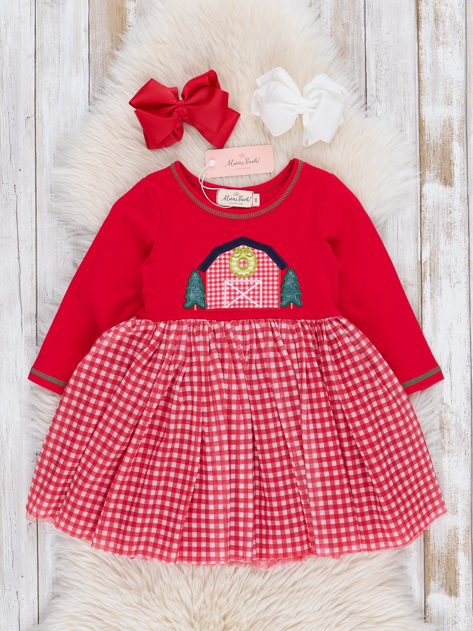 Red & Green Gingham Embroidered Holiday Tractor Ruffle Dress