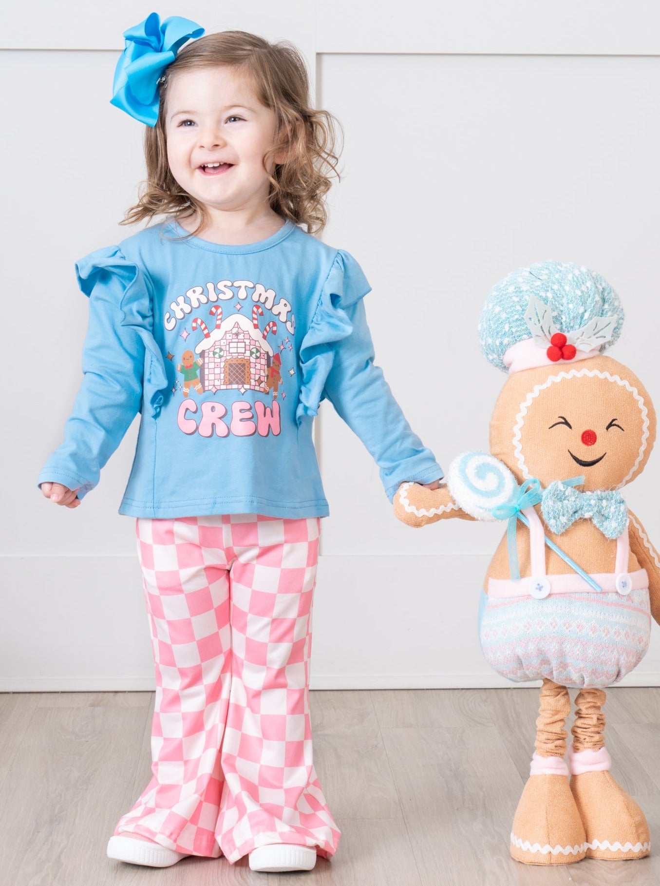 Blue & Pink Checkers "Christmas Crew" Ruffle Outfit