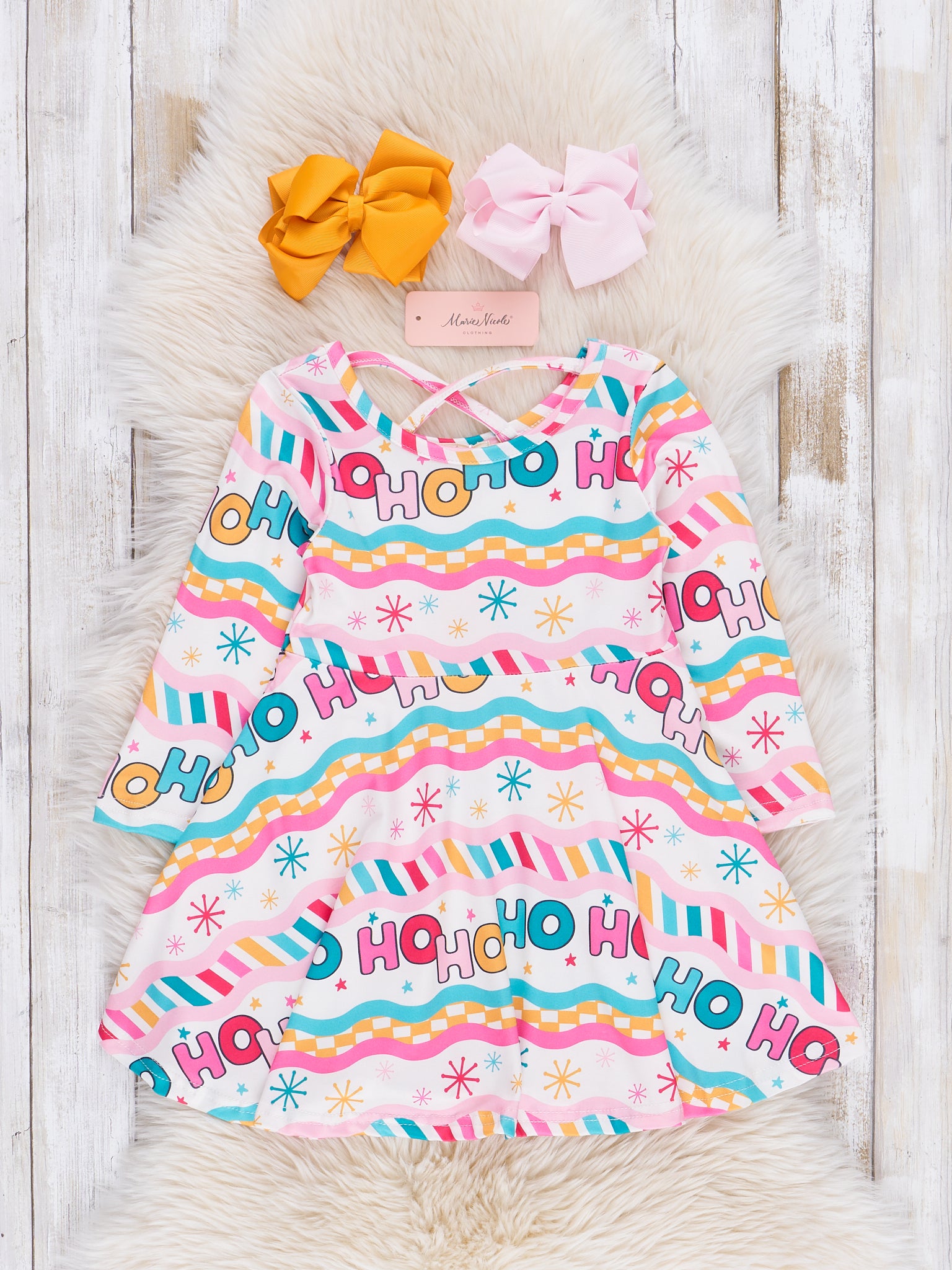 Step into the holiday spirit with the Teal & Pink "HO HO HO" Sister Set by Marie Nicole Clothing! 🎅👗💕 Dress your little one in the vibrant hues of teal and pink, capturing the essence of holiday joy. The "HO HO HO" adds a playful touch that perfectly complements the season's merriment. Designed with a swing silhouette, this dress by Marie Nicole Clothing encourages twirls and spins, making it the ideal choice for impromptu dance parties and festive play. It's a joyful celebration in every sway!