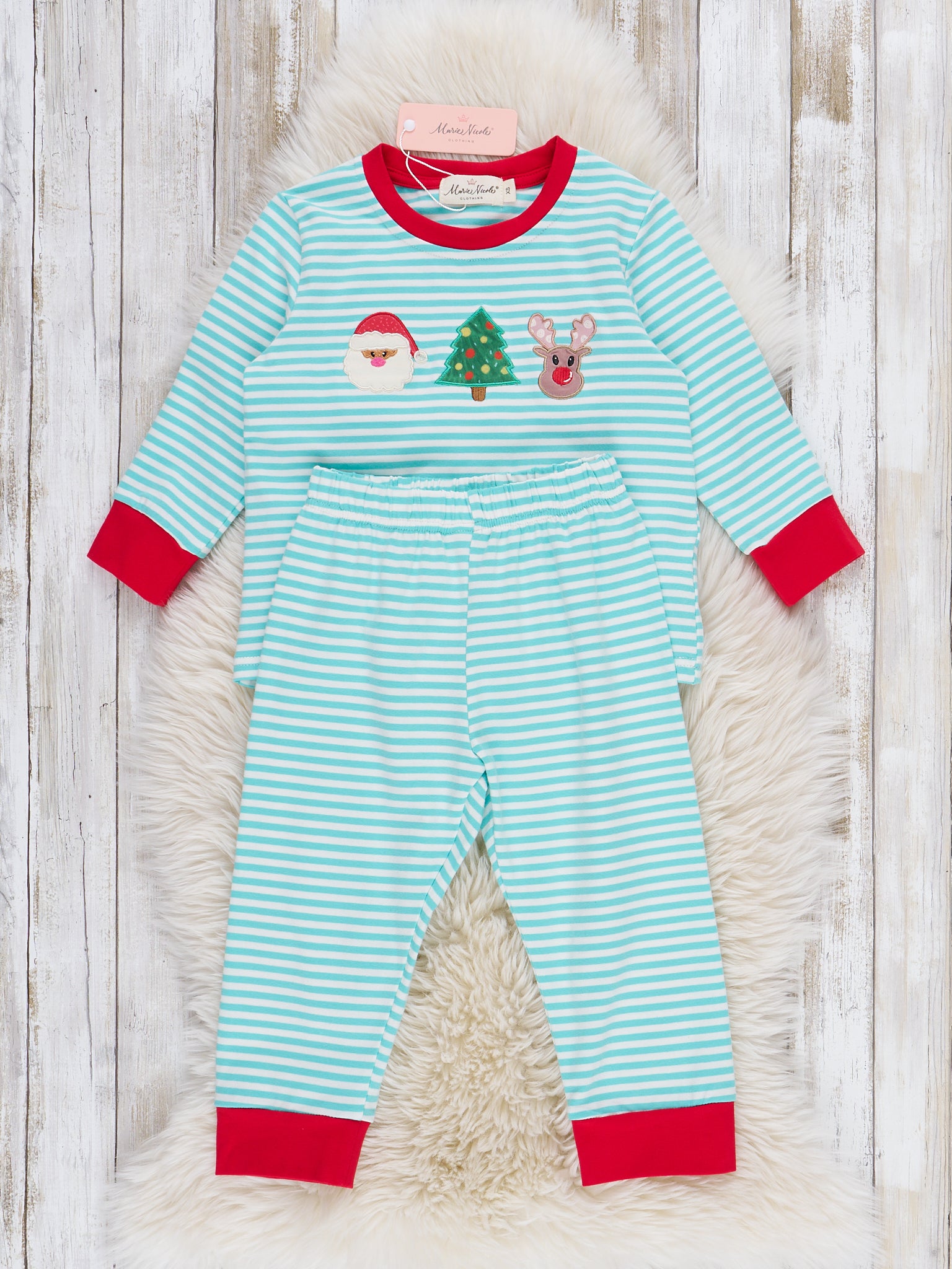 The Christmas Cheer Striped Embroidered Pajamas from Marie Nicole Clothing are a festive blend of comfort and joyful style, featuring classic stripes and playful holiday-themed embroidery. Designed for cozy nights and magical mornings, this soft pajama set captures the spirit of the season while offering all-night comfort for little ones. Celebrate the holidays in style with this cheerful set, perfect for gifting or family photos
