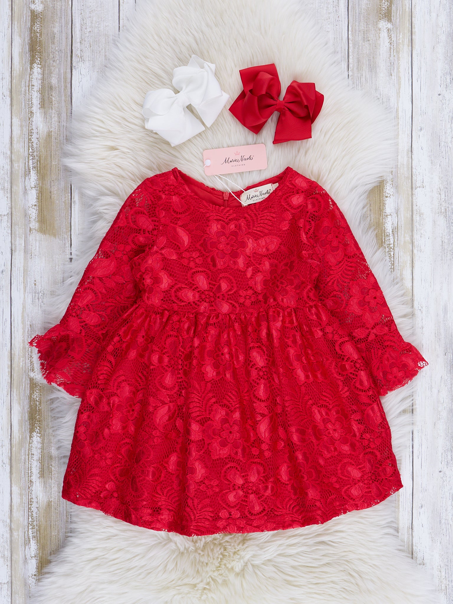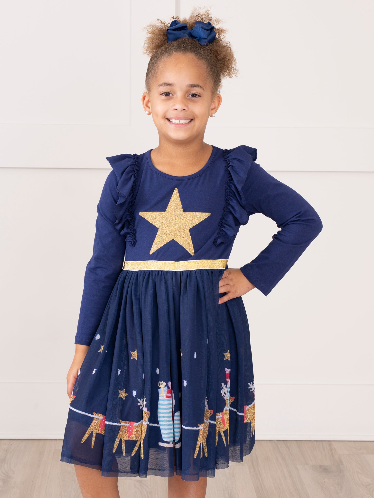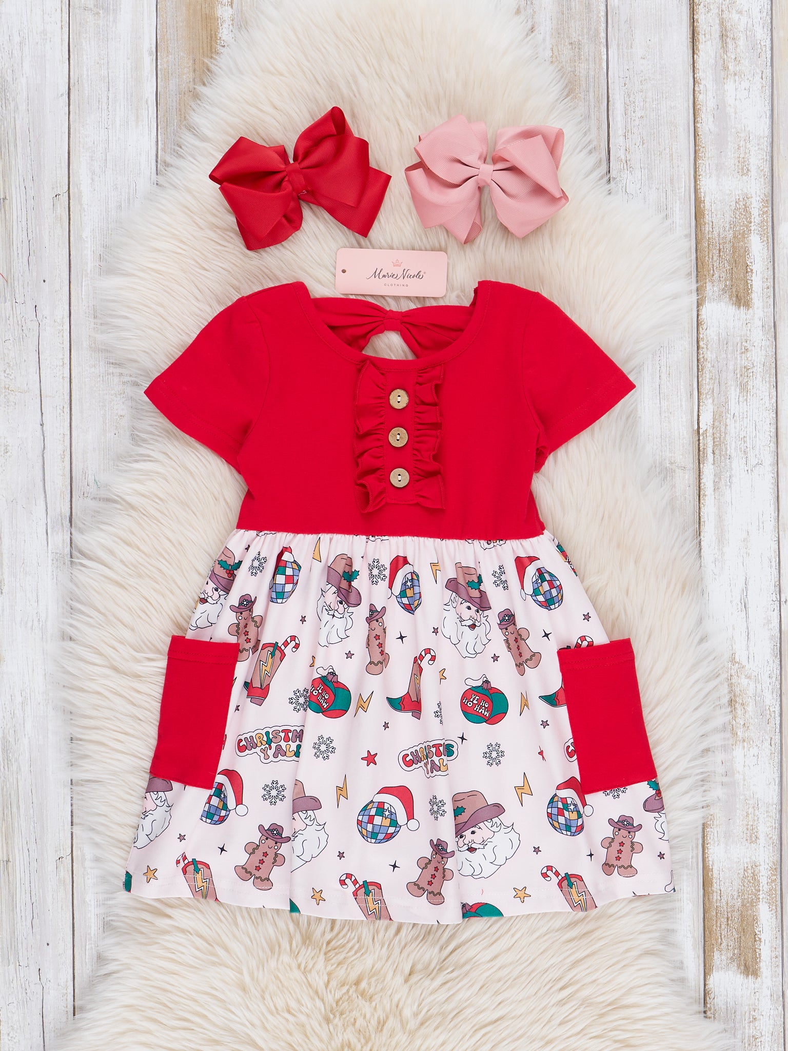 Red Embroidered Christmas Tree Truck Ruffle Dress
