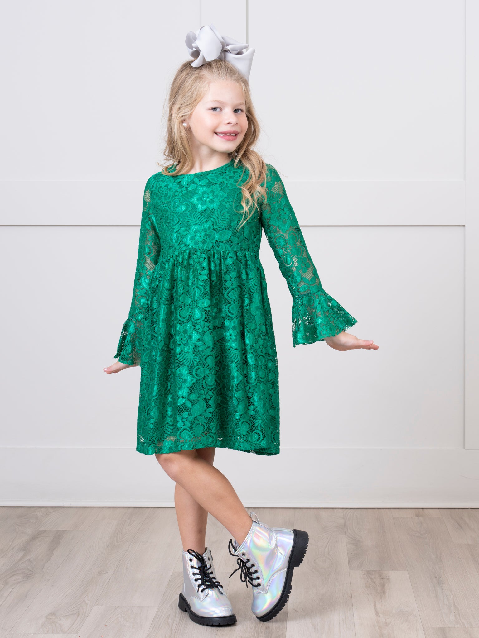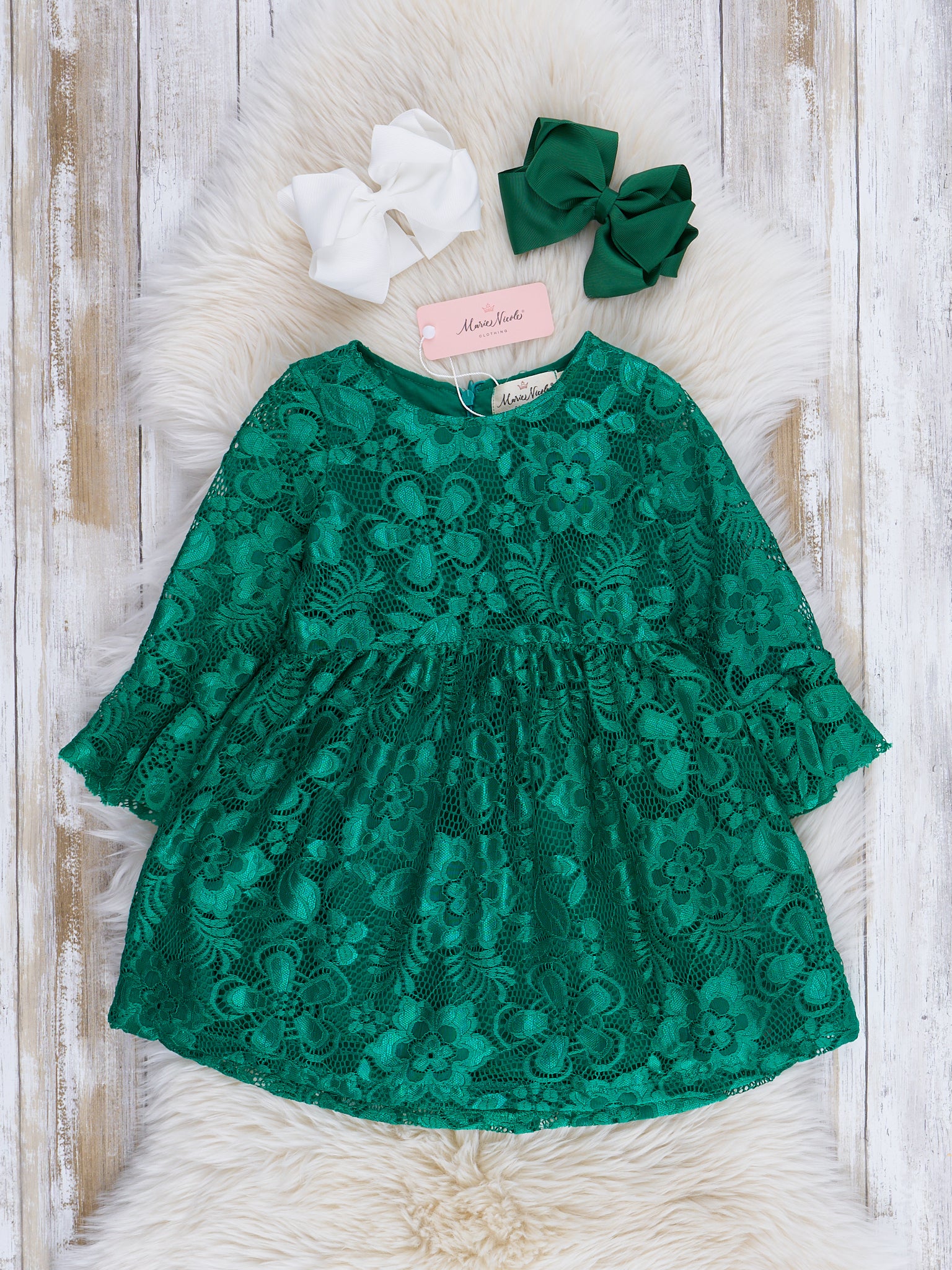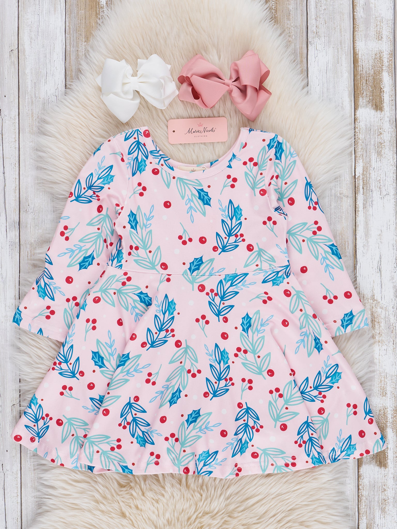 Soft Mint & Pink Christmas Trees Ruffle Dress