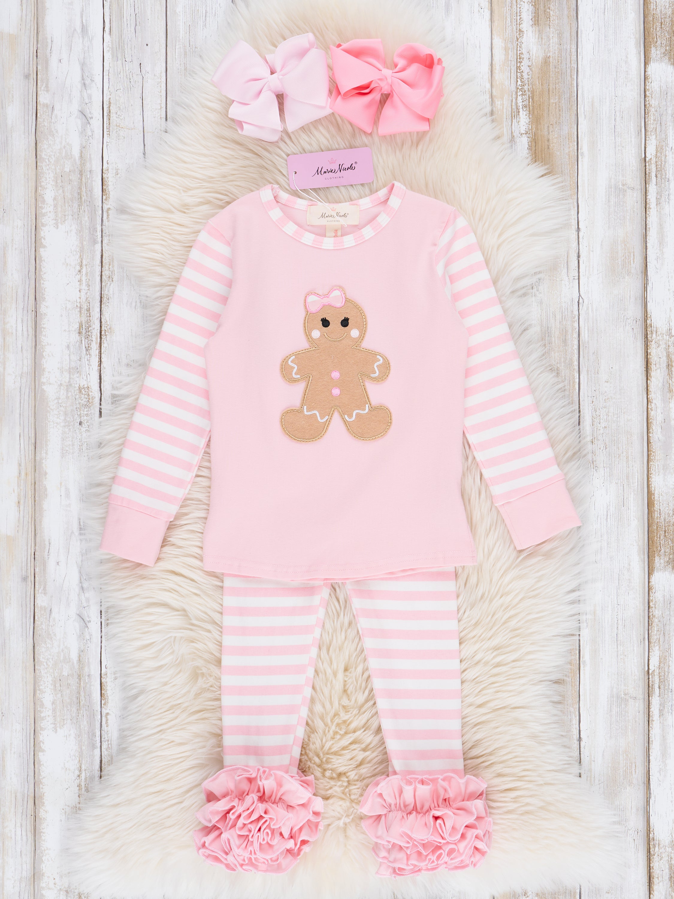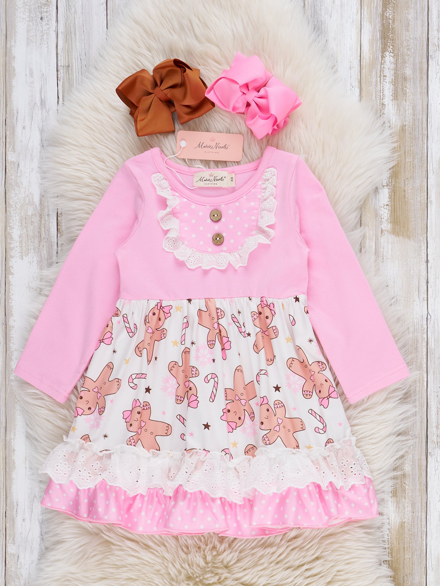 Pink & Red Smocked Gingerbread House Ruffle Dress