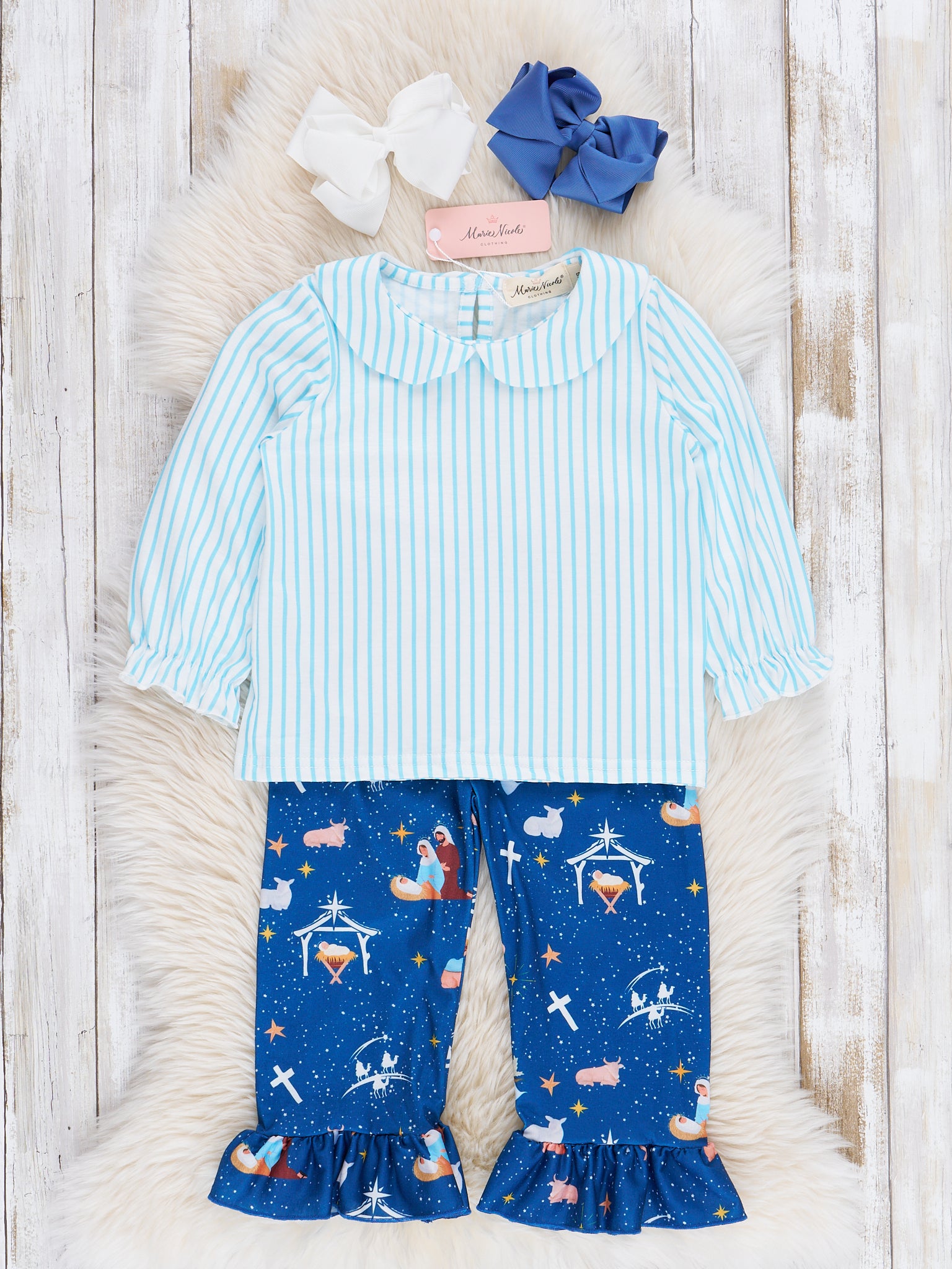 Blue & Pink Checkers "Christmas Crew" Ruffle Outfit