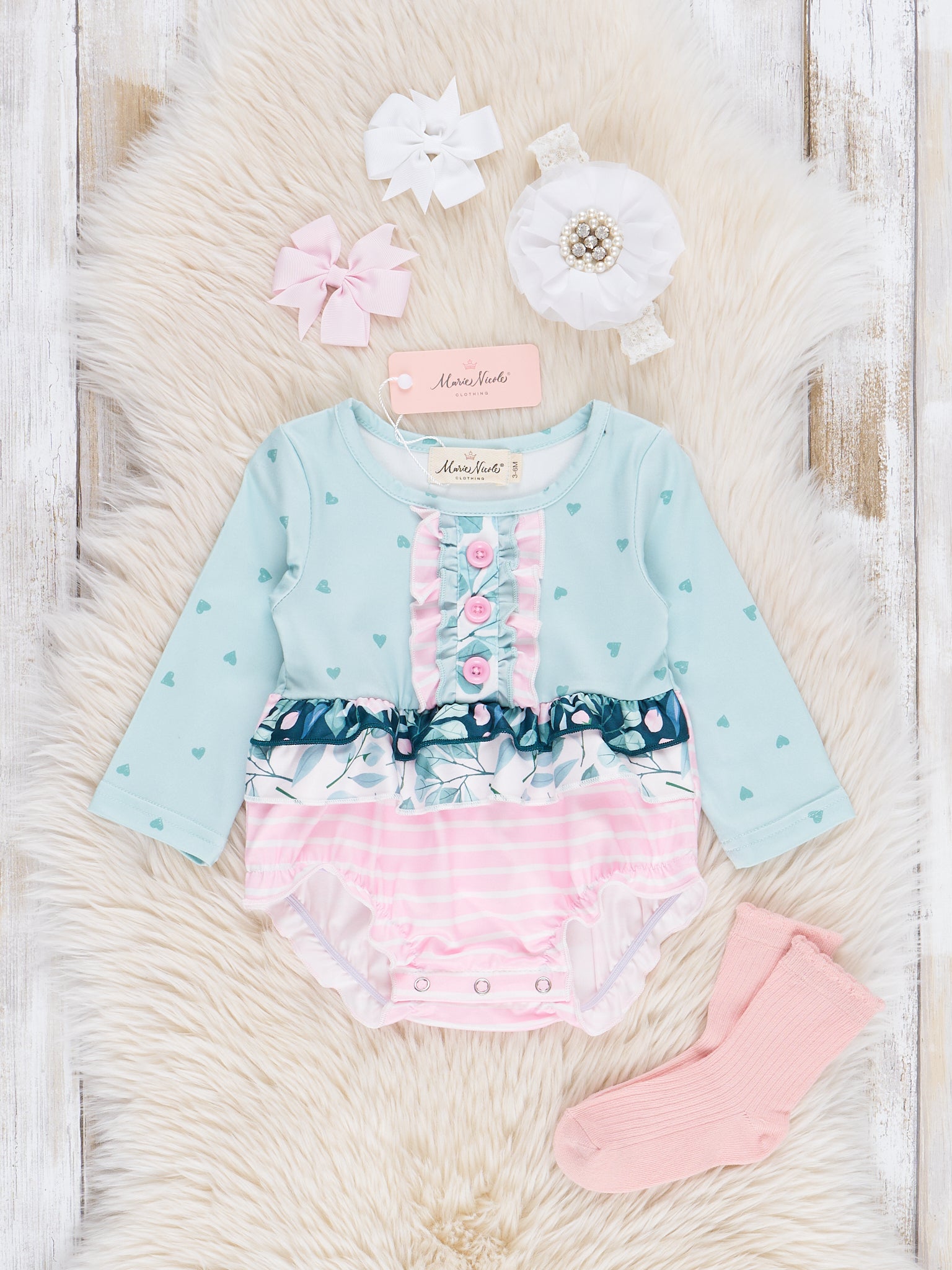 Pink & Green Floral Bunny Ruffle Bubble