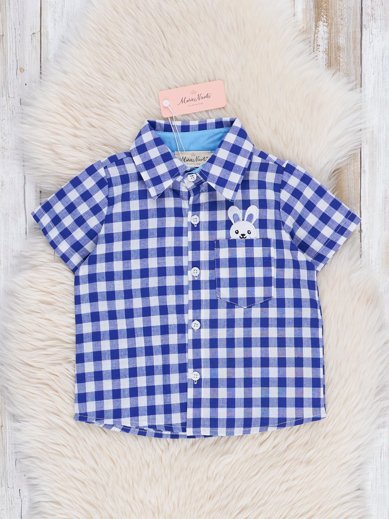 Blue Gingham Bunny Button Down Shirt