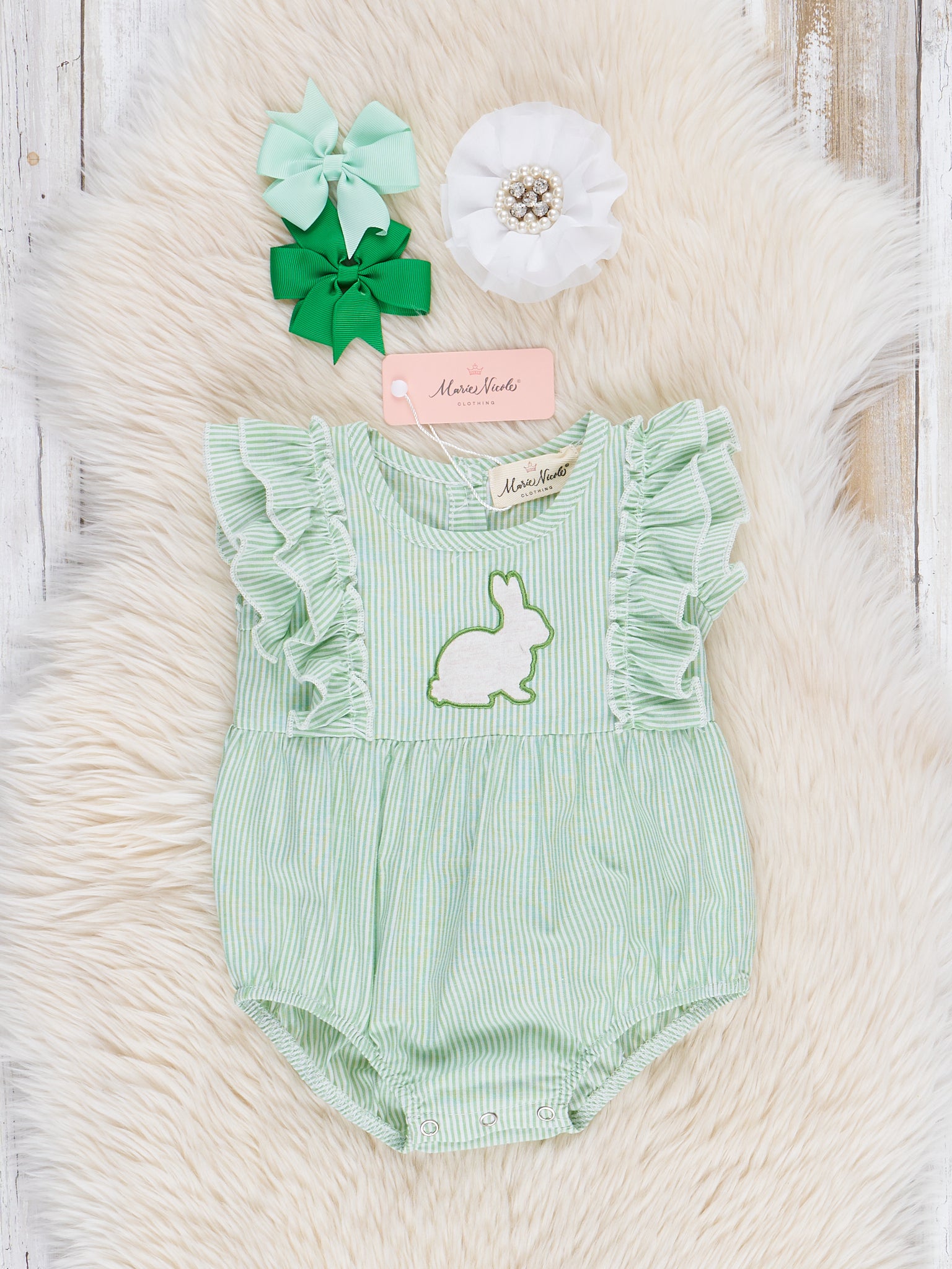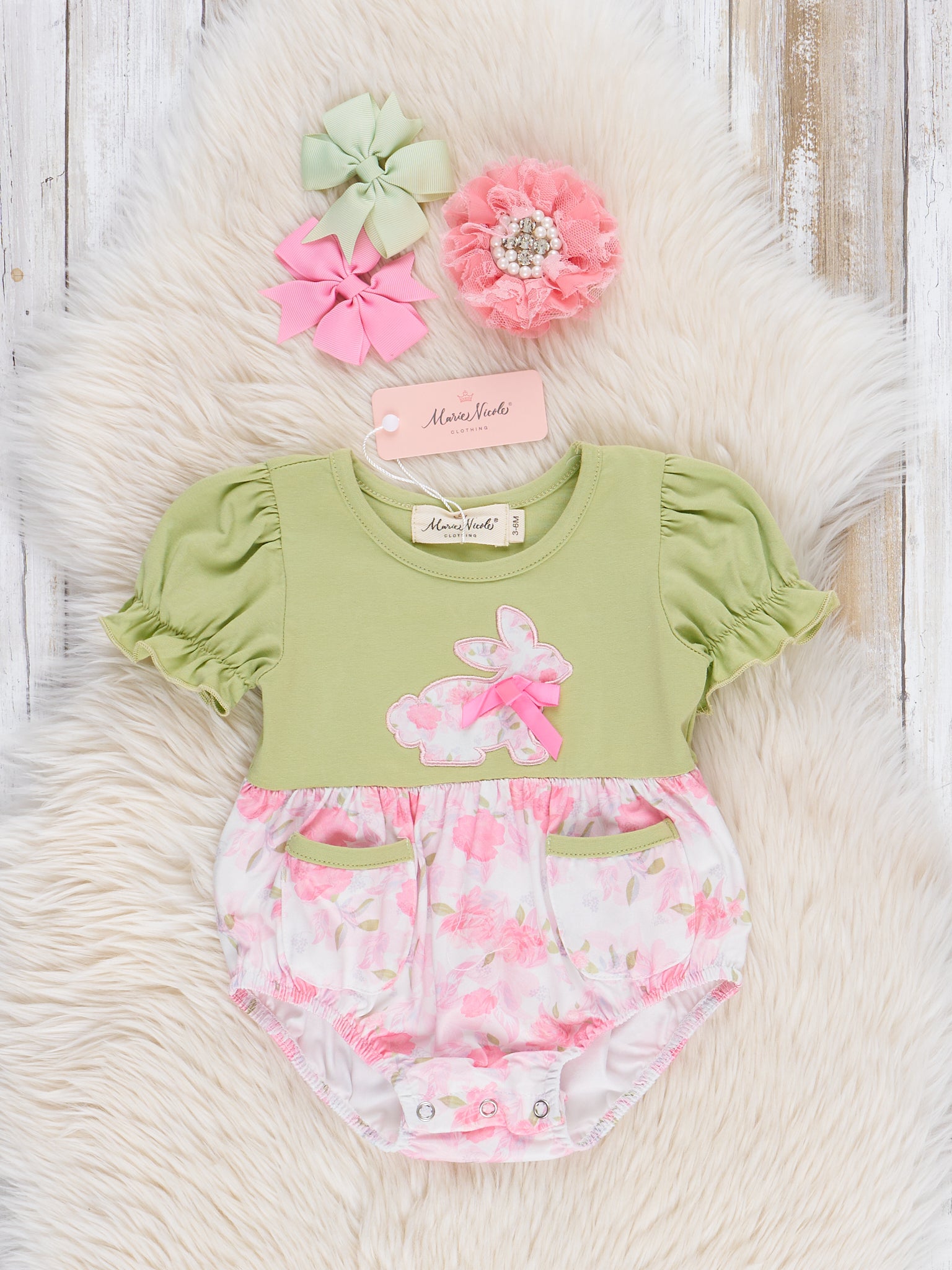 Pink & Green Floral Bunny Ruffle Outfit