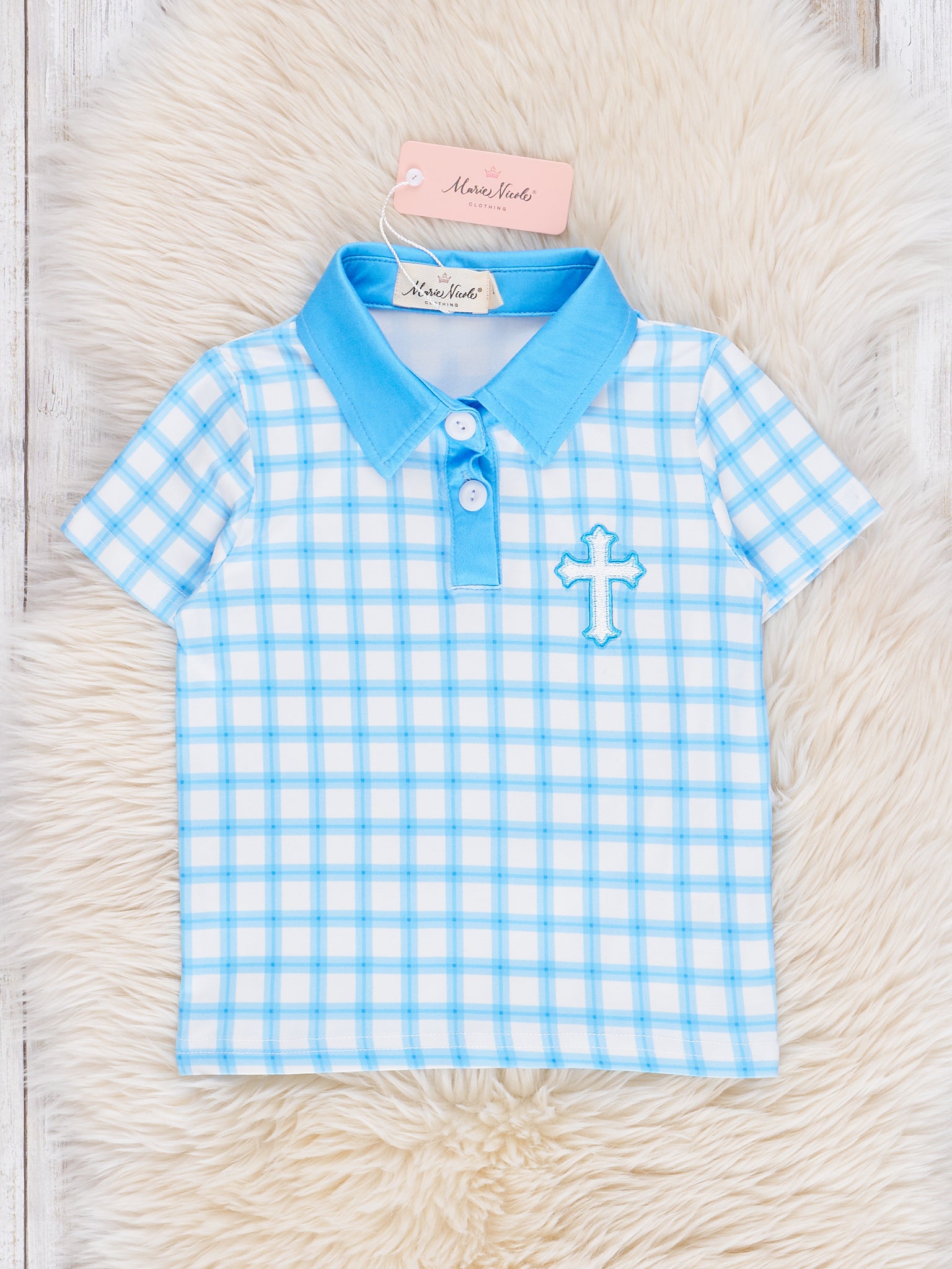 Blue Plaid Embroidered Cross Polo Shirt