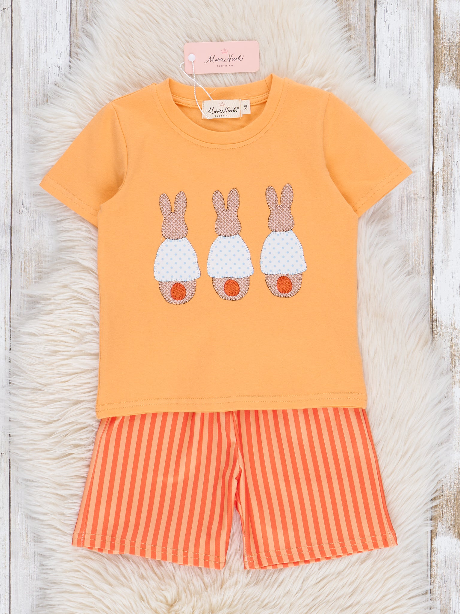 Orange Embroidered Bunny Outfit