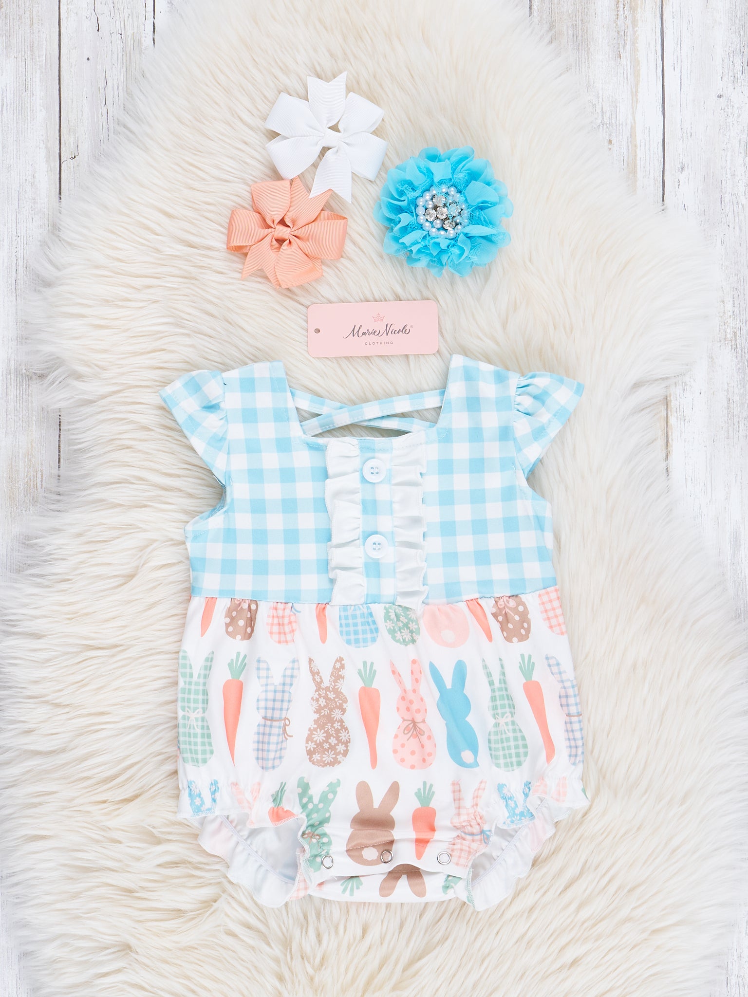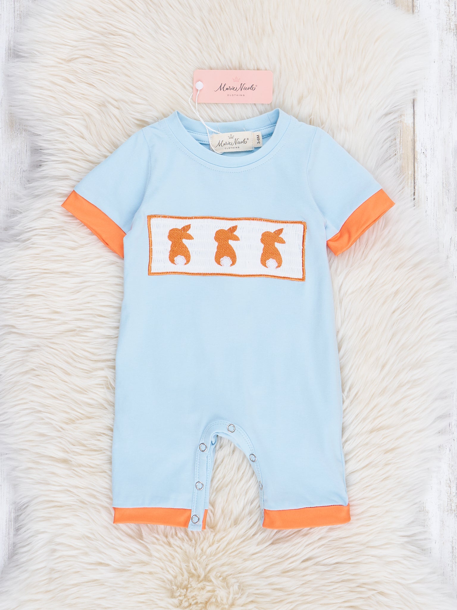 Baby Blue & Orange Smocked Bunny Romper