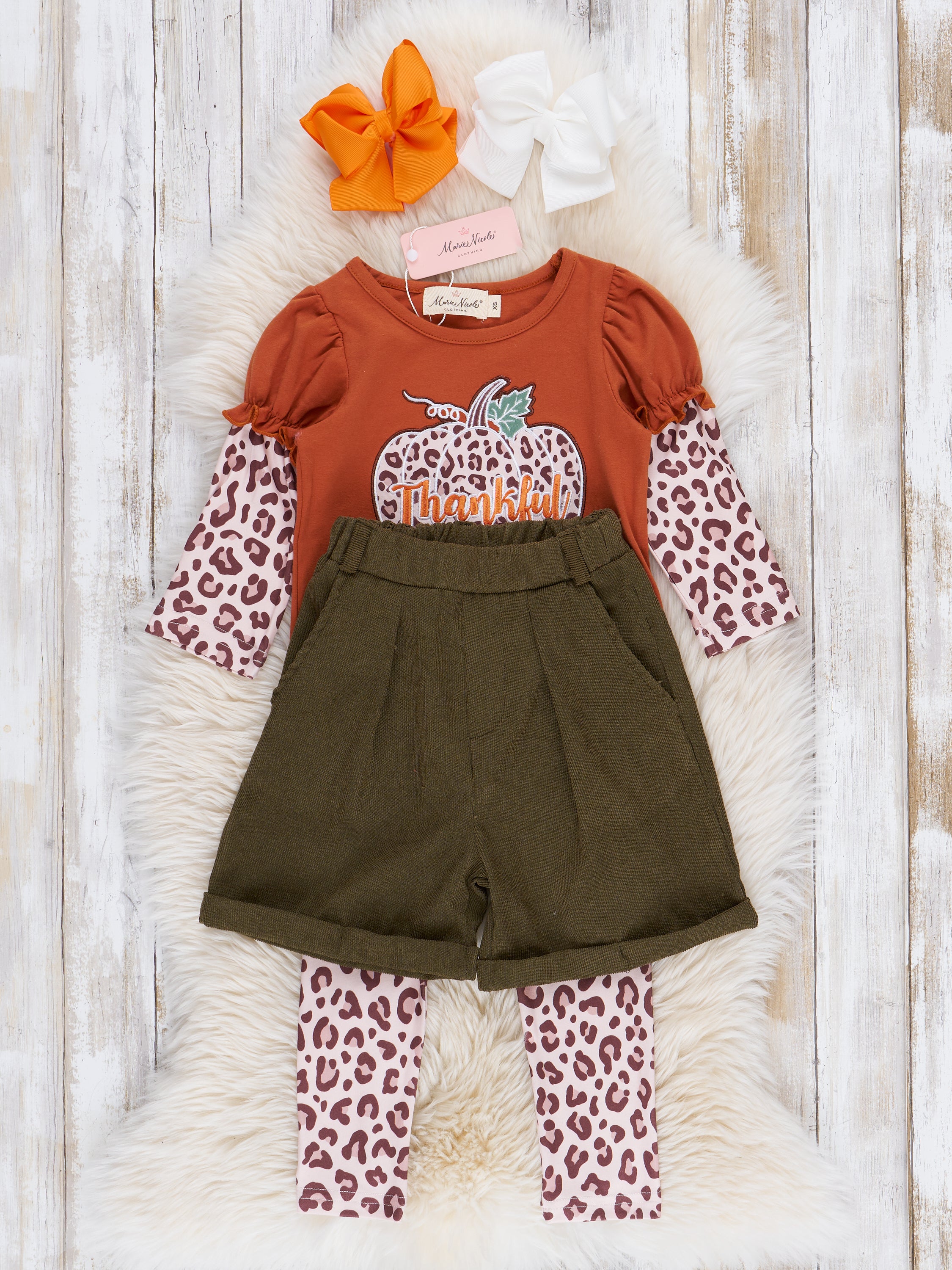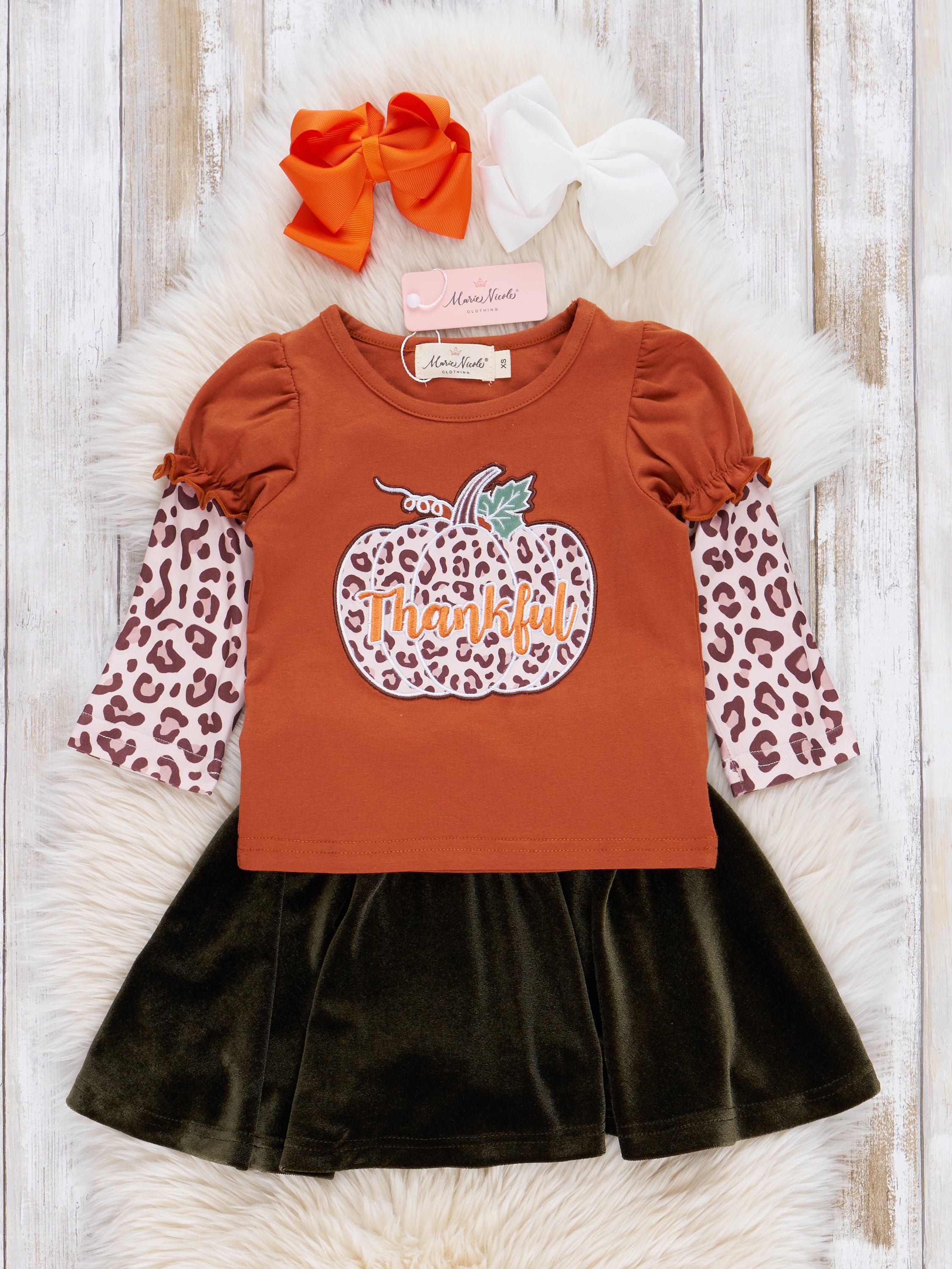 Leopard "Give Thanks" Outfit w/ Skirt