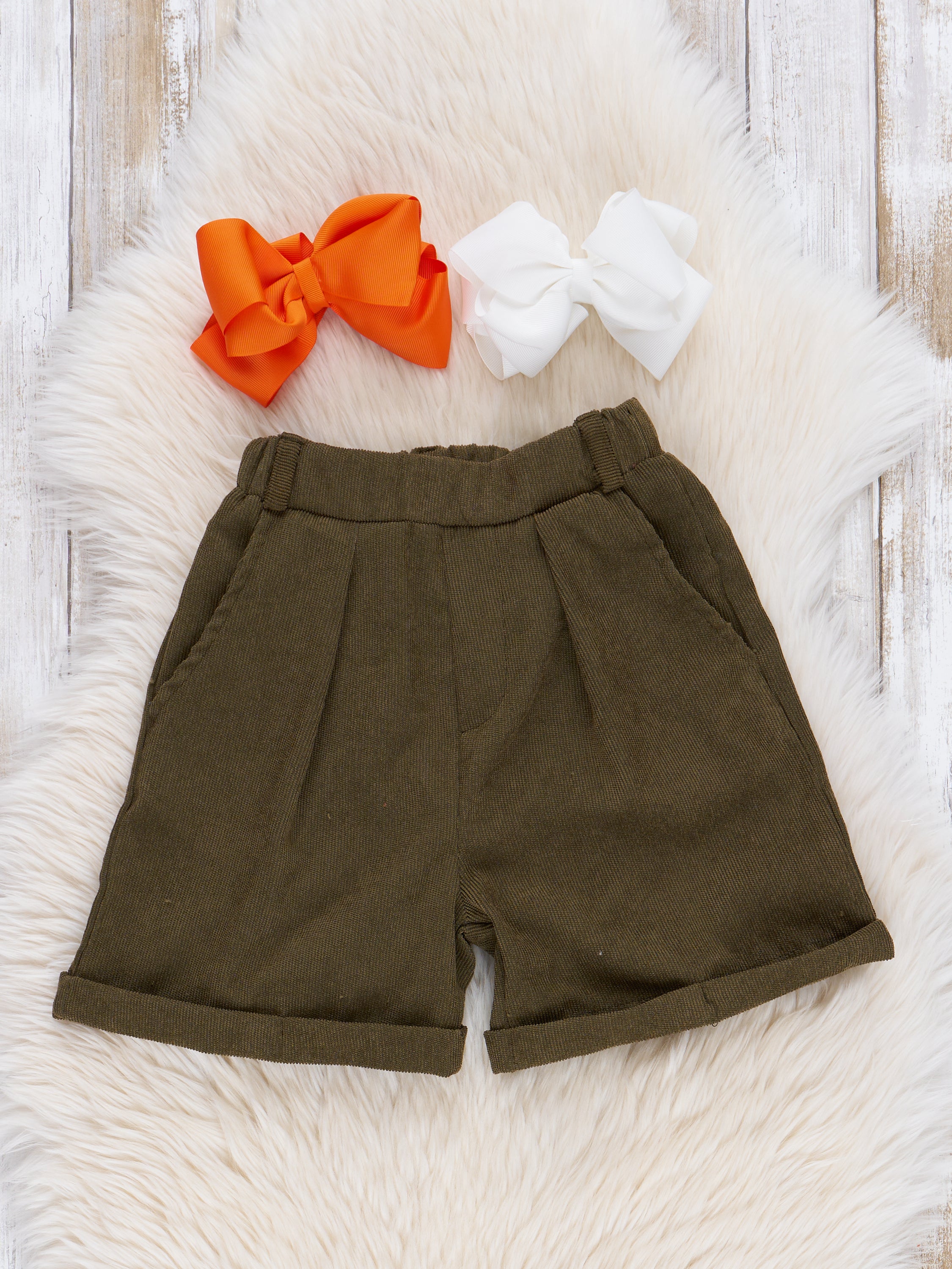 Bronze & Olive Leopard Pumpkin Suede Outfit w/ Shorts