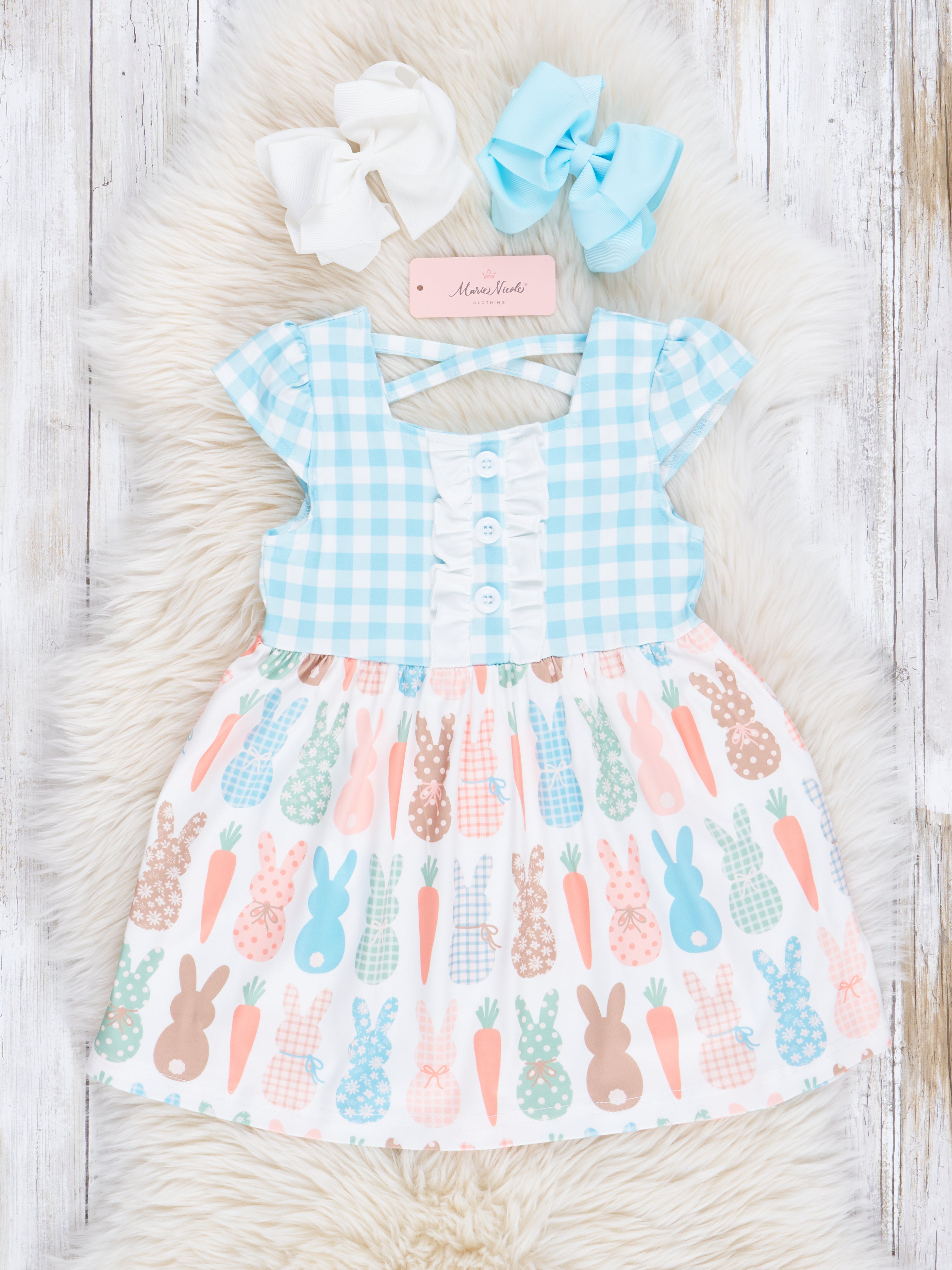 Blue Gingham Bunnies Dress
