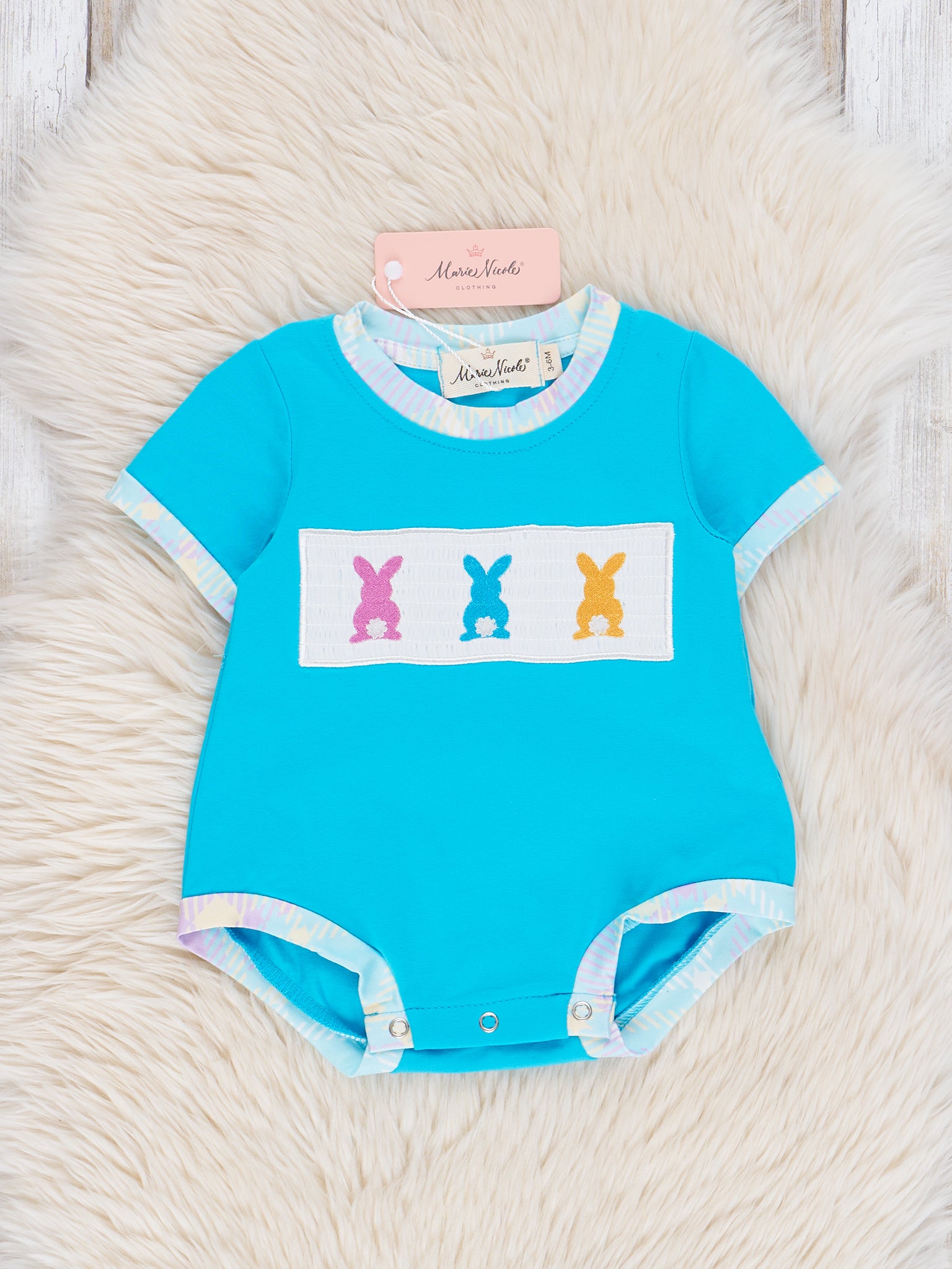 Blue Smocked Embroidered Bunny Bubble