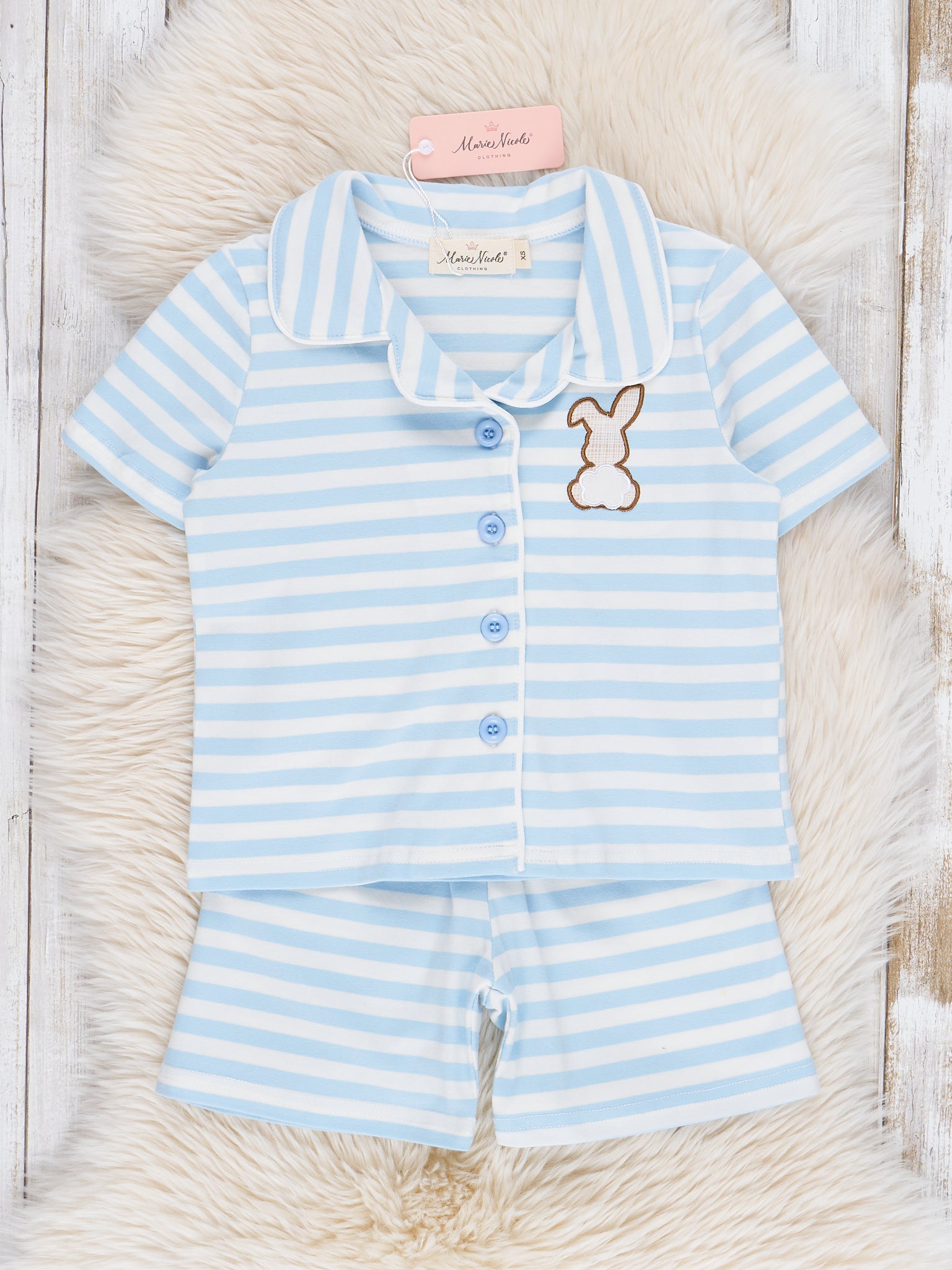 Striped Bunny & Carrots Blue Pajamas