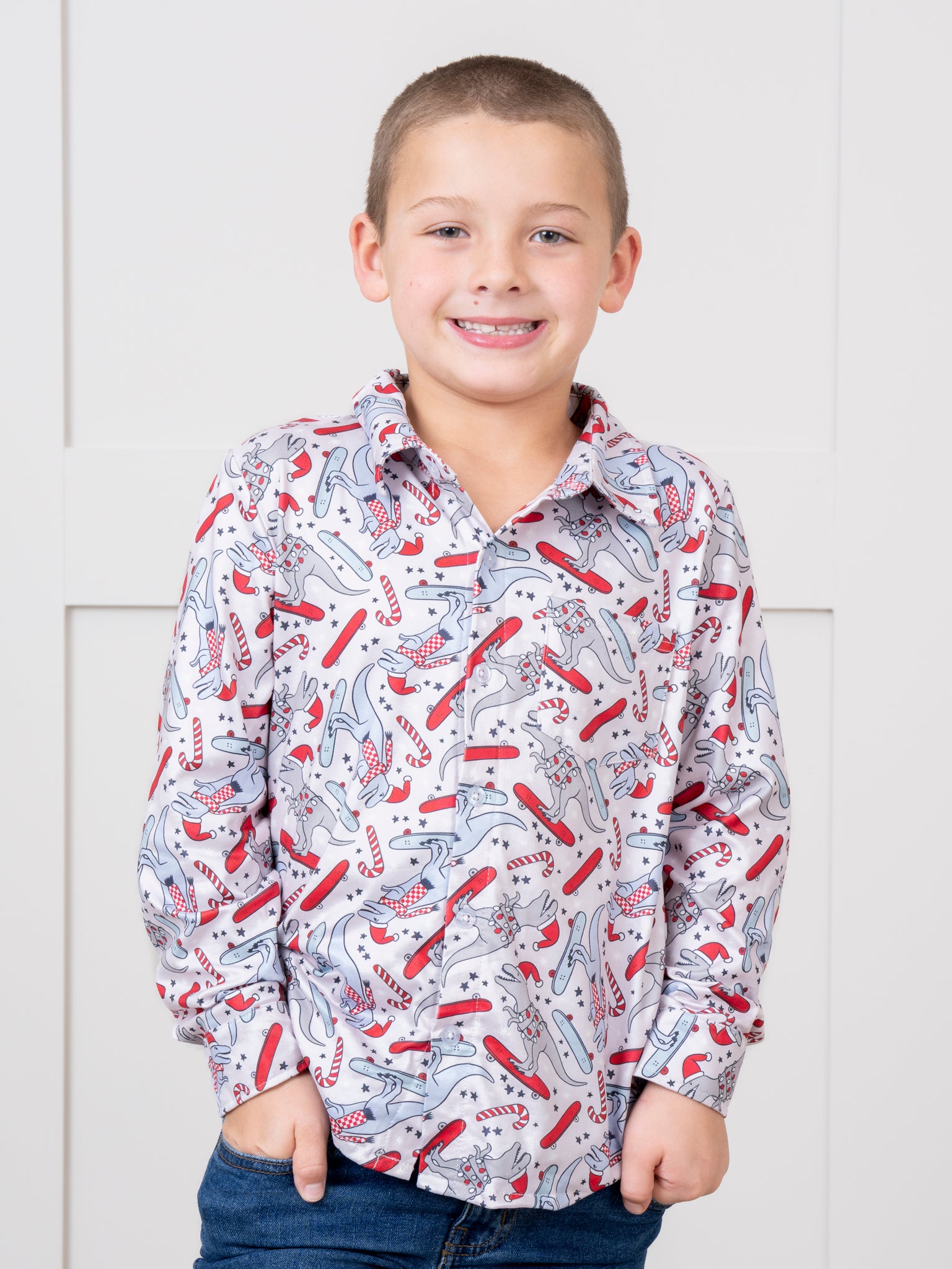 Grey & Blue Skating Holiday Dinosaurs Shirt