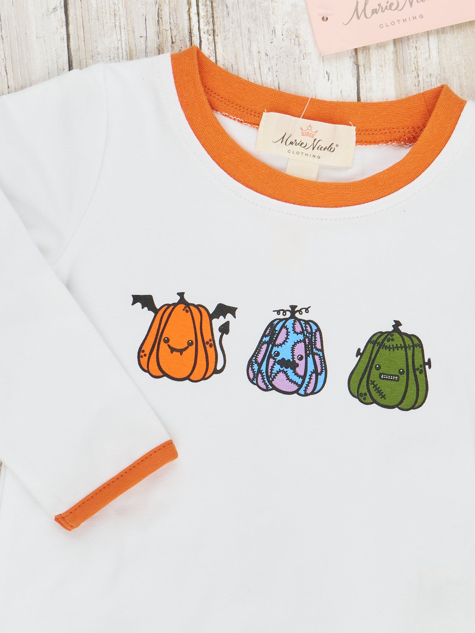 Ready for some really spooky nights? This White Spooky Nights Shirt is just what your little one needs! Featuring an orange trim, a bright and fun pumpkin print, and perfect for any Halloween get-together, this sibling set is sure to bring some spooks to your family! Let's get spookin'!