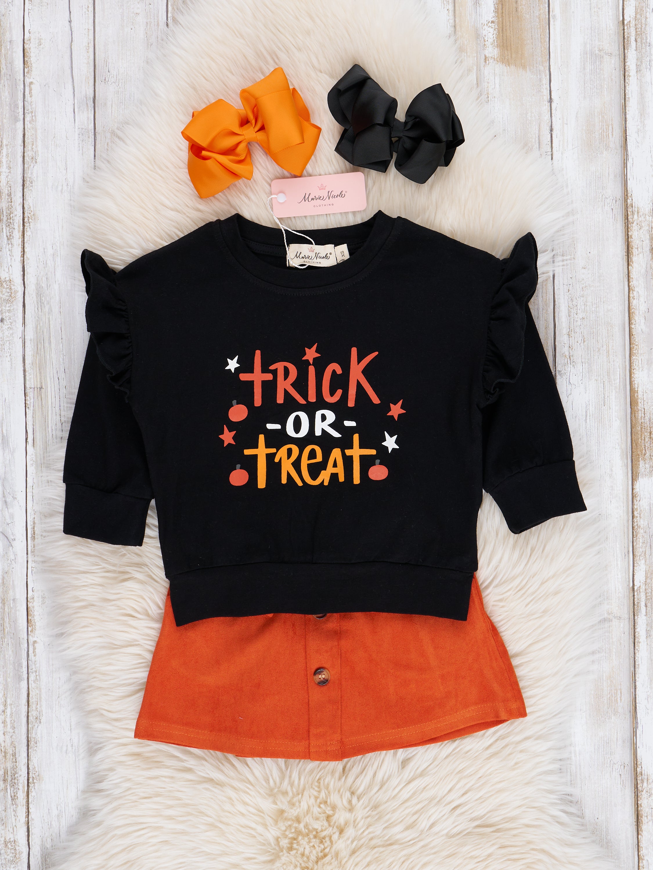 Orange Trick or Treat Ruffle Suede Skirt Set