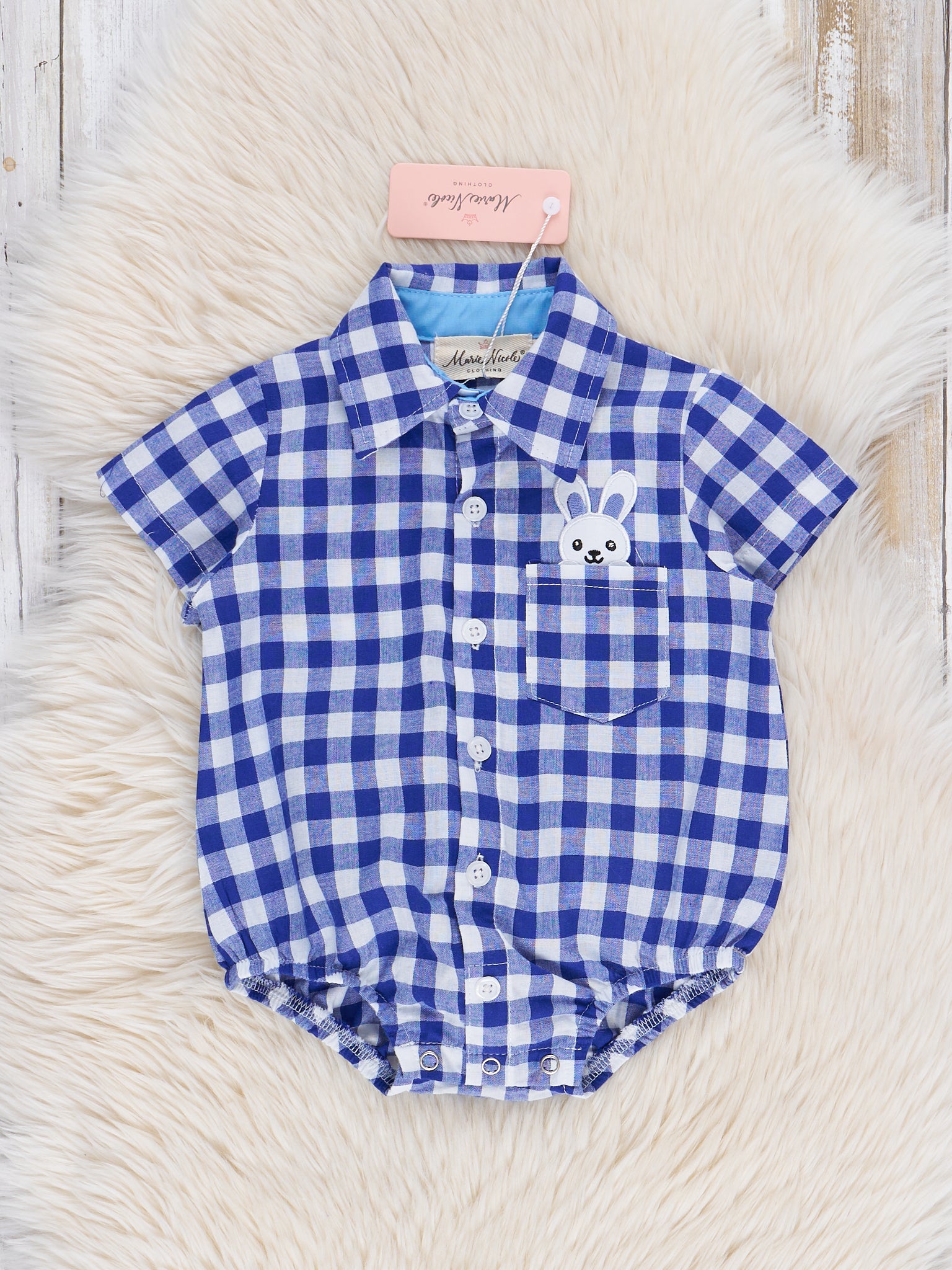 Blue Gingham Bunny Button Down Bubble