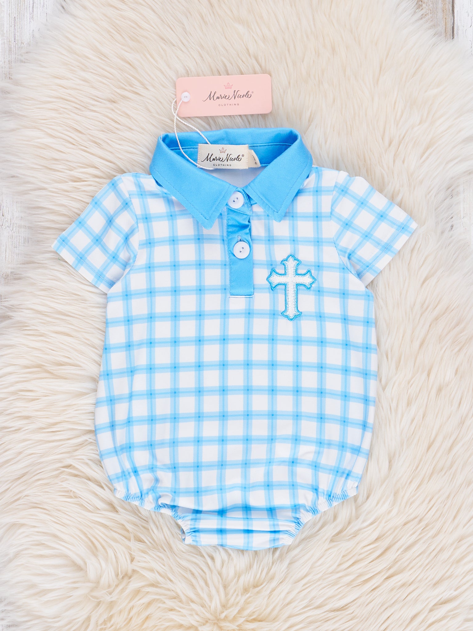 Blue Plaid Embroidered Cross Polo Bubble