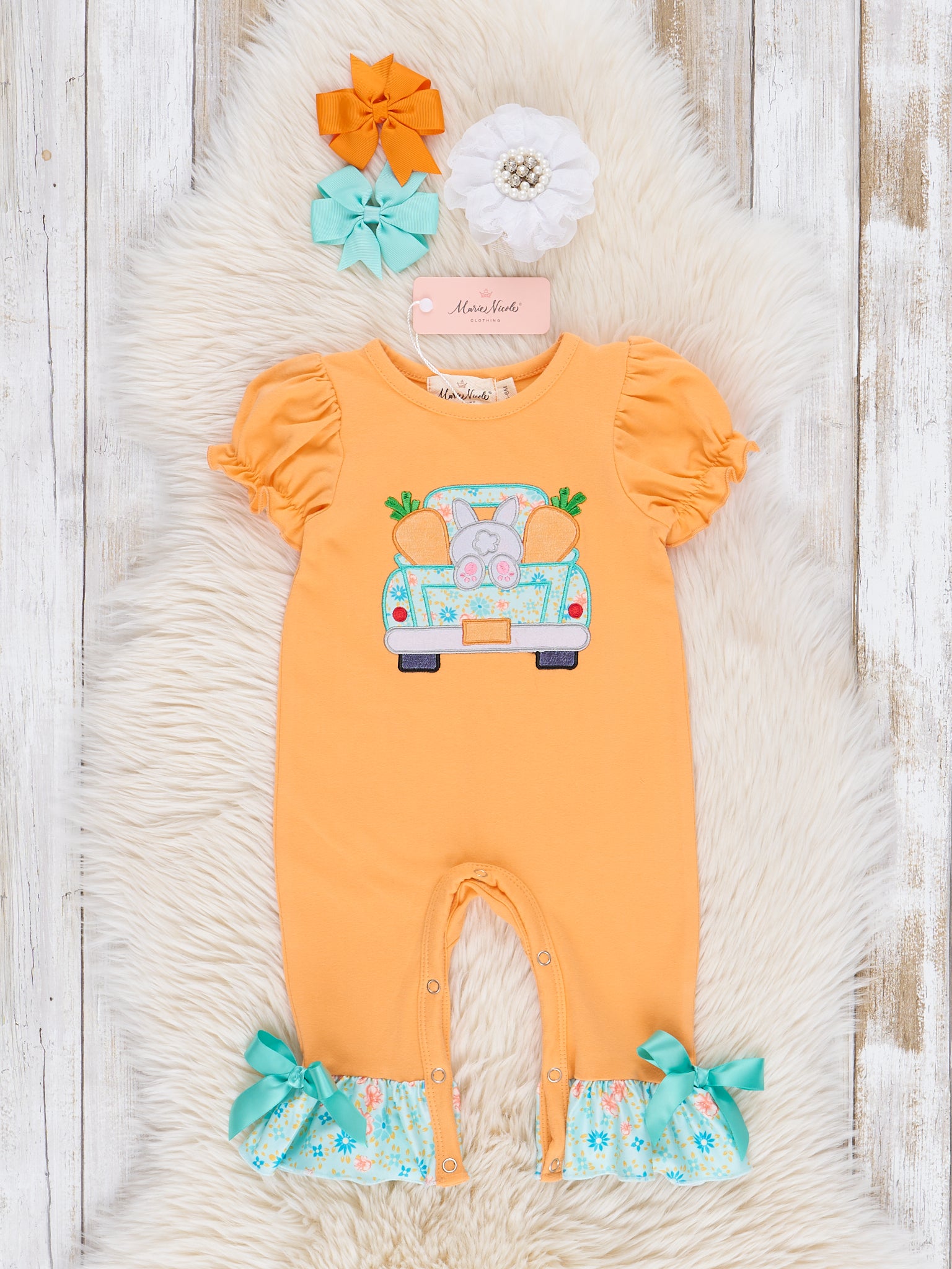Orange Bunny Truck Ruffle Romper