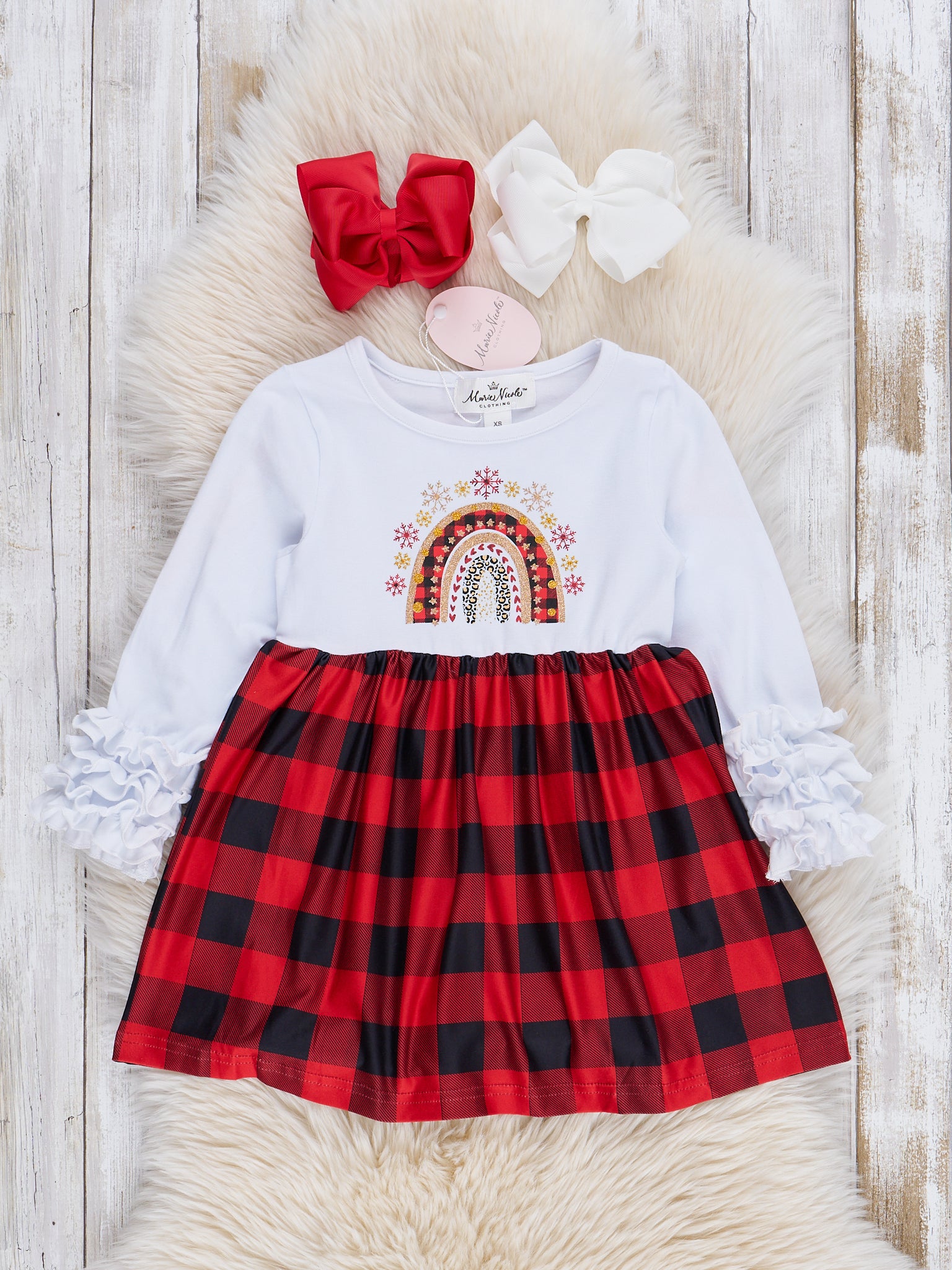 Buffalo Plaid Rainbow Ruffle Dress