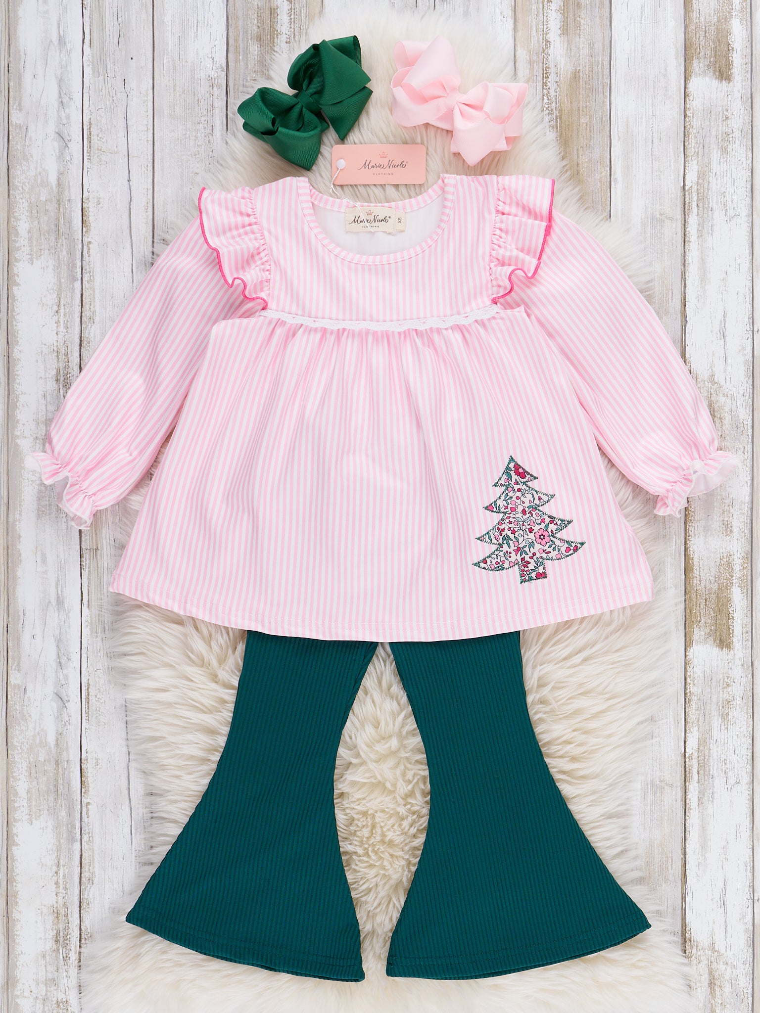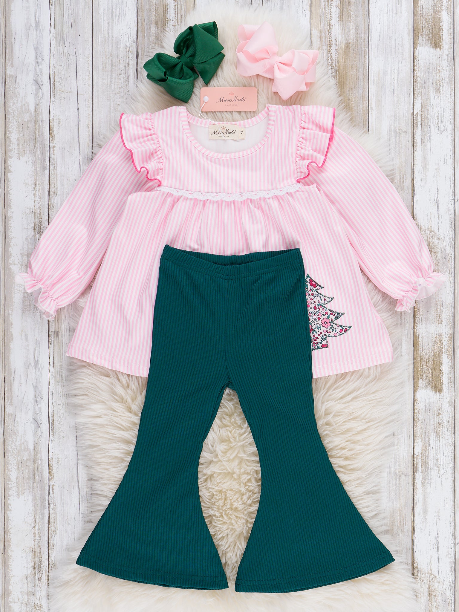 "Ho Ho Ho" Glitter Ruffle Bell Bottom Outfit