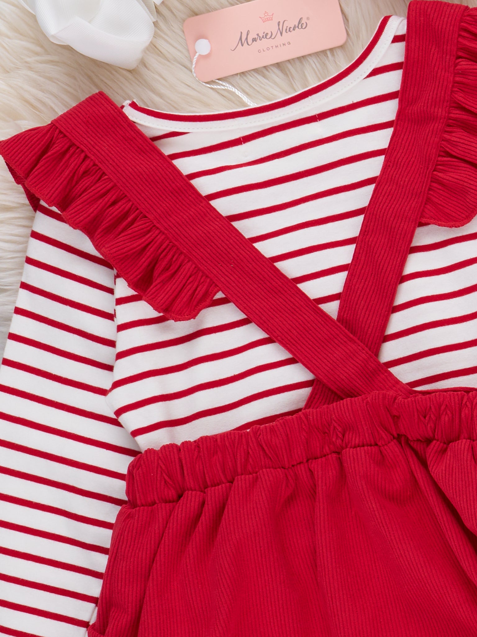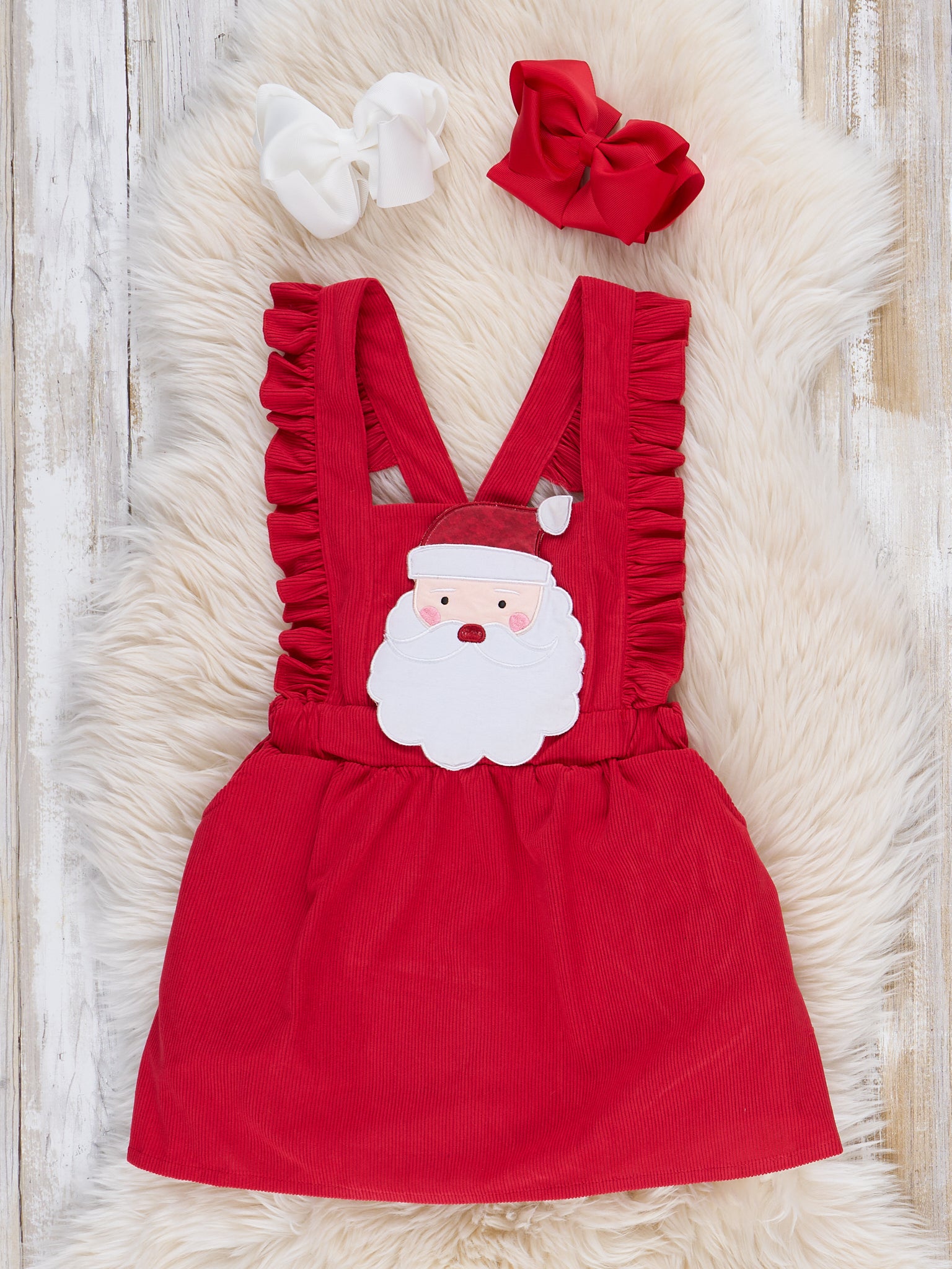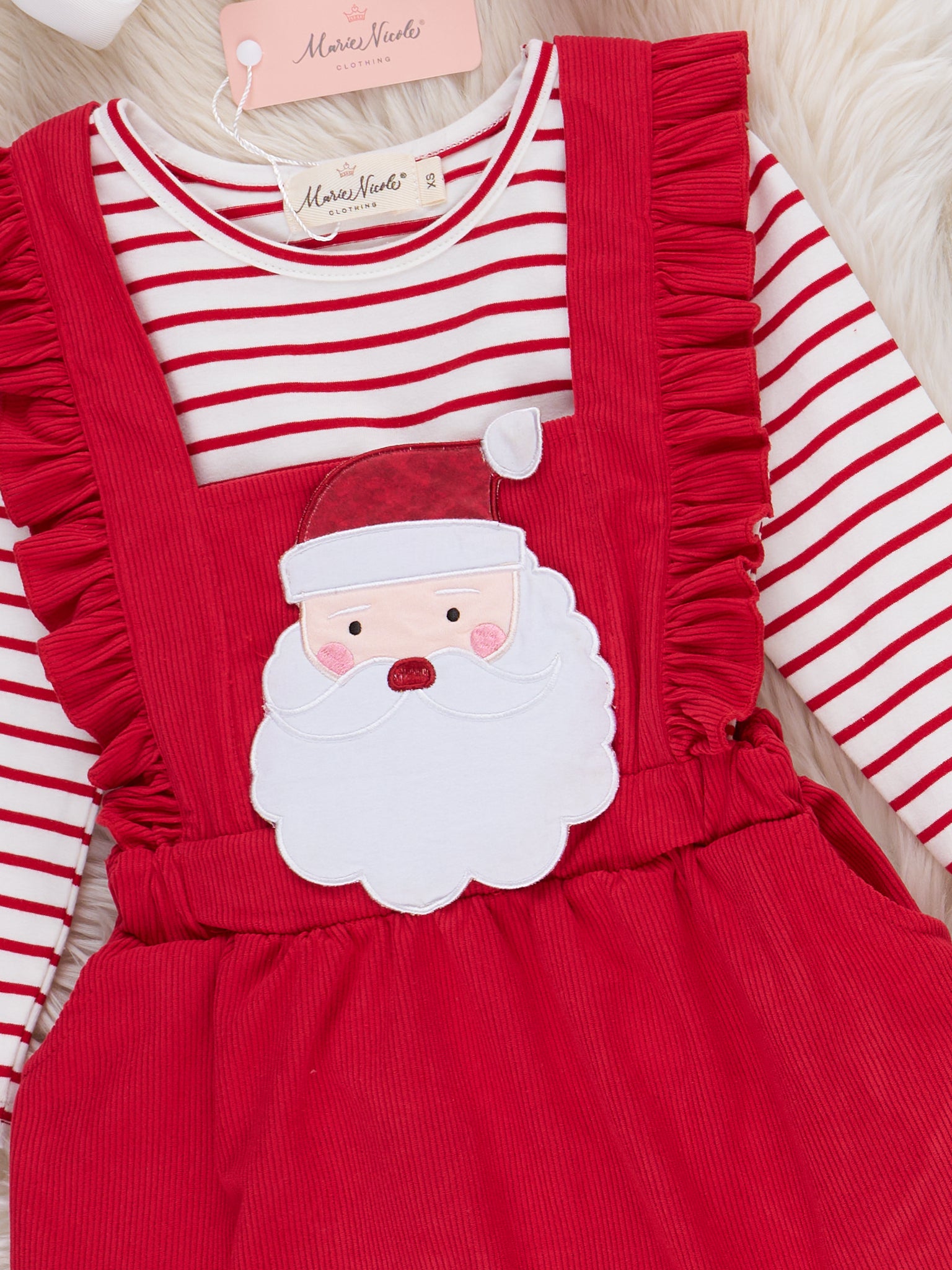 Get your little one in the holiday spirit with this quirky Santa Embroidered Corduroy Skirtall Outfit! The corduroy overall dress features an embroidered Santa, while the striped top adds a pop of color. Perfect for those festive family gatherings!