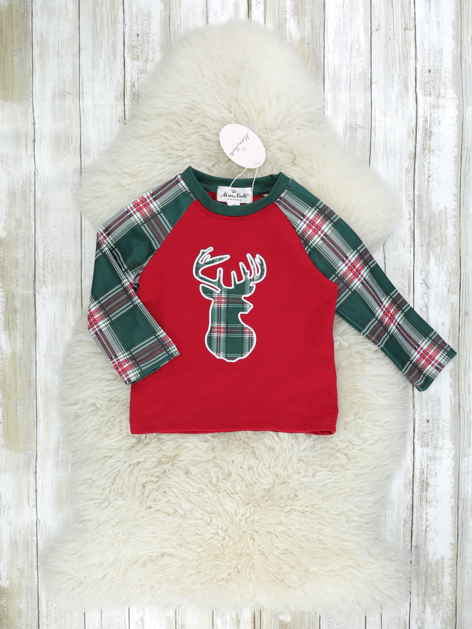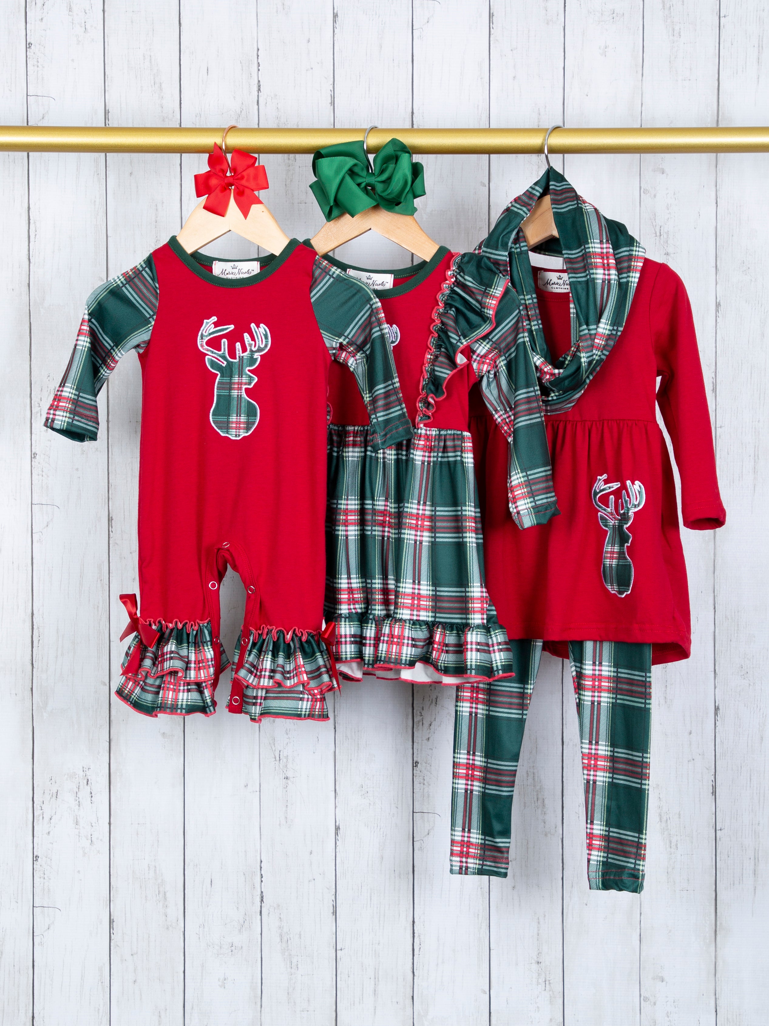 Home › Hunter Green Plaid Reindeer Sibling Set
