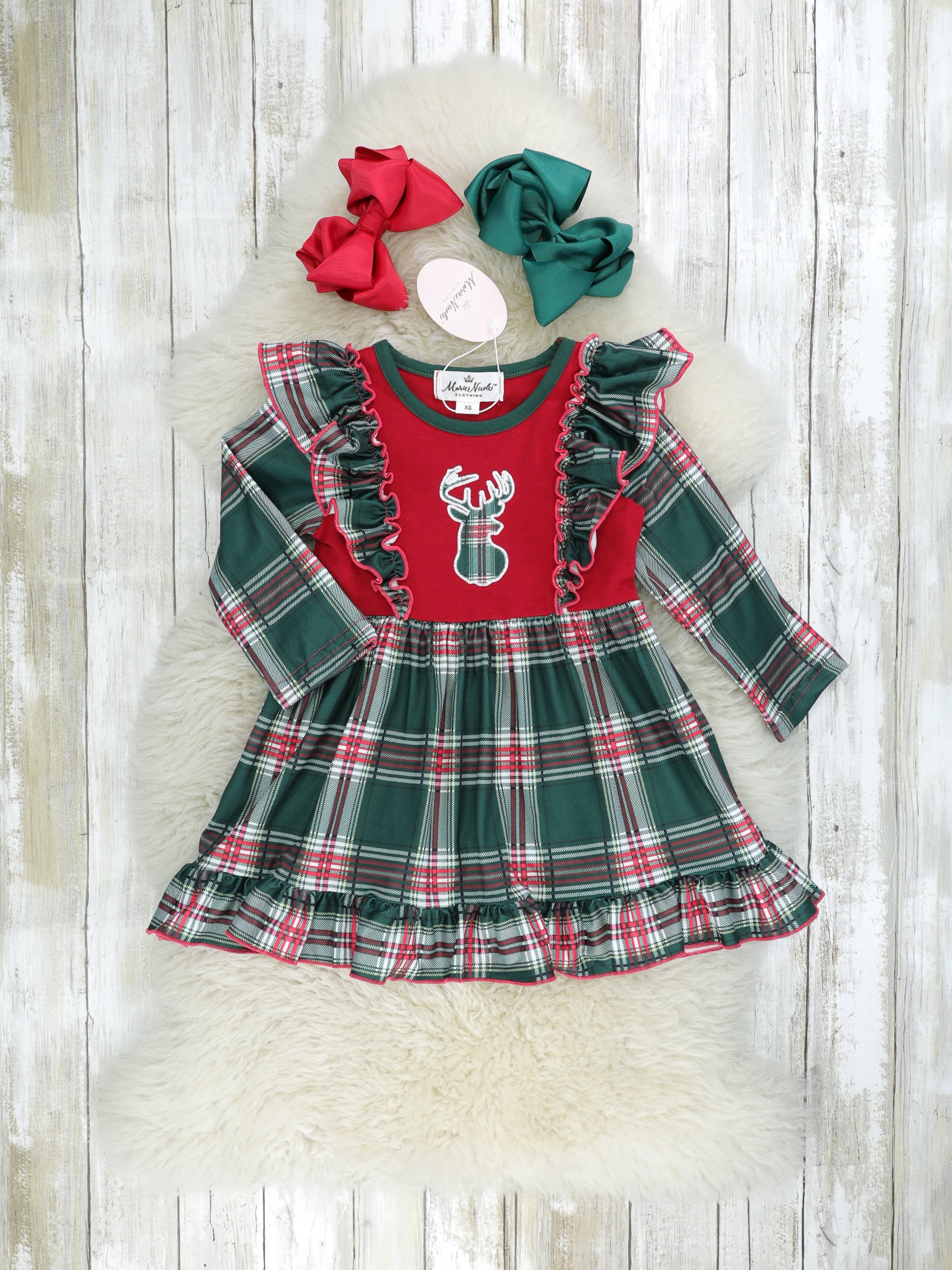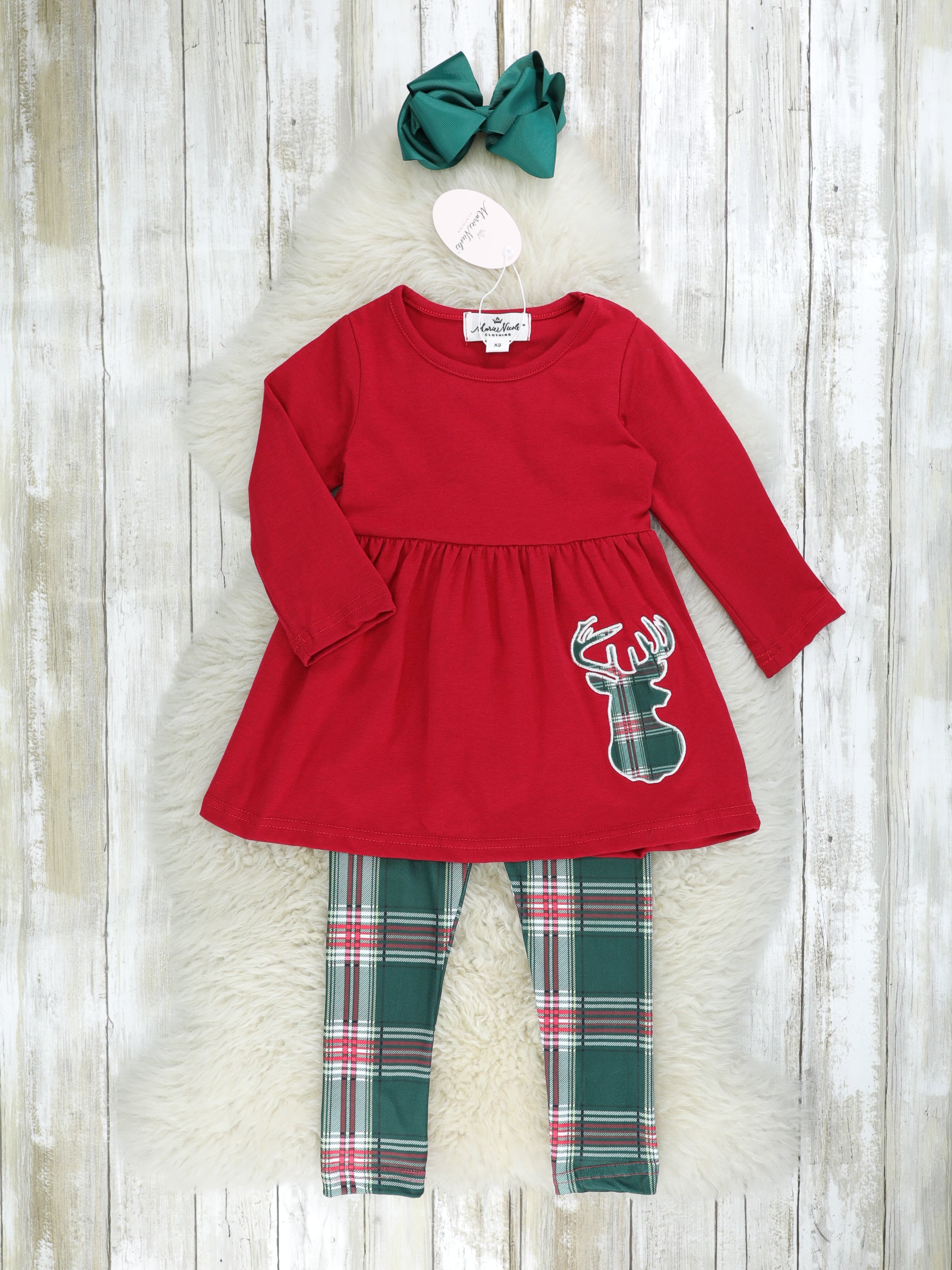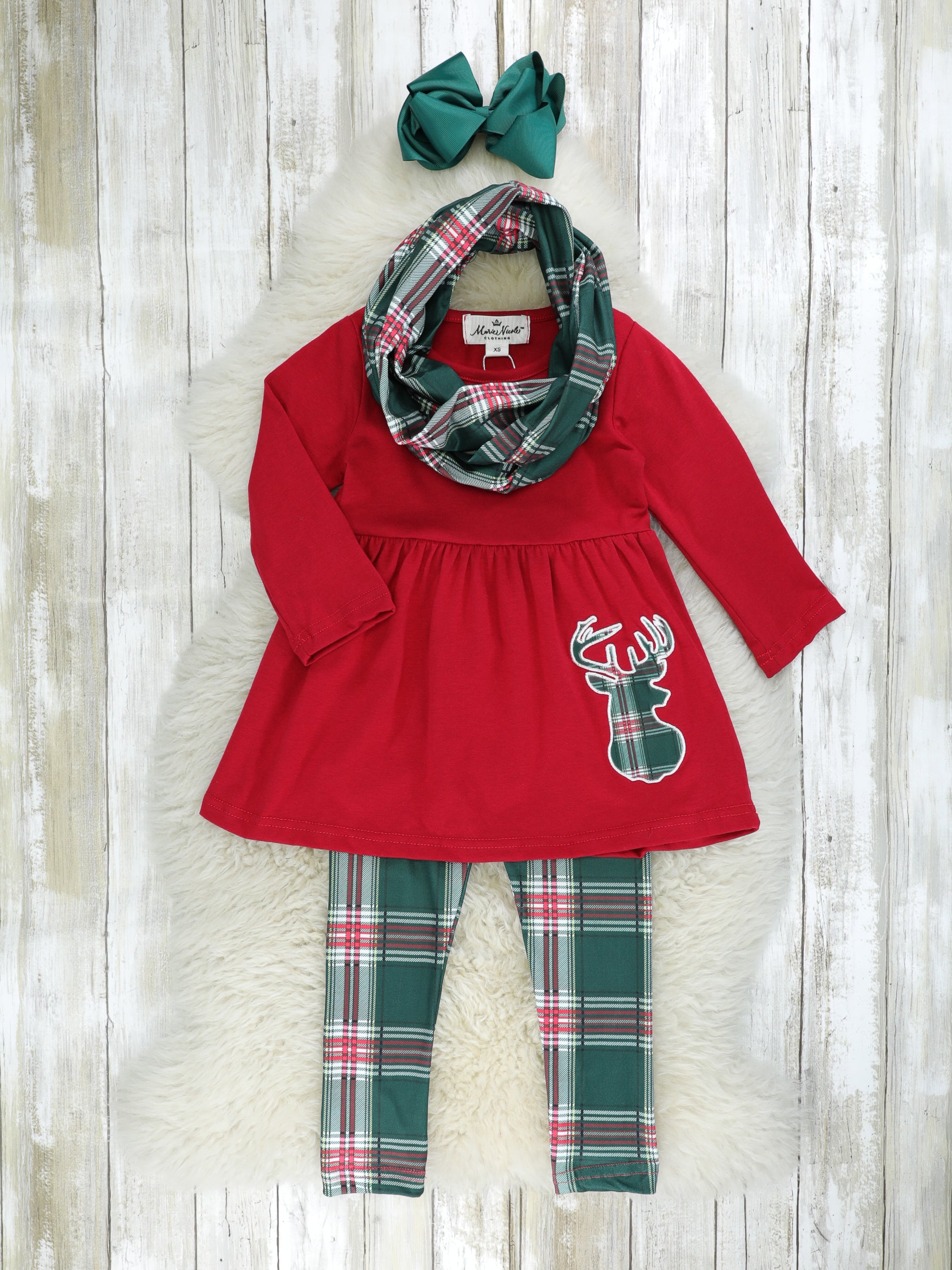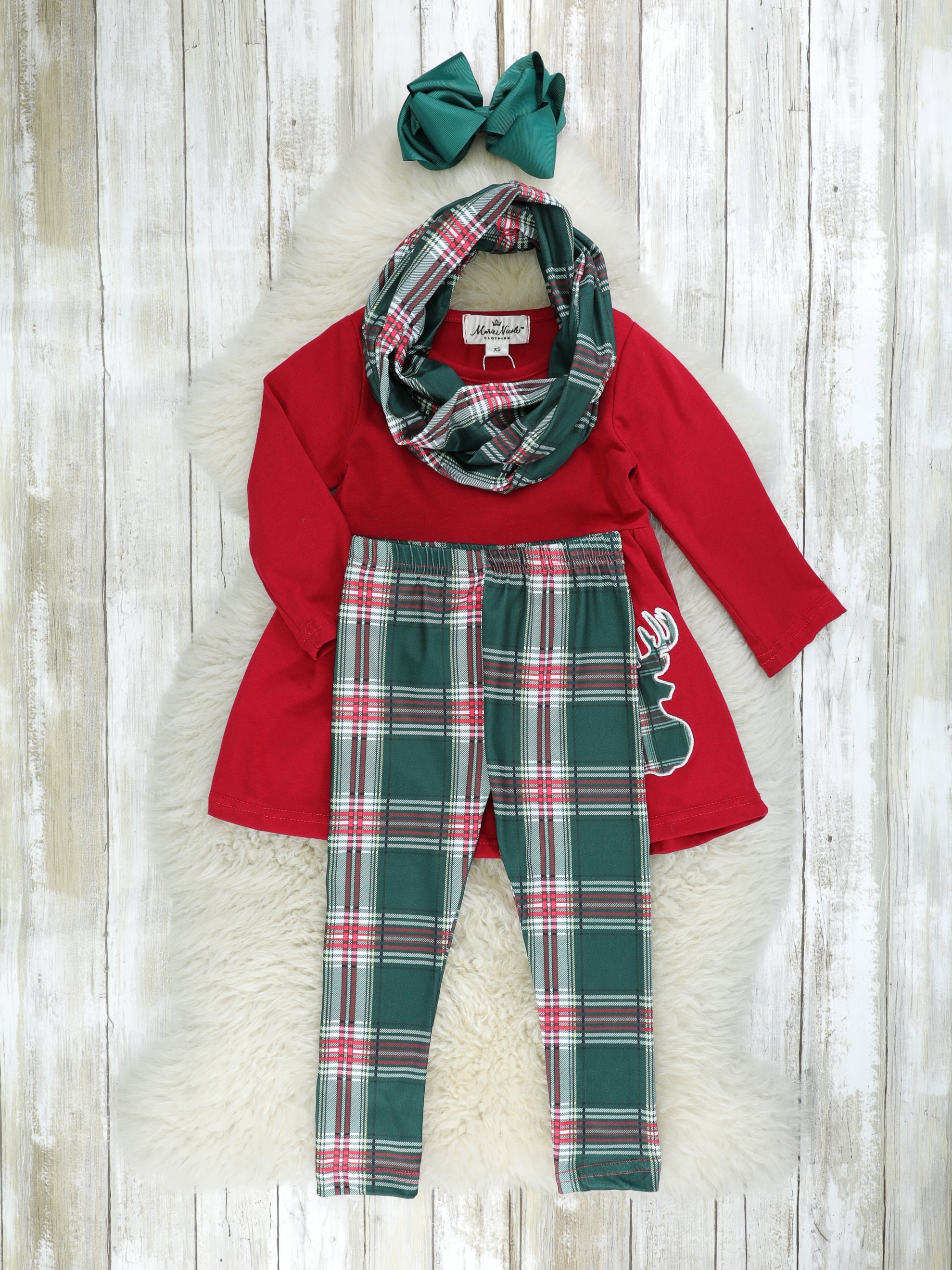 Hunter Green Plaid Reindeer 3-Piece Outfit