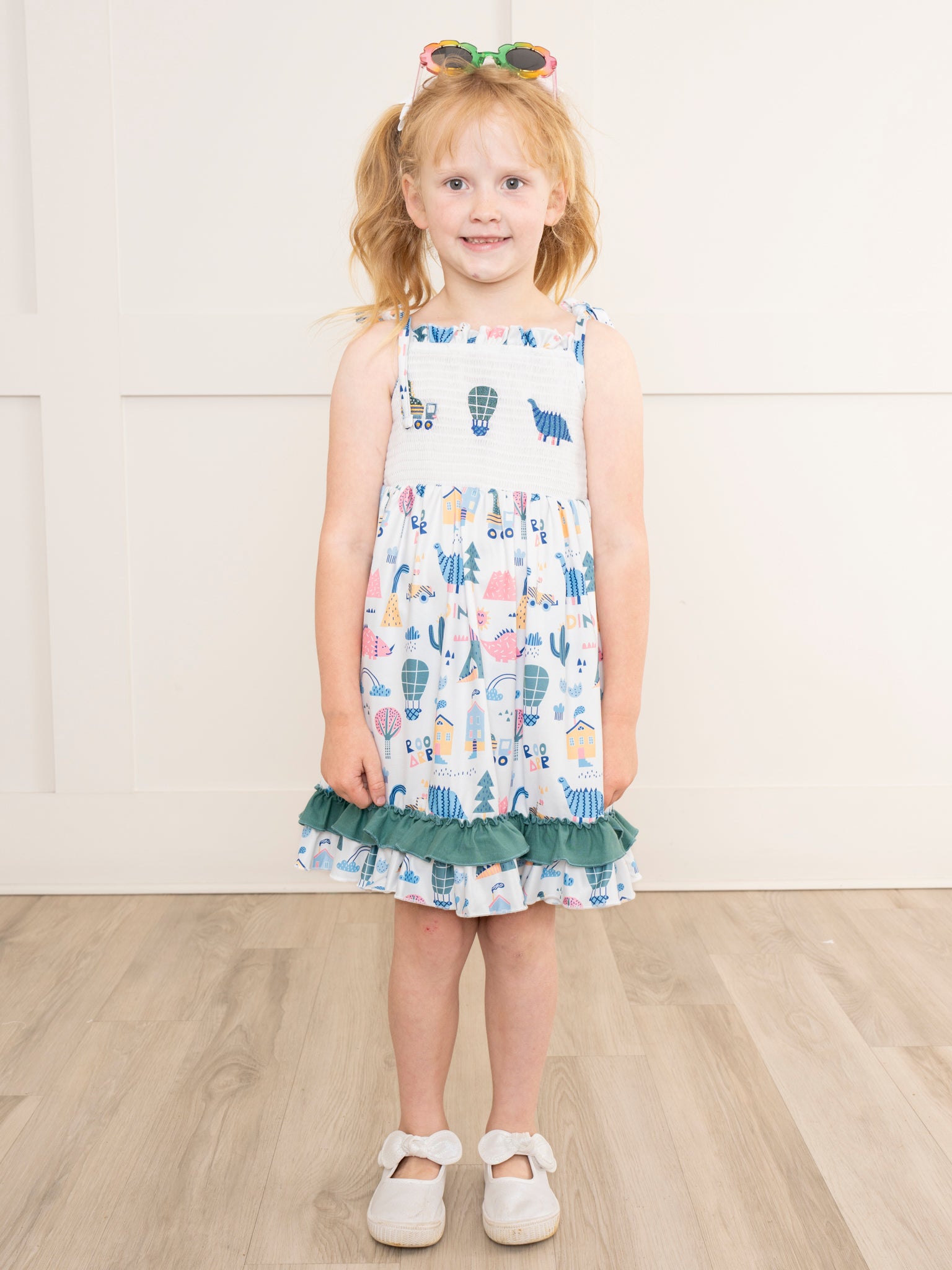 Home › Hunter Green Smocked Dinosaur Friends Sibling Set