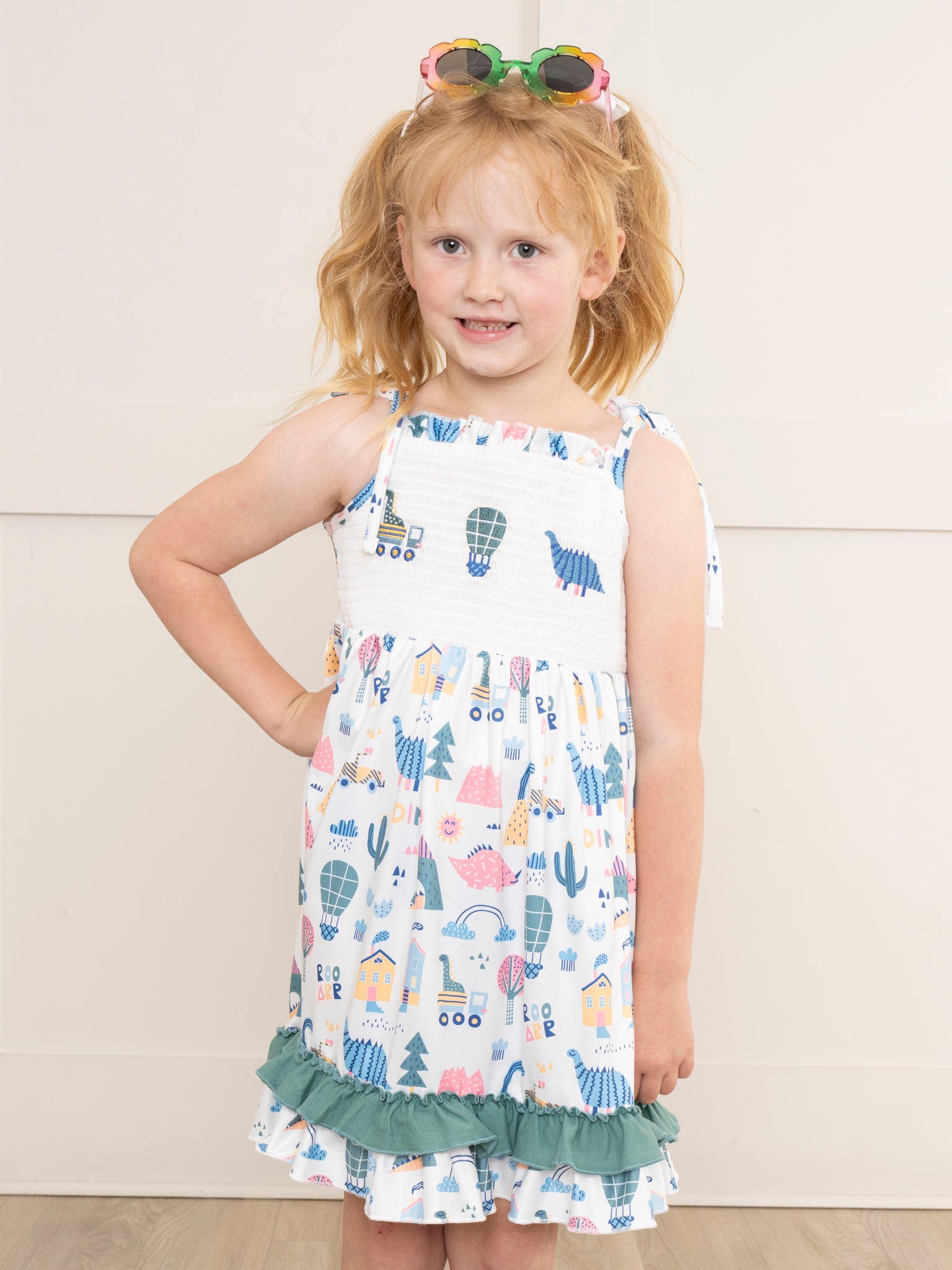 Hunter Green Smocked Dinosaur Friends Sibling Set