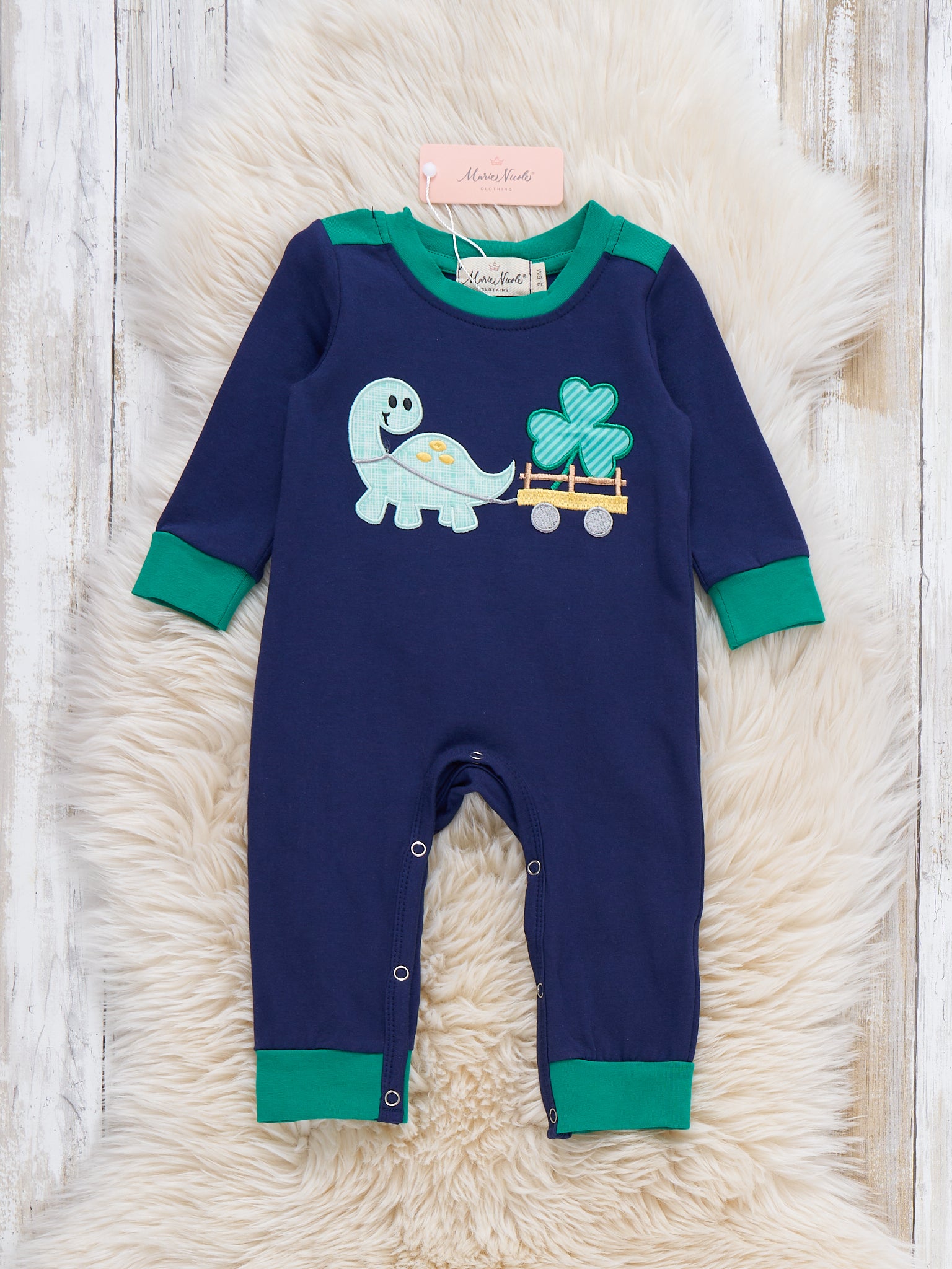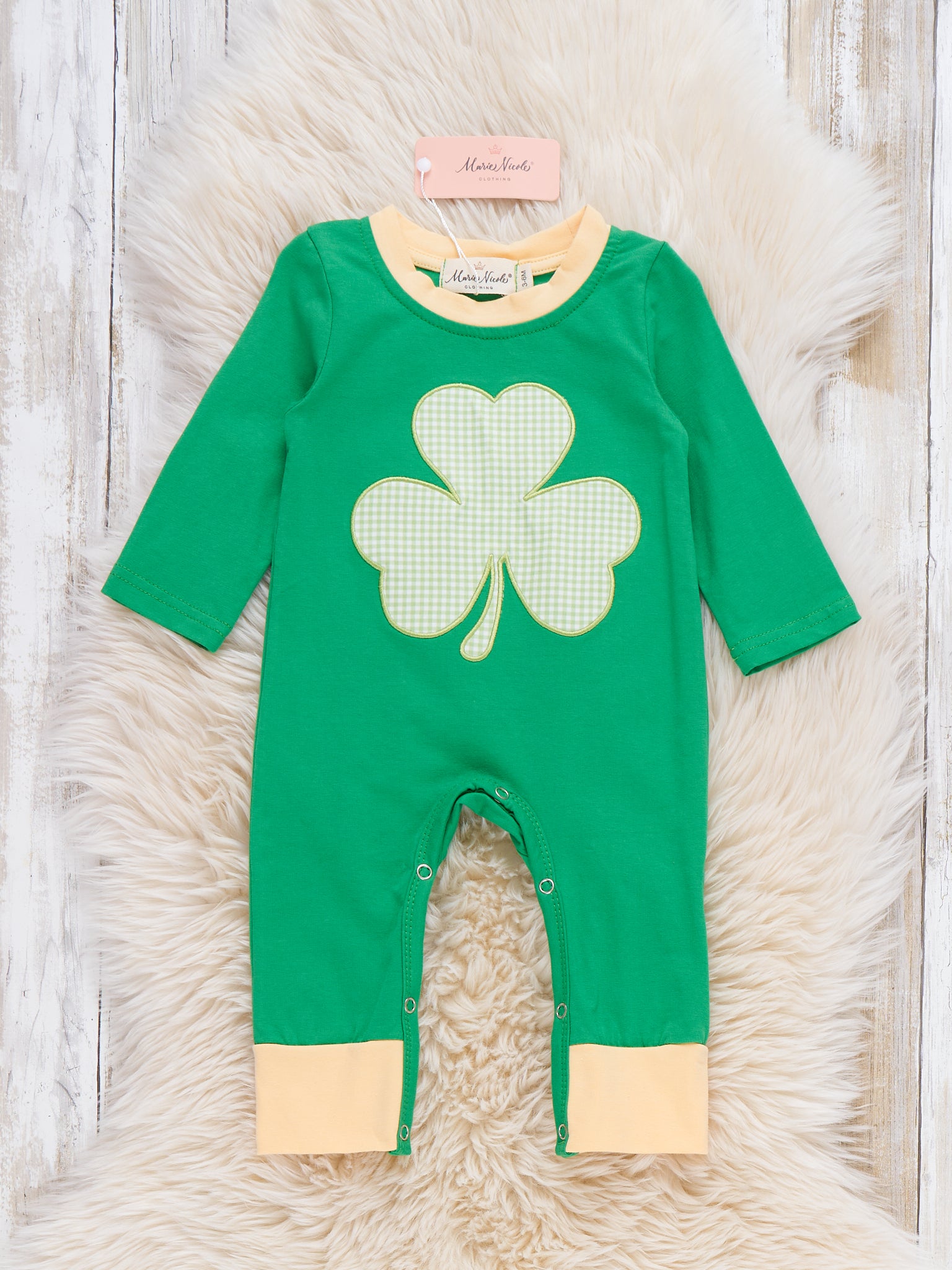 Shamrock Sweetheart Embroidered Ruffle Romper