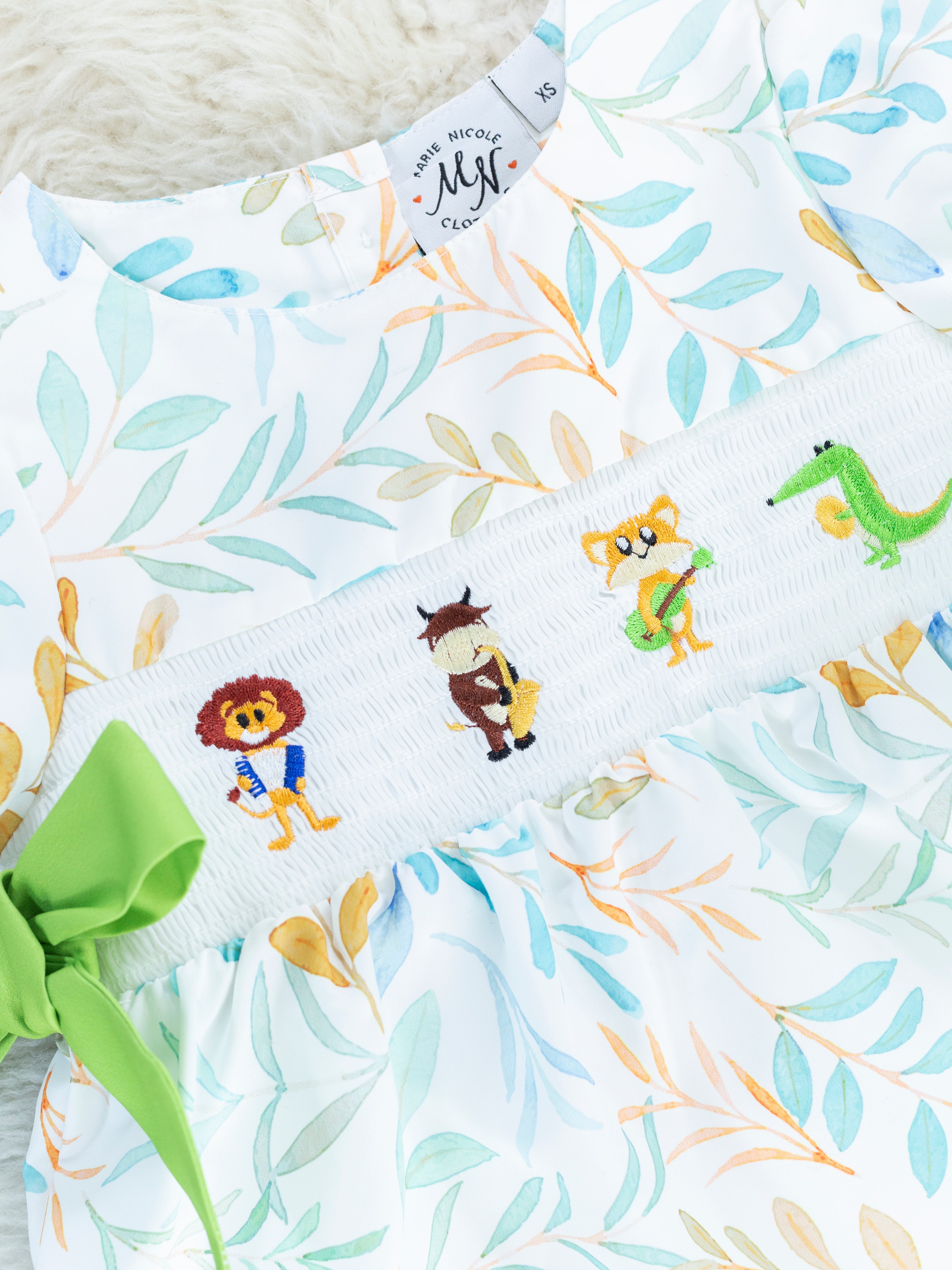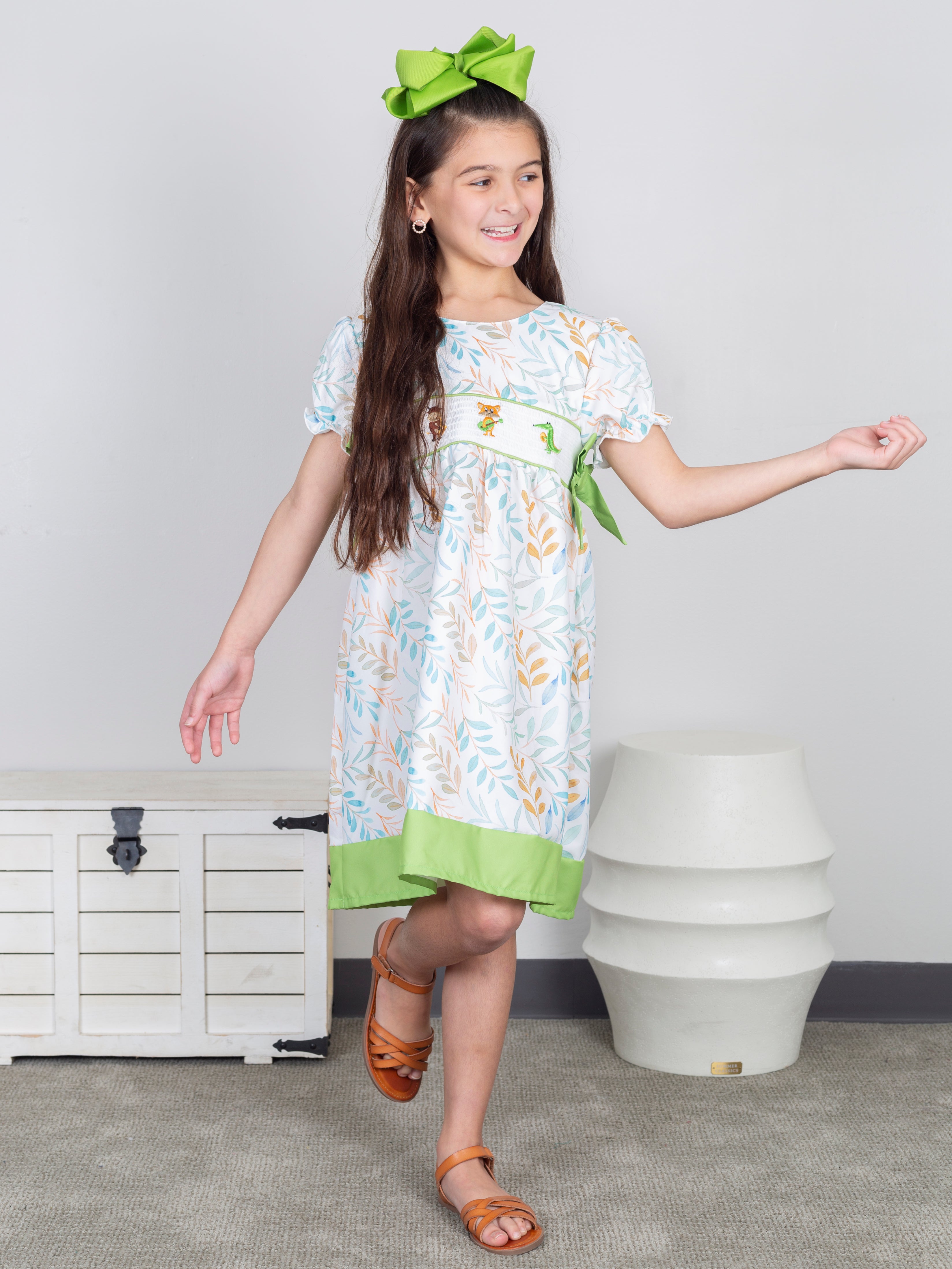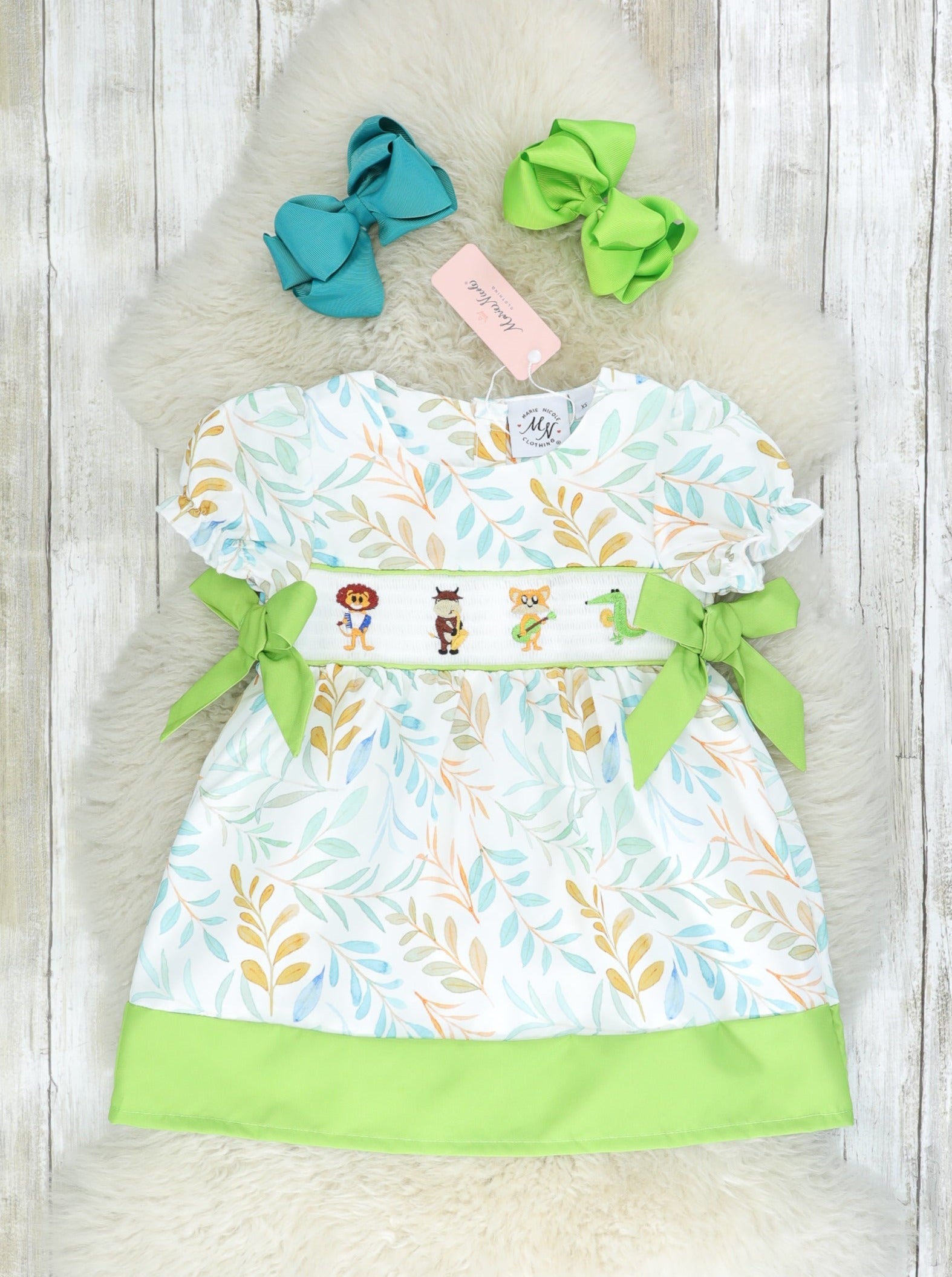 Jazzy Zoo Friends Smocked Bow Dress