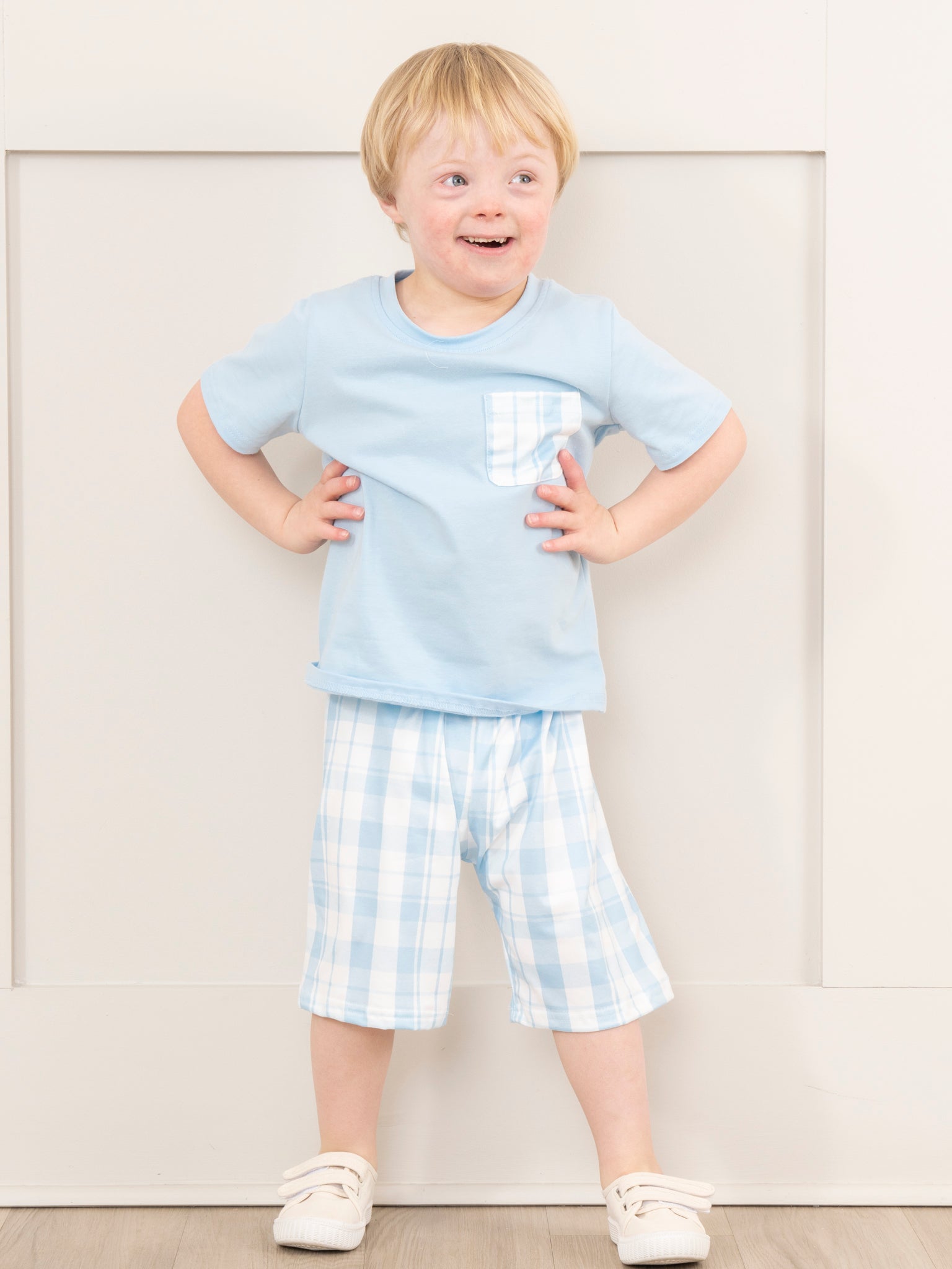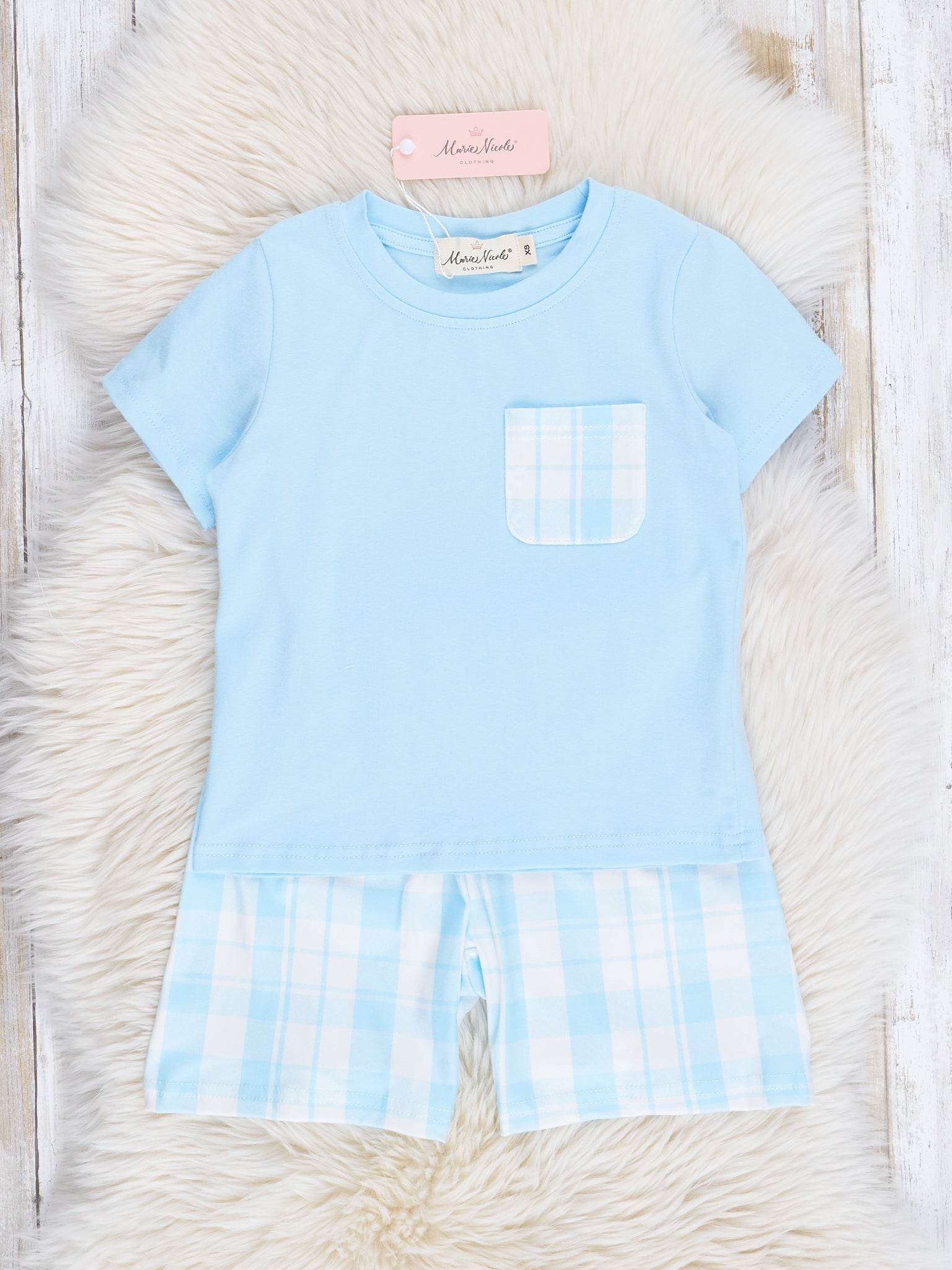 Home › Light Blue Gingham Pocket Brother Set
