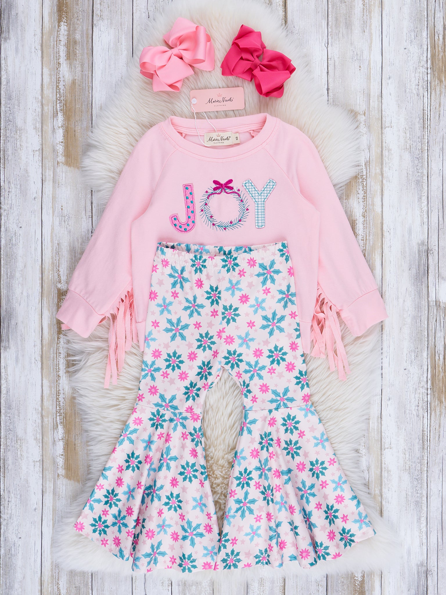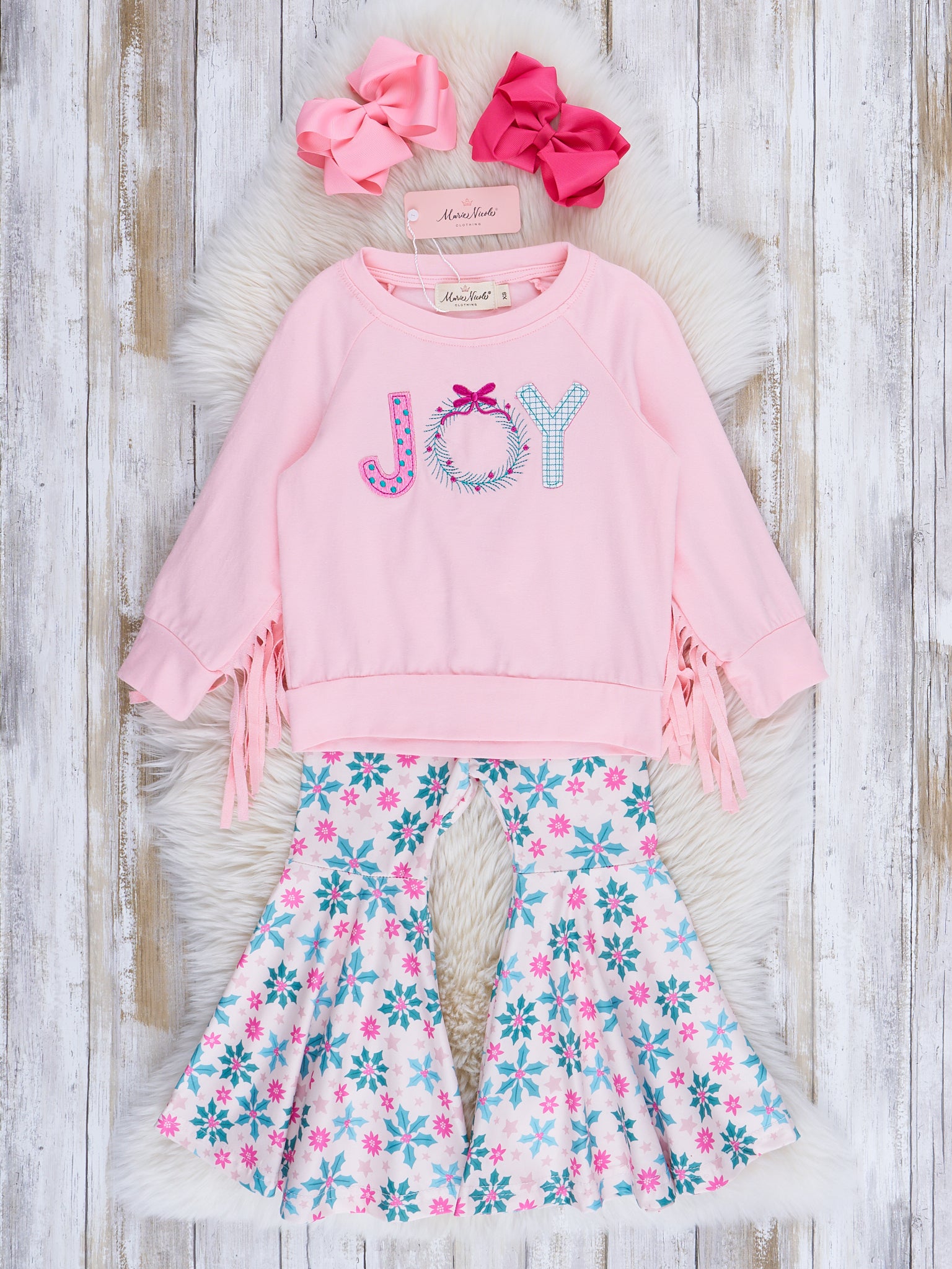 Light Pink "Joy" Fringe Bell Bottom Outfit