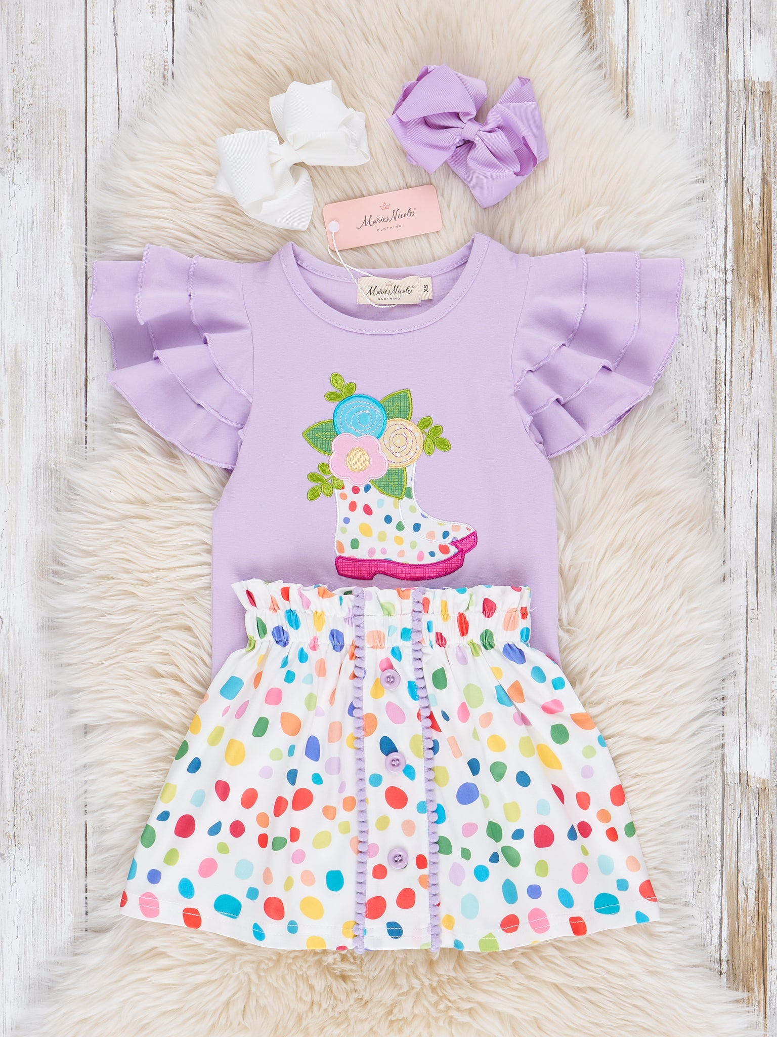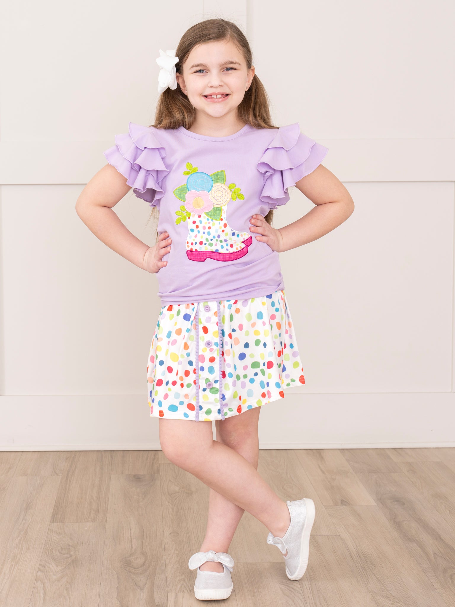 Lilac Confetti Cowgirl Outfit w/ Skirt