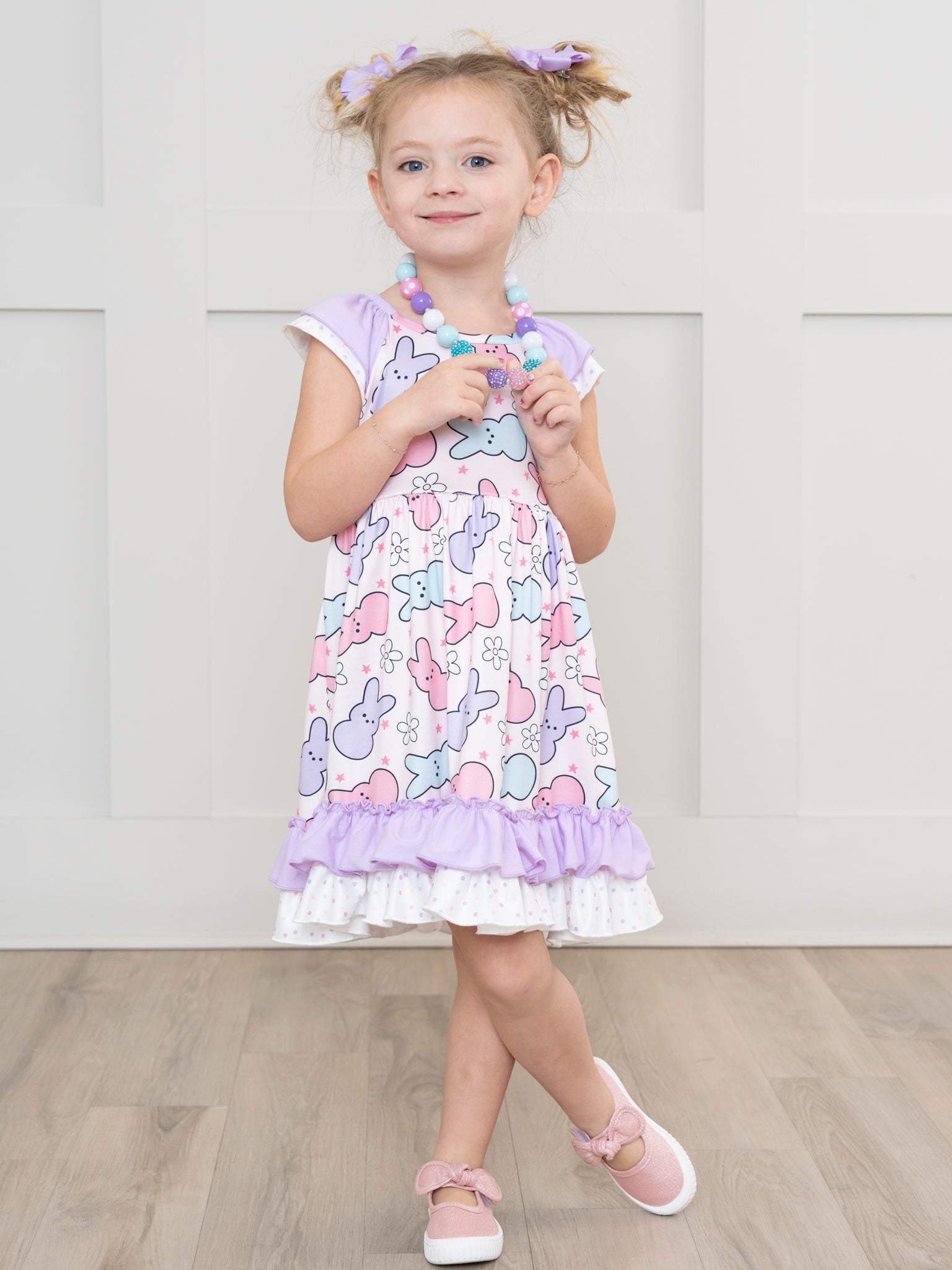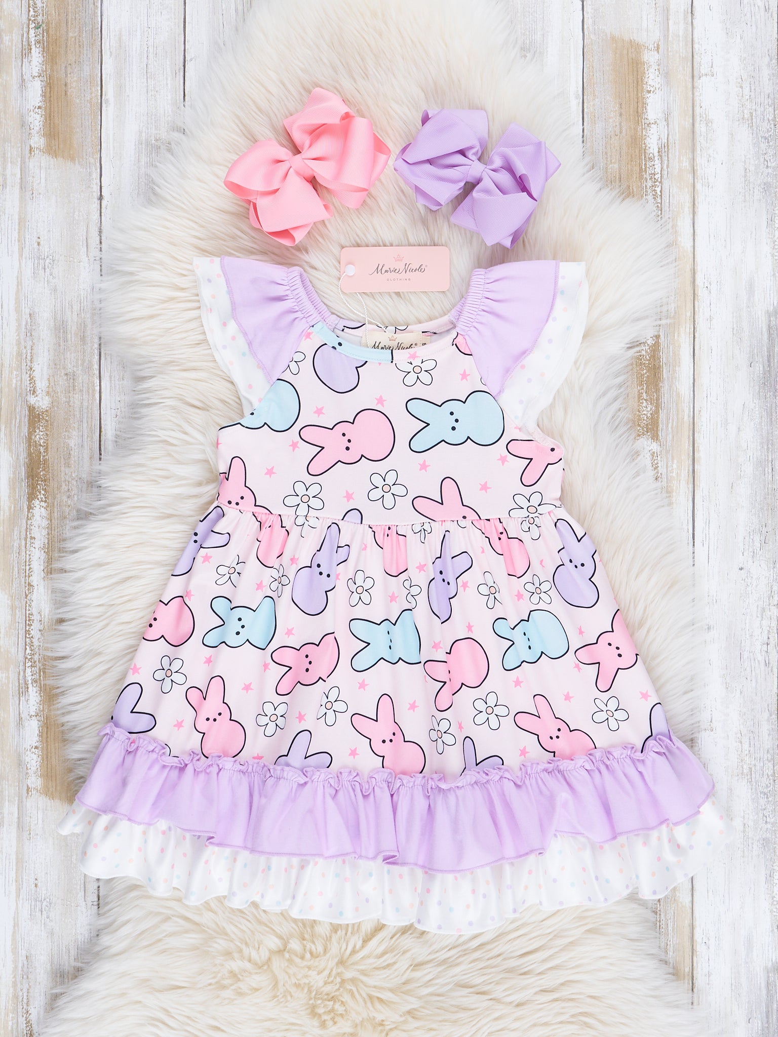 Lilac & Rose Star Bunnies Ruffle Dress