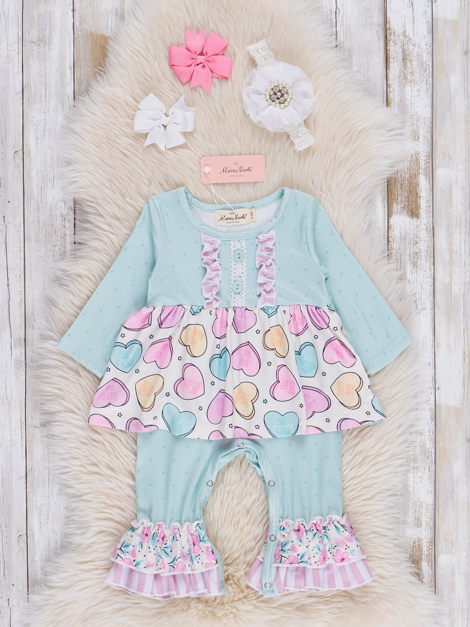 Lilac & Teal Candy Hearts Ruffle Outfit