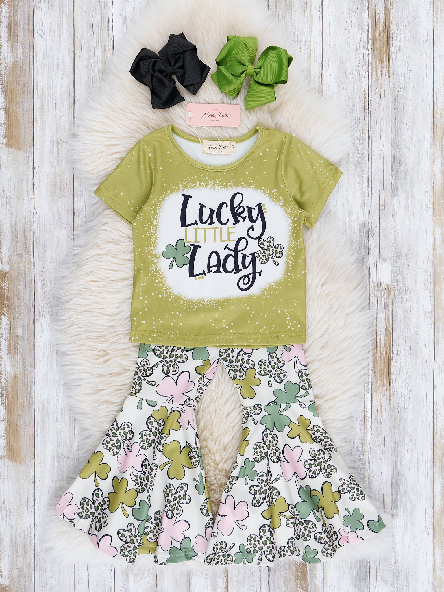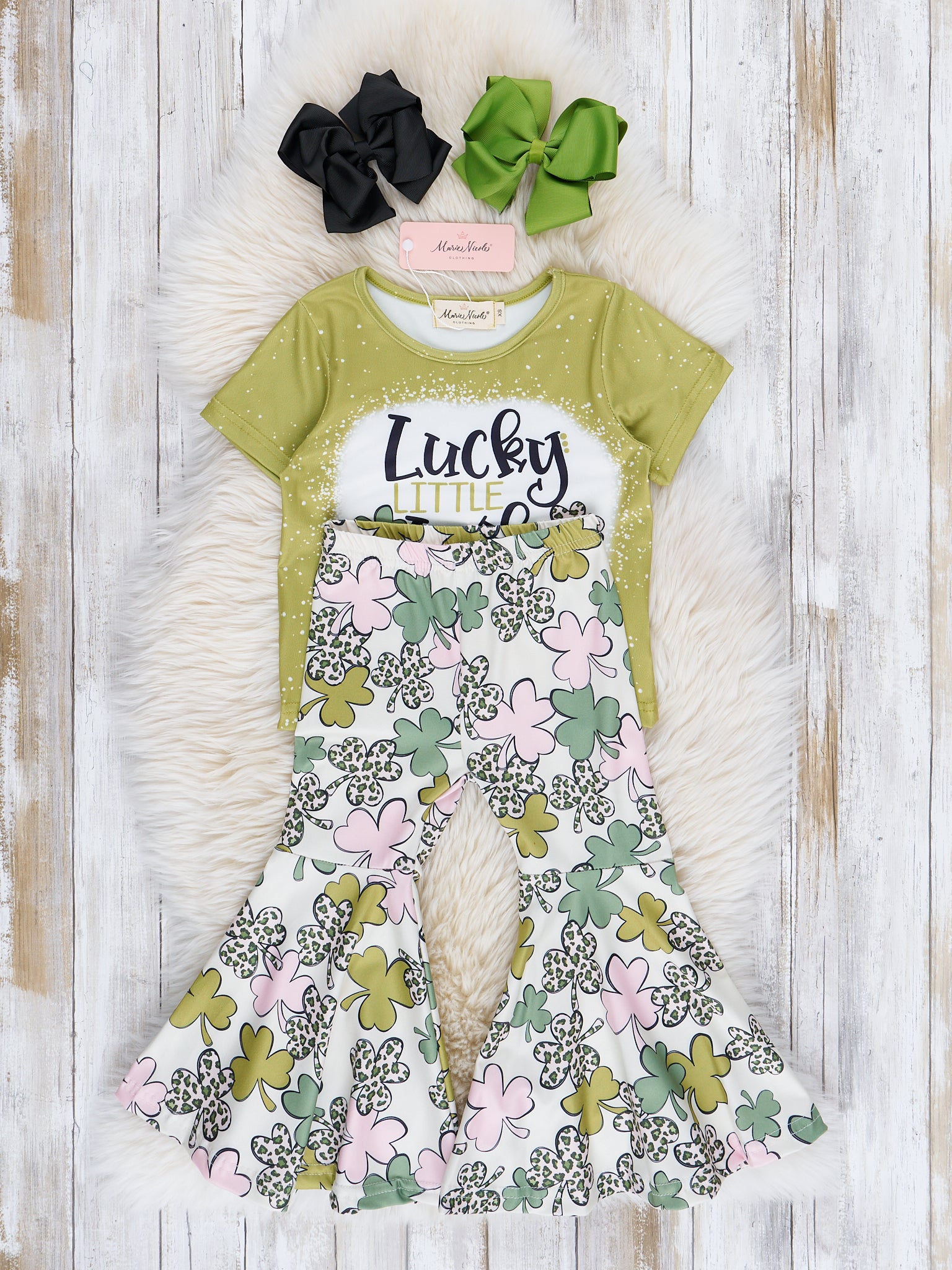 Lucky Pink & Green Clovers Bell Bottom Outfit