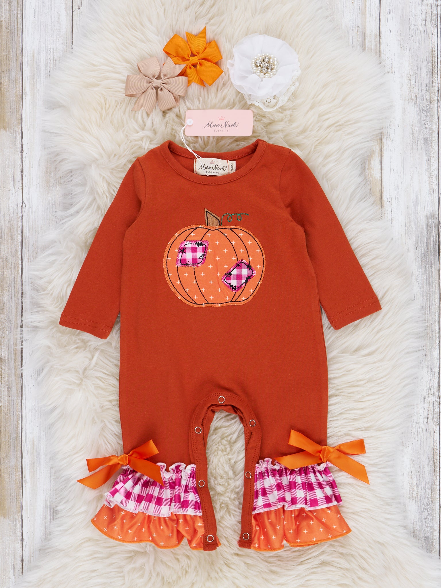 Magenta & Cinnamon Gingham Pumpkin Romper