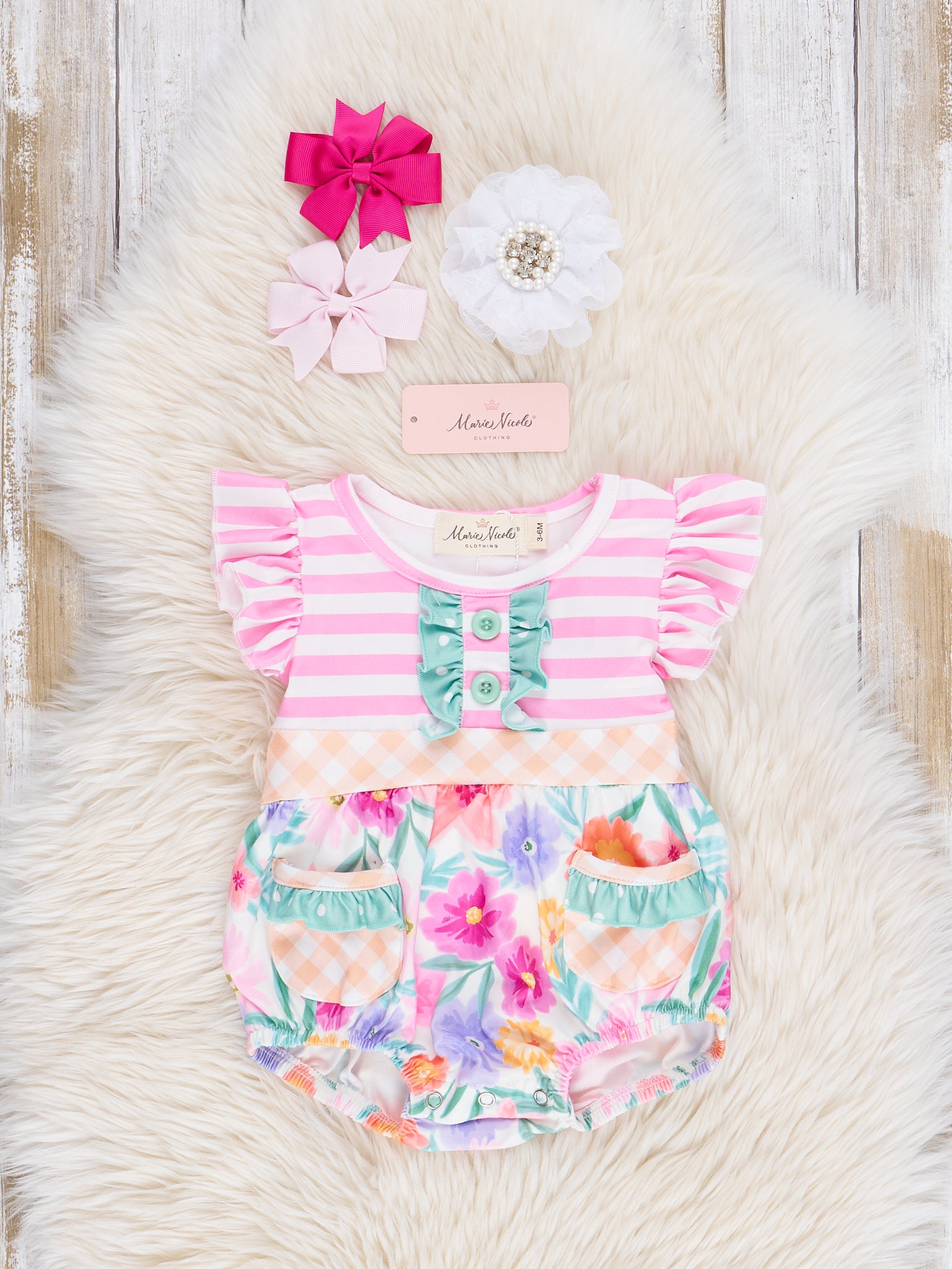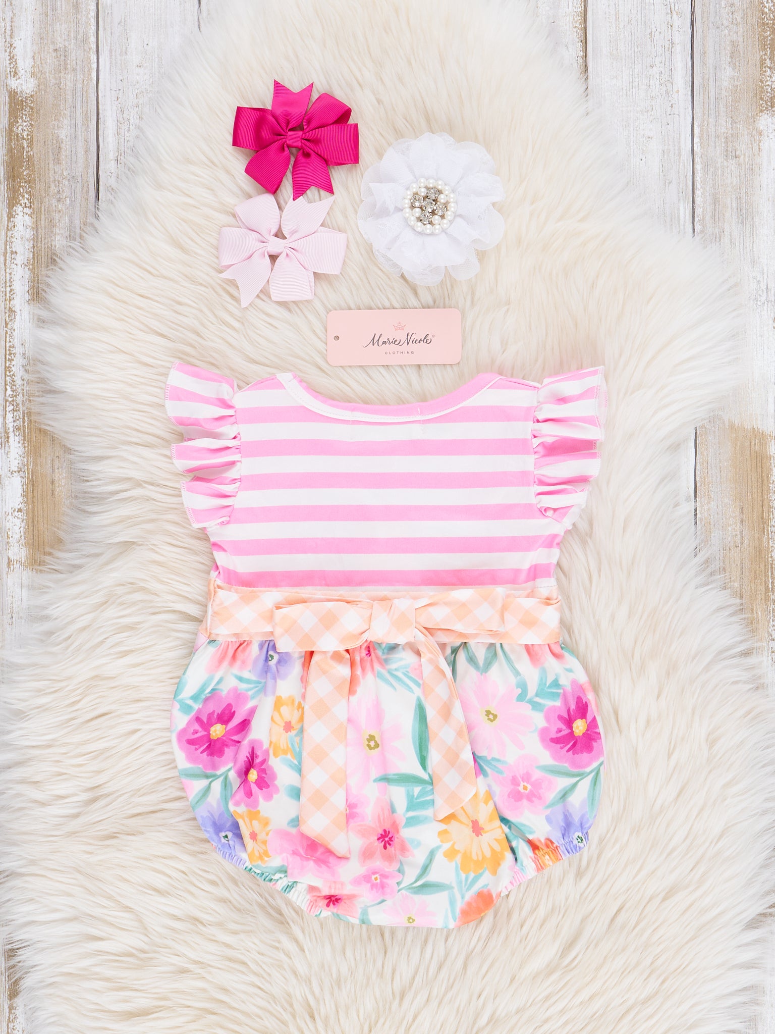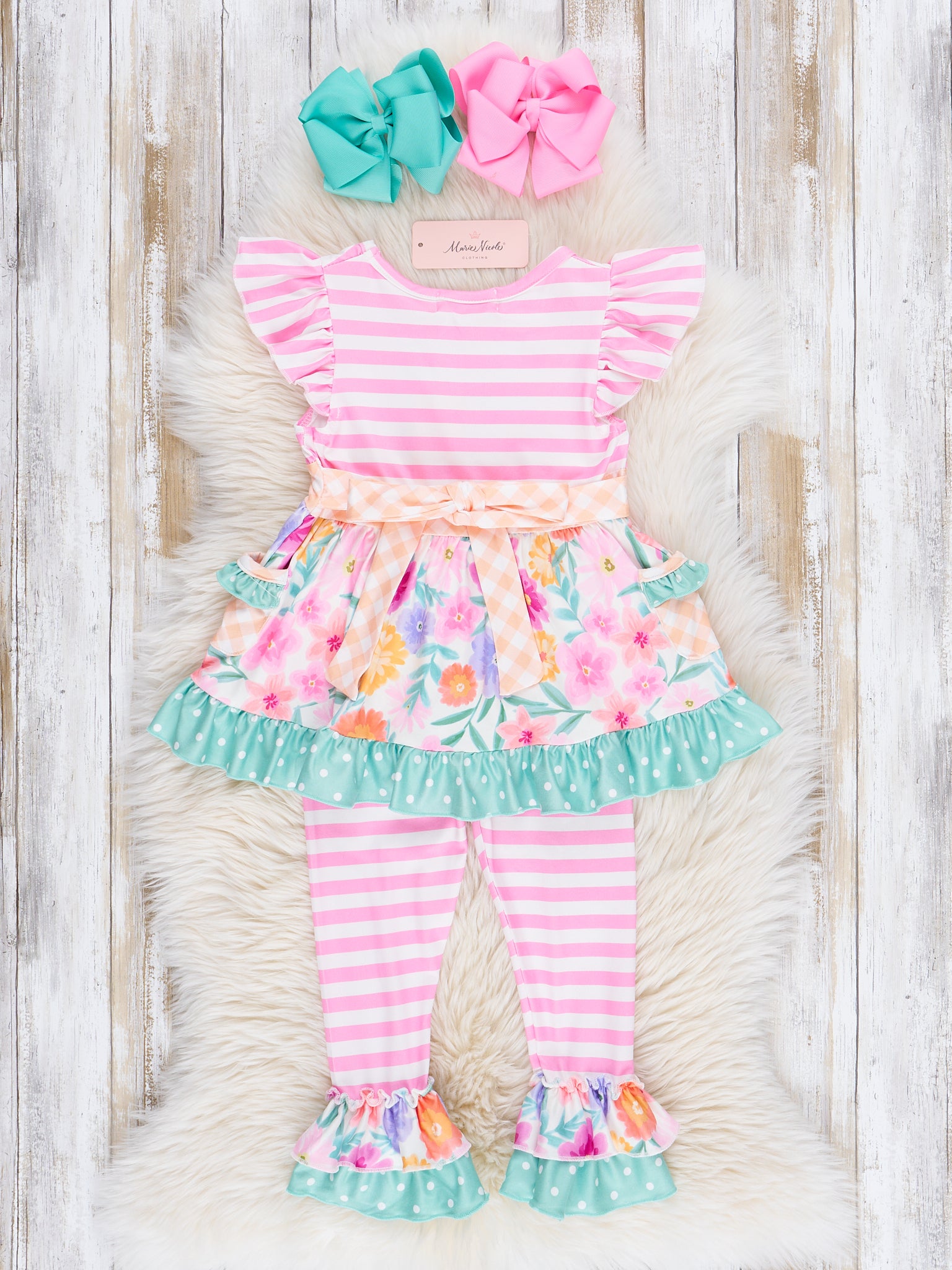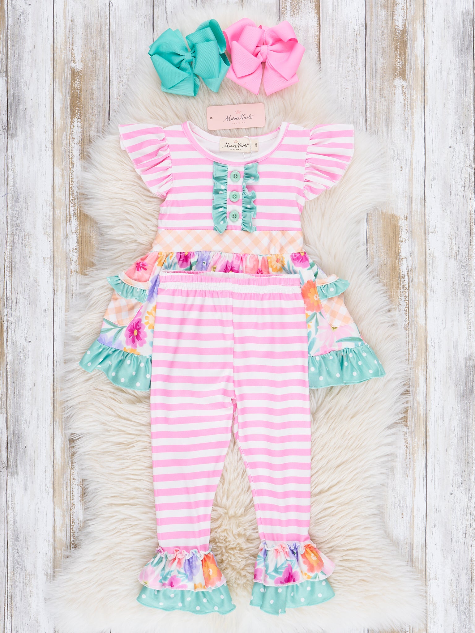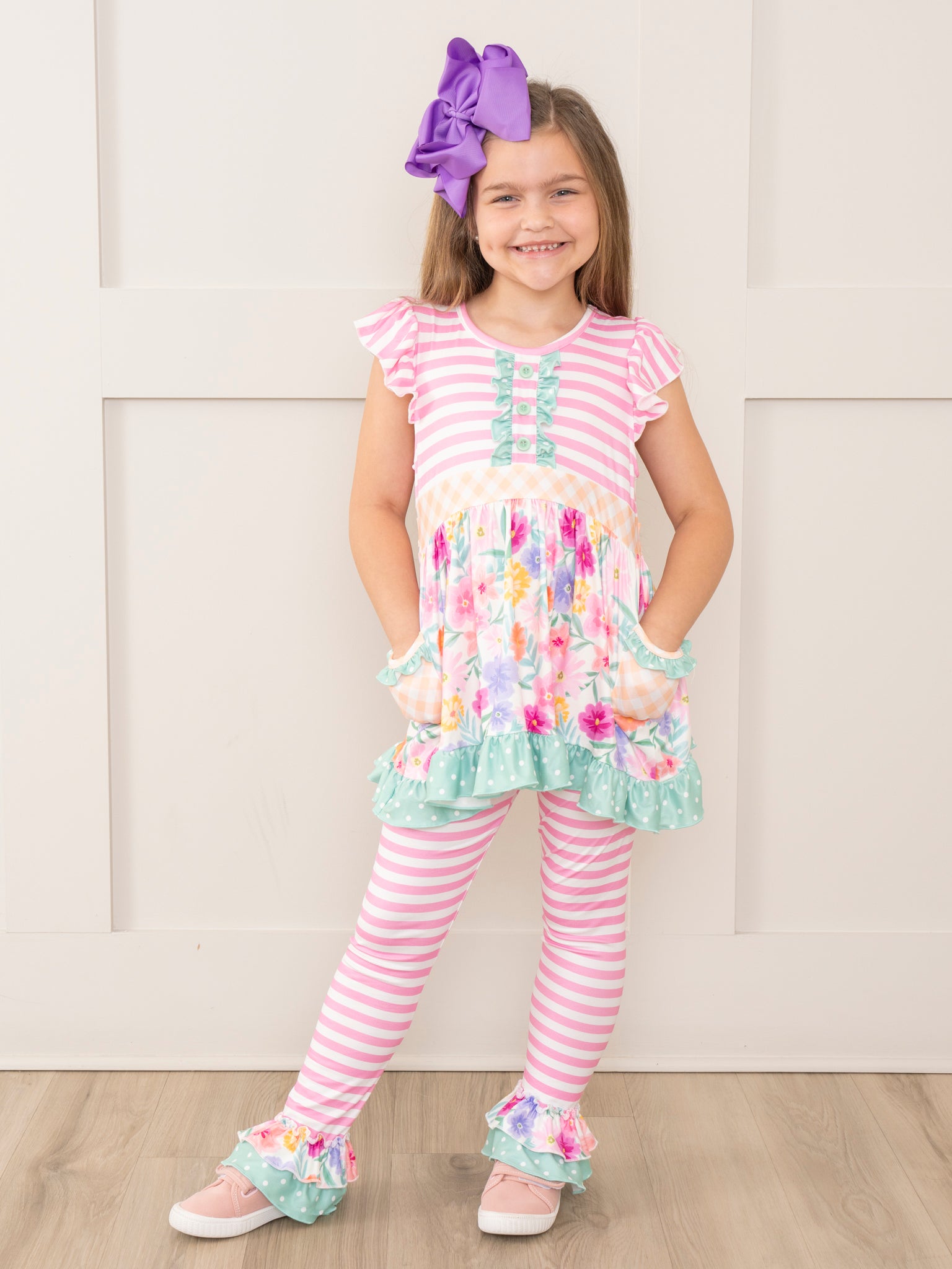 Magenta Stripes & Watercolor Florals Ruffle Outfit