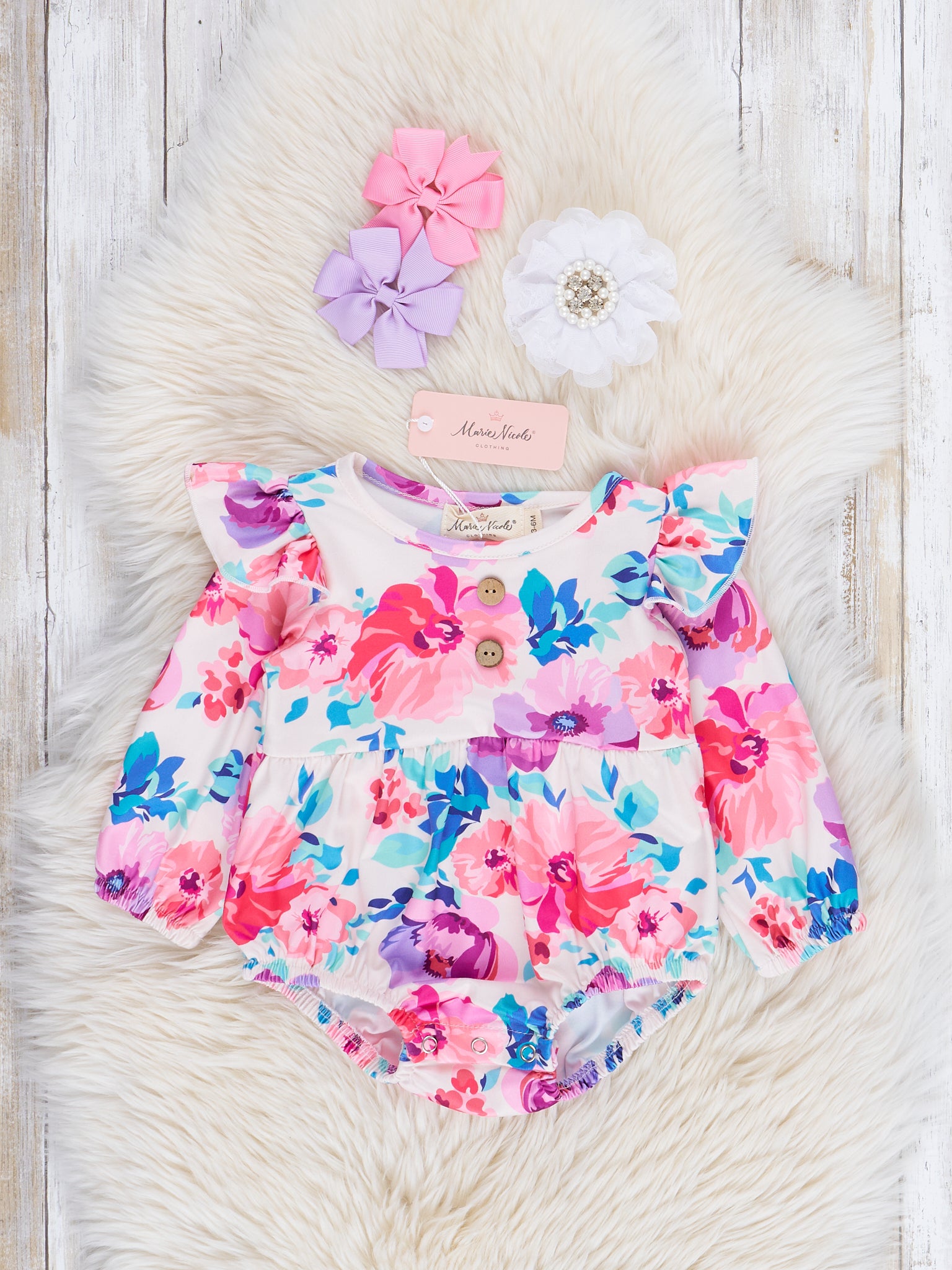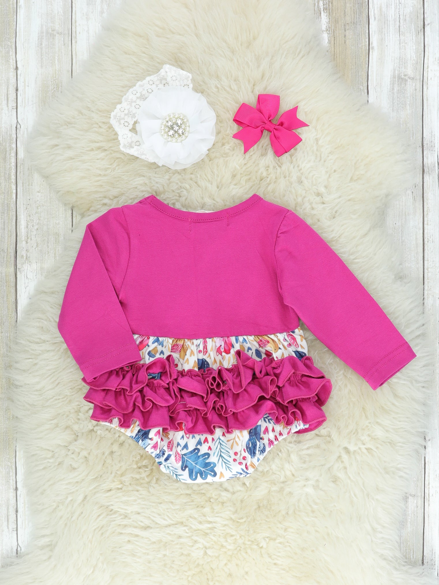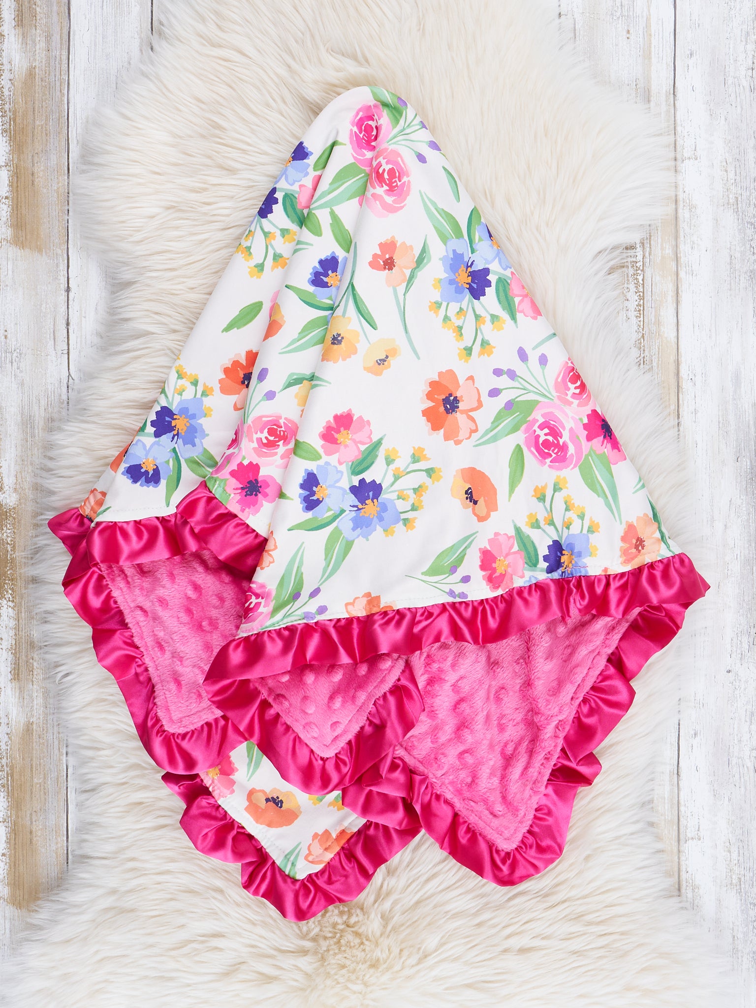 Magenta Watercolor Bouquets Ruffle Minky Blanket